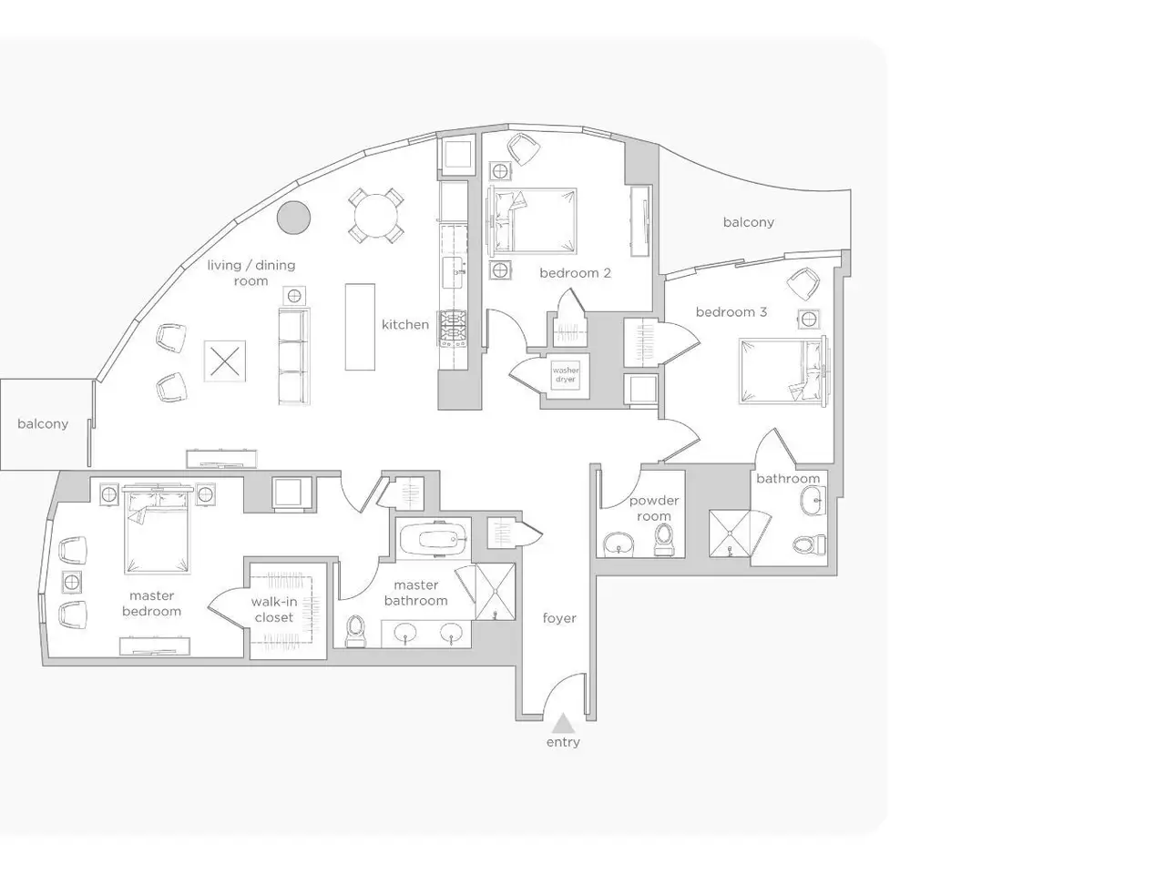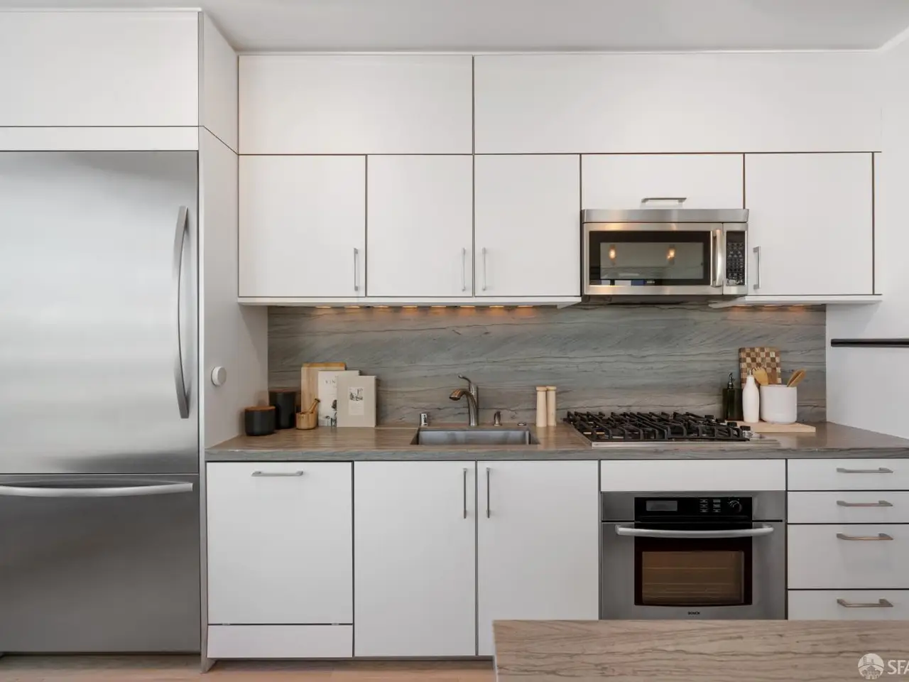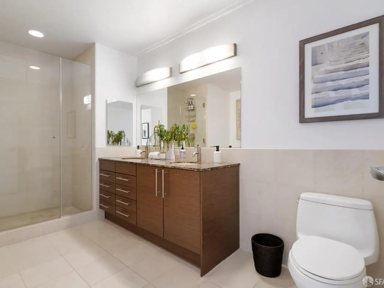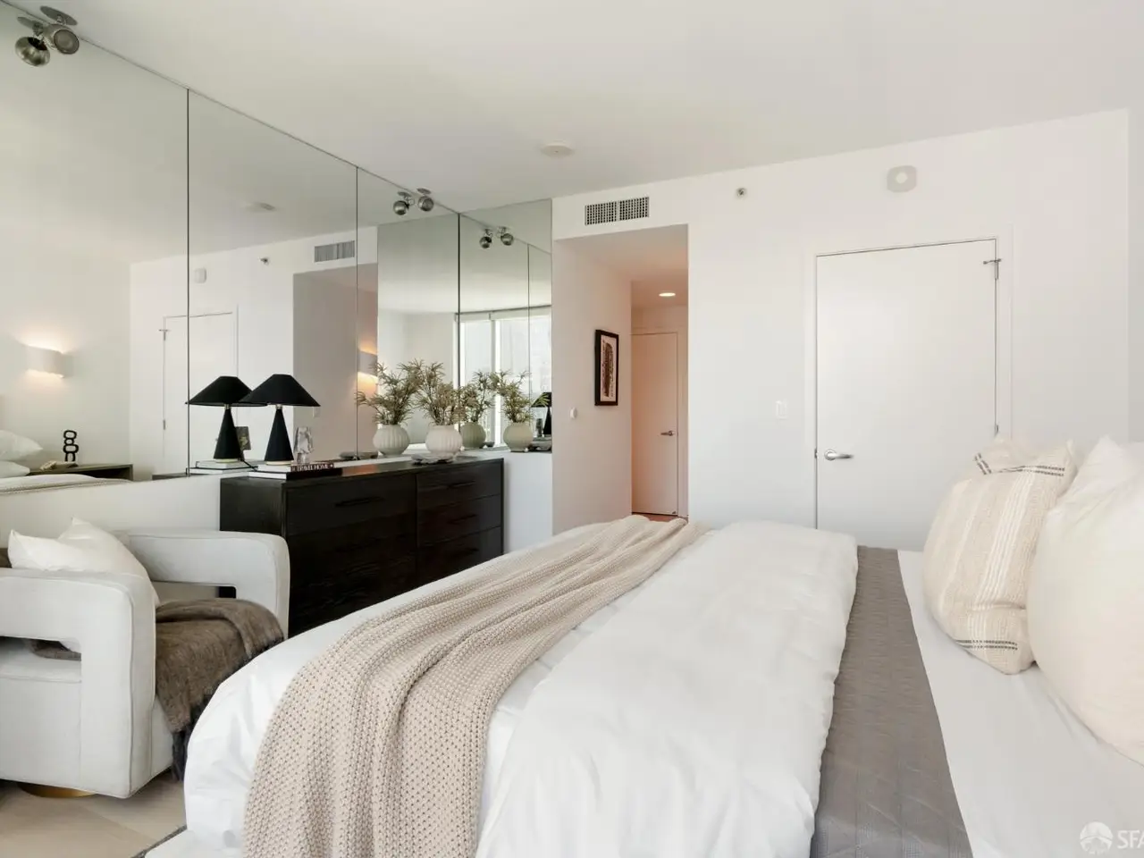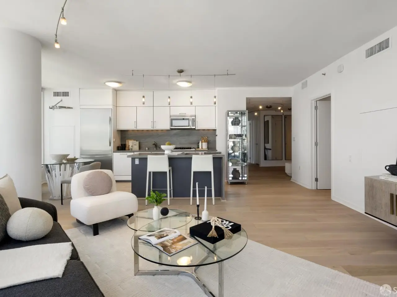Experience luxe high-rise living in this exceptional 3 bedroom, 2 bath home with sweeping views of the Bay, Bay Bridge, and sparkling City skyline. The formal entrance is a perfect gallery to showcase art and leads to an expansive living area surrounded by floor-to-ceiling windows framing breathtaking views of the Bay Bridge and beyond. Open to the living and dining areas, the chef's kitchen is outfitted with Studio Becker cabinetry, Thermador and Bosch appliances, stone countertops, and a custom island with bar top. New hardwood flooring runs throughout the living space, while custom window treatments provide both light control and privacy. Primary suite with custom walk-in closet and a spa-inspired bath with dual vanities, walk-in shower, soaking tub, and stunning skyline views. Secondary bedrooms enjoy awe-inspiring Bay Bridge views and easy access to the adjacent full bath. Also incl. central A/C, in-unit washer/dryer, built-in speakers and garage parking for 2 cars with EV charger! Infinity's world-class amenities incl: 5,000 sq ft gym, 75-foot indoor pool and spa, sauna, private theater, business center, conference rooms, club lounge w/catering kitchen and bar, outdoor fire pits, 24-hour concierge and security.