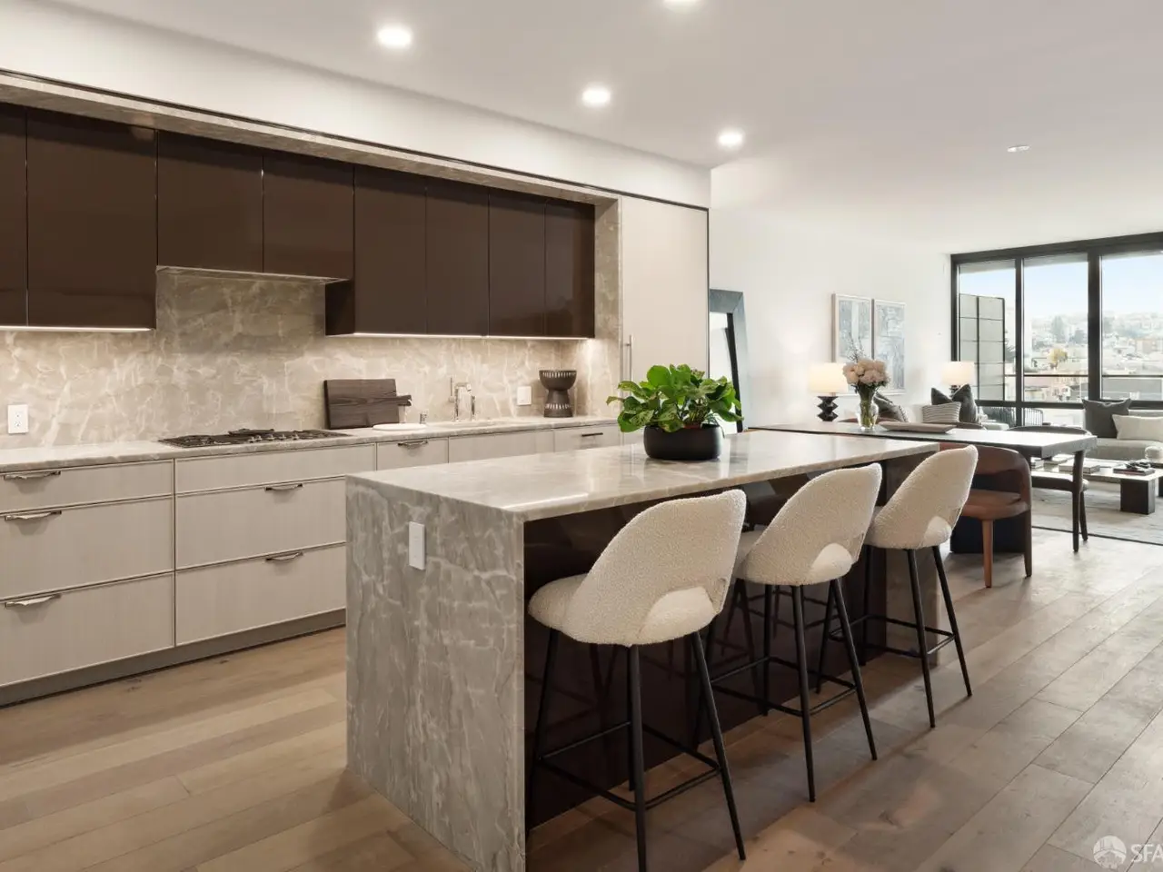 The Belvedere, designed by world-renowned Handel Architects, is a culmination of elevated architectural design, tailor-made shared spaces, and 28 brand-new refined homes gracing San Francisco's prestigious Cow Hollow neighborhood. A concrete and steel structure built in 2024, The Belvedere features an exquisite, attended lobby, and incredible views captured from the two and three-bedroom homes. Crowning The Belvedere is an expansive, 6,200 sqft resort-style roof terrace with picture perfect views of the Golden Gate Bridge and San Francisco's most notable hills. The elegant kitchens include Miele appliances and gorgeous Gabana Quartzite stone, while the spa-like bathrooms are equipped with Waterworks fixtures and adorned in imported Calacatta stone. Additional features include: air conditioning, add'l storage, and bicycle parking. Residence 502 is a Golden Gate Bridge VIEW home boasting 3 beds/3.5 baths and 1,951 sqft with a spacious great room that leads to a covered terrace. The Belvedere is in a fantastic walking area, with the bustling shops, restaurants, and cafes of Union St in Cow Hollow right outside your door. Russian Hill, Pacific Heights, and The Marina are all just minutes away.