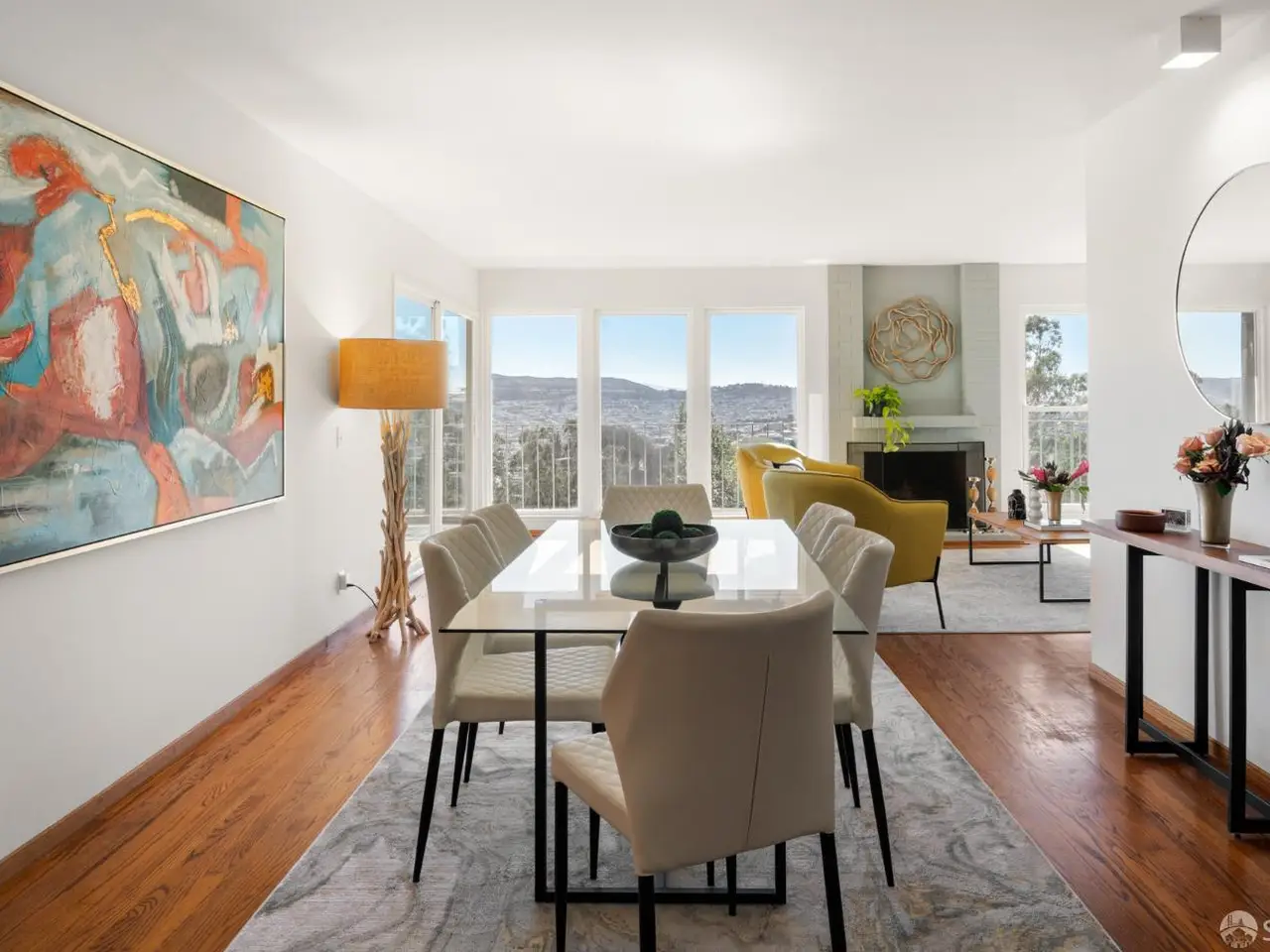 Commanding views, generous scale, solid construction, easy potential, and a great location define 408 Gold Mine Drive. Built in 1967, this mid-century home sits on Gold Mine Hill and has been in the same family for nearly 50 years, now ready for its next chapter. You can move in right away and enjoy it as is, or begin updating immediatelyeither path takes advantage of its fundamentals and strong bones. Measuring nearly 2,000 sq ft across two levels, the home has 3 bedrooms, 2 full baths, and 2-car side-by-side parking. On the lower level, two south-facing bedrooms open directly to a 250 sq ft deck shared with the living room. Oak floors run throughout, and a long galley kitchen, dining area, and living room centered around a (decorative) wood-burning fireplace frame sweeping southern views and light. Upstairs, the primary en suite spans the full floor and opens to a wrap-around patio, creating an open, airy connection to the outdoors. Set within Diamond Heights, where suburban mid-century ideals met urban infill among the steep hills, the home sits near Noe Valley, Glen Park, West Portal, and the Diamond Heights Shopping Center with its everyday conveniences. An offer review date is anticipated; please contact the listing team for details.