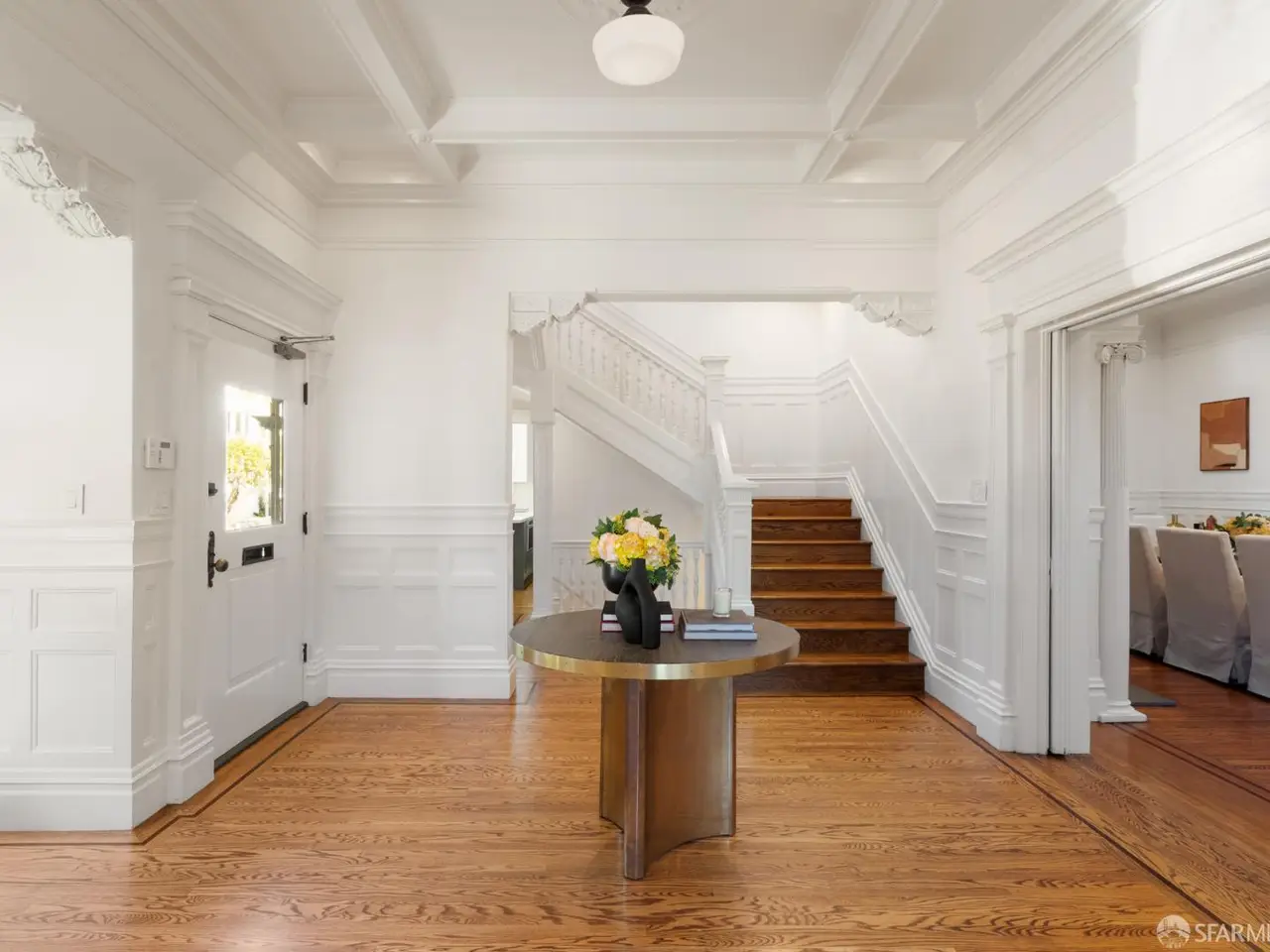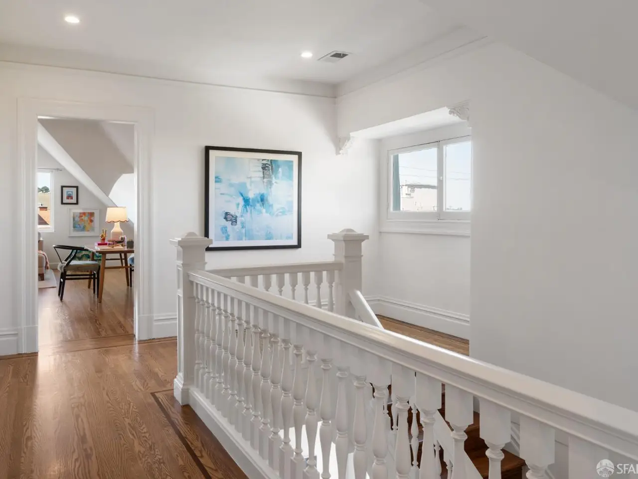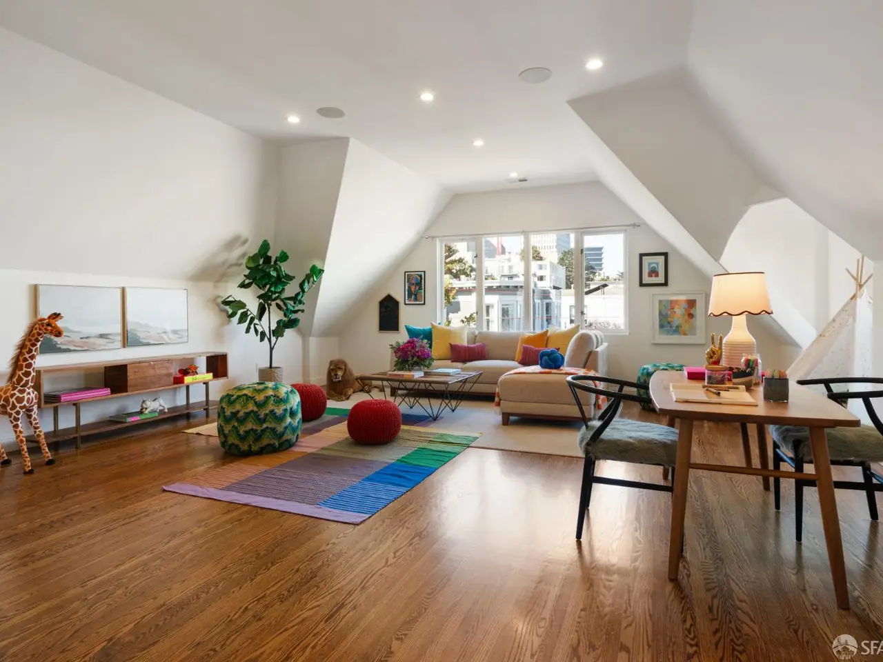 Designed by Swedish architect Nicolaus August Nordin, 199 Carl Street is a stately corner single-family home nestled in the desirable Cole Valley neighborhood. This thoughtfully remodeled residence combines timeless period details with modern luxury, offering an exceptional living experience across four expansive levels. The spacious floor plan features high ceilings and generous living spaces throughout. The main level boasts a chef's kitchen outfitted with top-of-the-line appliances and a large island, a welcoming foyer, a sophisticated living room, and an elegant dining area perfect for entertaining. A half bathroom and direct access to the professionally landscaped backyard complete this level. Upstairs, you'll find three bedrooms, including the primary suite, each with its own ensuite bathroom. The top floor also includes a large family room for children's activities, an additional bathroom, and flexible rooms that can serve as home offices, guest bedrooms, or fitness spaces. The lowest level offers abundant storage options, a half bathroom, and a versatile ballroom, ideal for entertaining guests or creating a luxurious guest retreat. This extraordinary home seamlessly blends historic charm with contemporary amenities, offering a truly exceptional lifestyle.