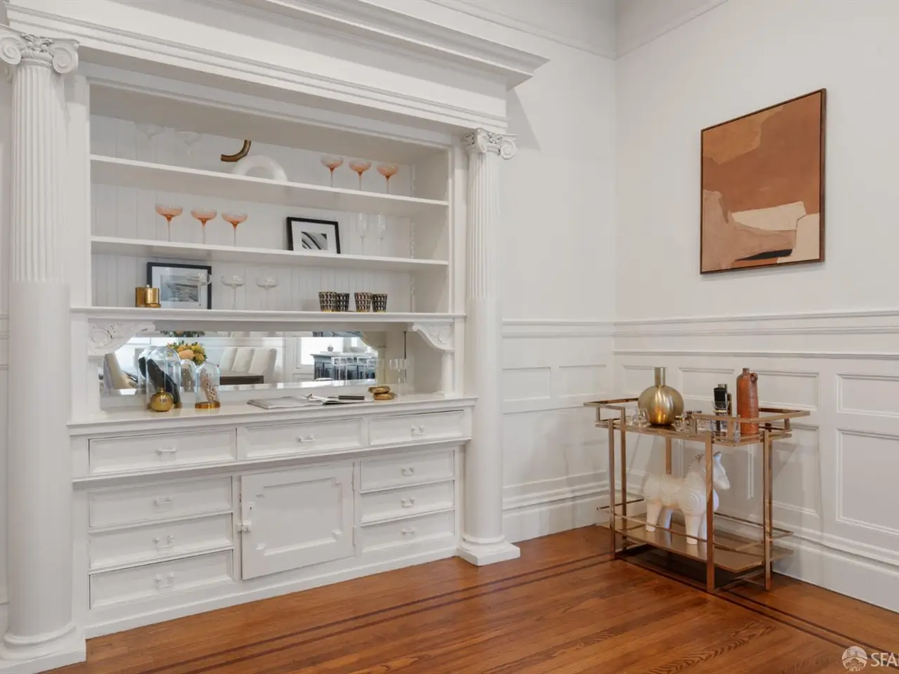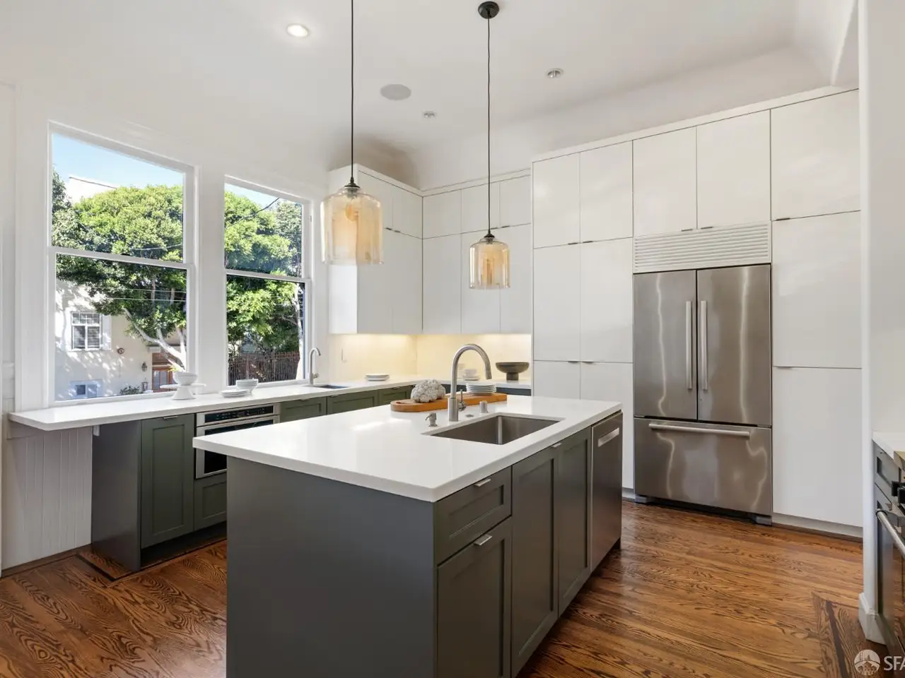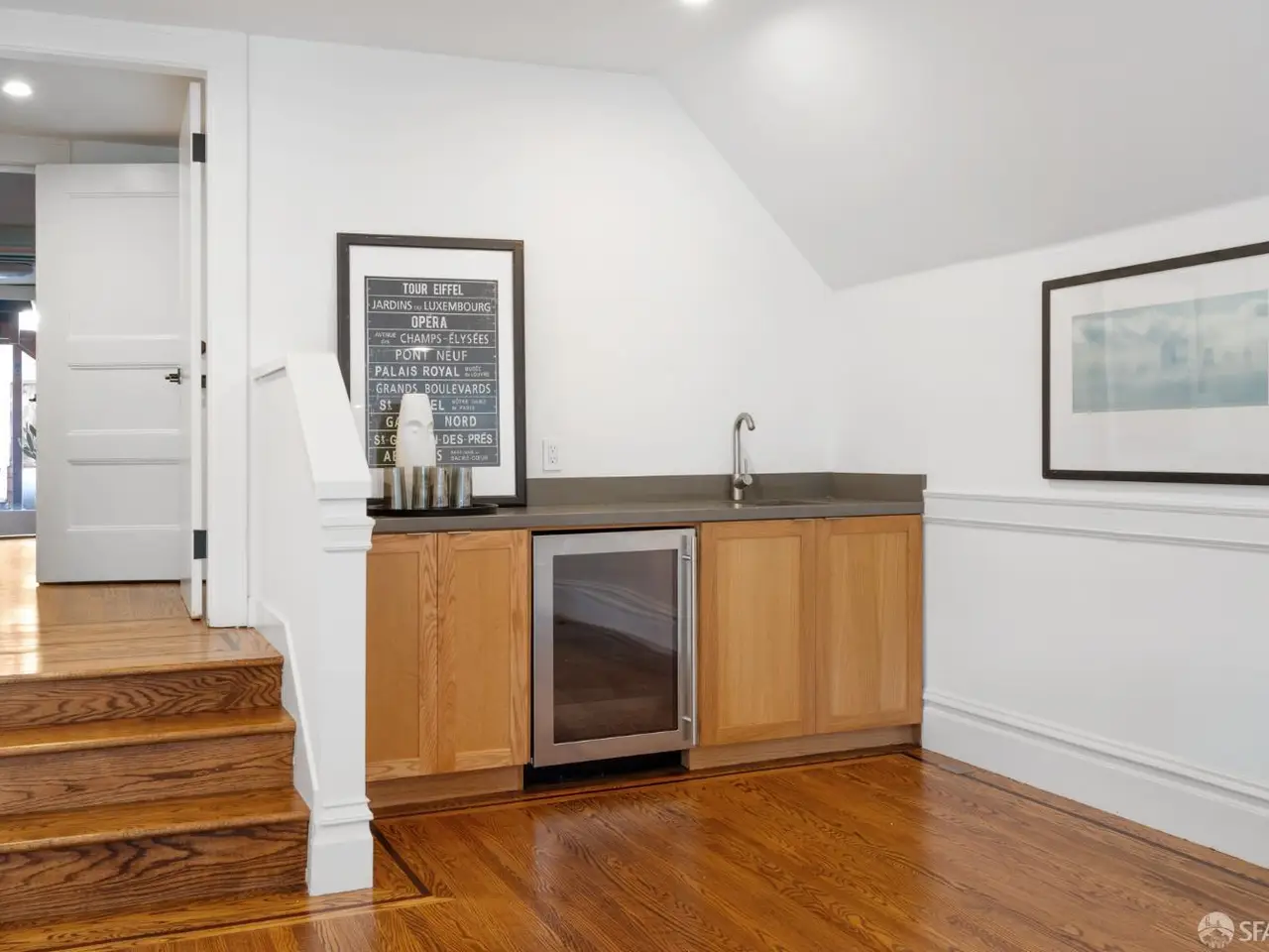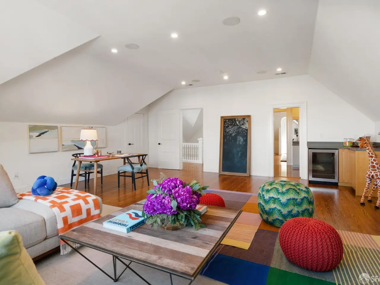 Designed by Swedish architect Nicolaus August Nordin, 199 Carl Street is a stately corner single-family home nestled in the desirable Cole Valley neighborhood. This thoughtfully remodeled residence combines timeless period details with modern luxury, offering an exceptional living experience across four expansive levels. The spacious floor plan features high ceilings and generous living spaces throughout. The main level boasts a chef's kitchen outfitted with top-of-the-line appliances and a large island, a welcoming foyer, a sophisticated living room, and an elegant dining area perfect for entertaining. A half bathroom and direct access to the professionally landscaped backyard complete this level. Upstairs, you'll find three bedrooms, including the primary suite, each with its own ensuite bathroom. The top floor also includes a large family room for children's activities, an additional bathroom, and flexible rooms that can serve as home offices, guest bedrooms, or fitness spaces. The lowest level offers abundant storage options, a half bathroom, and a versatile ballroom, ideal for entertaining guests or creating a luxurious guest retreat. This extraordinary home seamlessly blends historic charm with contemporary amenities, offering a truly exceptional lifestyle.
