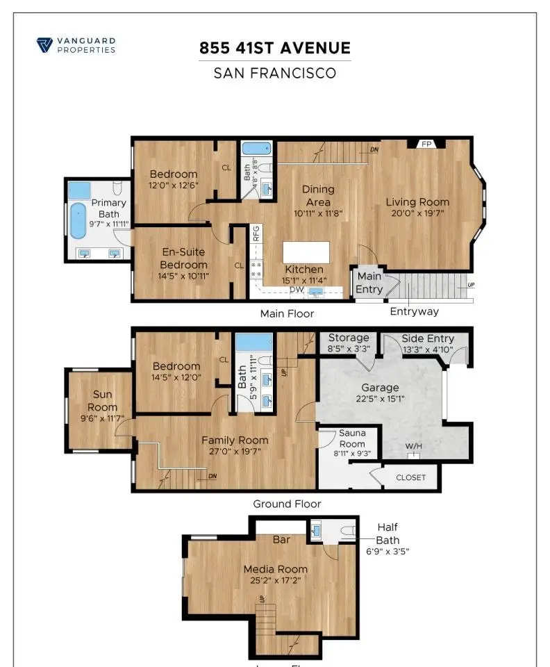 Experience the pinnacle of San Francisco living in this fully renovated, down-to-the-studs masterpiece at 855 41st Ave. Perfectly situated where sophistication meets coastal tranquility, this three-level residence offers unparalleled luxury near Ocean Beach, Golden Gate Park, top schools, Lands End, coastal hiking trails. The home boasts 4 beds 3.5 baths with a minimalistic modern design and exquisite designer touches. The main level features an expansive, open-concept living area with a sleek electric fireplace and built-in Sonos speakers, flowing into the chef's kitchen featuring top-of-the-line stainless steel smart appliances and pristine quartz countertops. The primary suite is a true sanctuary: its spa-like ensuite features a luxurious deep soaking tub, rain shower, and dual vanity. The ground level includes 2 additional bedrooms, a bath with a steam shower, and a sauna roomperfect for wellness and work-life balance. The lower level is designed for ultimate seamless indoor/outdoor entertainment, offering a living area, wet bar, and direct access to the large backyard. Engineered oak wood floors and radiant heating flow throughout. Fully seismically upgraded, a new roof, and EV charger. The sanctuary you deserve has arrived!