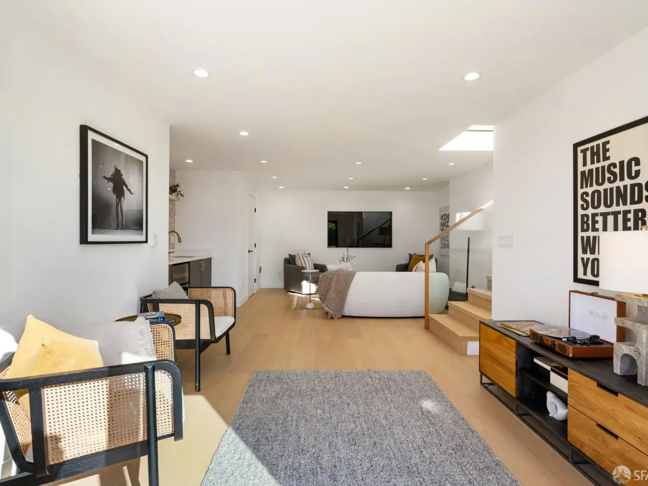 Open-concept living area with Sonos speakers