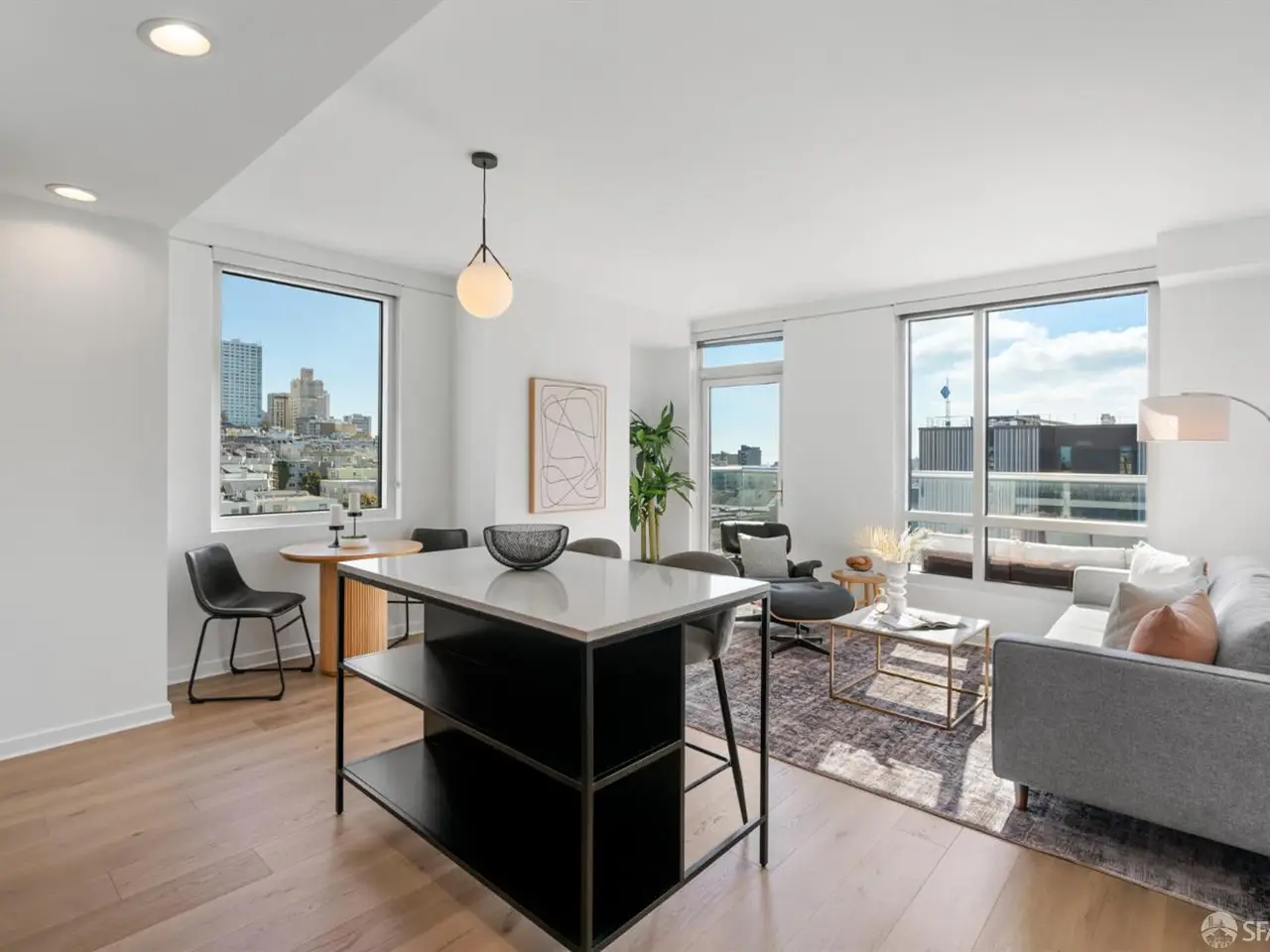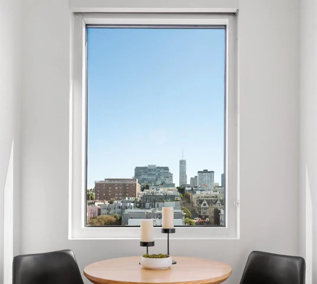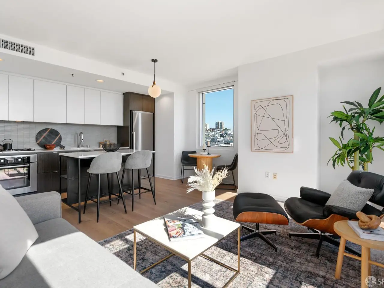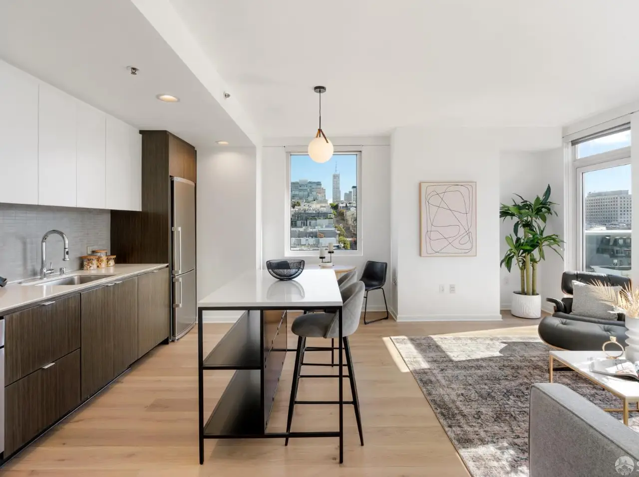 Welcome to The Marlow - a sophisticated blend of timeless elegance and modern luxury at the crossroads of Nob Hill, Russian Hill, and Pacific Heights. This hand-selected 2BD/2BA residence offers refined design, a smart layout, and an unbeatable location. Perched on a high floor, it's filled with natural light from floor-to-ceiling windows and showcases sweeping city views. The open-concept living space includes a chef's kitchen, custom cabinetry, new wide-plank white oak floors, quartz countertops, stone tile backsplash, and premium stainless steel appliances with gas range. The kitchen flows into the dining area and spacious living room, opening to a massive private balcony ideal for coffee, evening relaxation, or entertaining. The serene primary suite features two closets and a spa-inspired ensuite bath. The second bedroom is perfect for guests, a home office, or den. Additional features include central A/C, in-unit laundry, and deeded parking. Marlow amenities include a secured lobby with doorman, landscaped courtyard, outdoor lounge with fire pit, bocce court, and BBQ area. Just steps from Whole Foods, tech shuttles, and vibrant Polk Street shops and cafes, this home offers the best of city living.