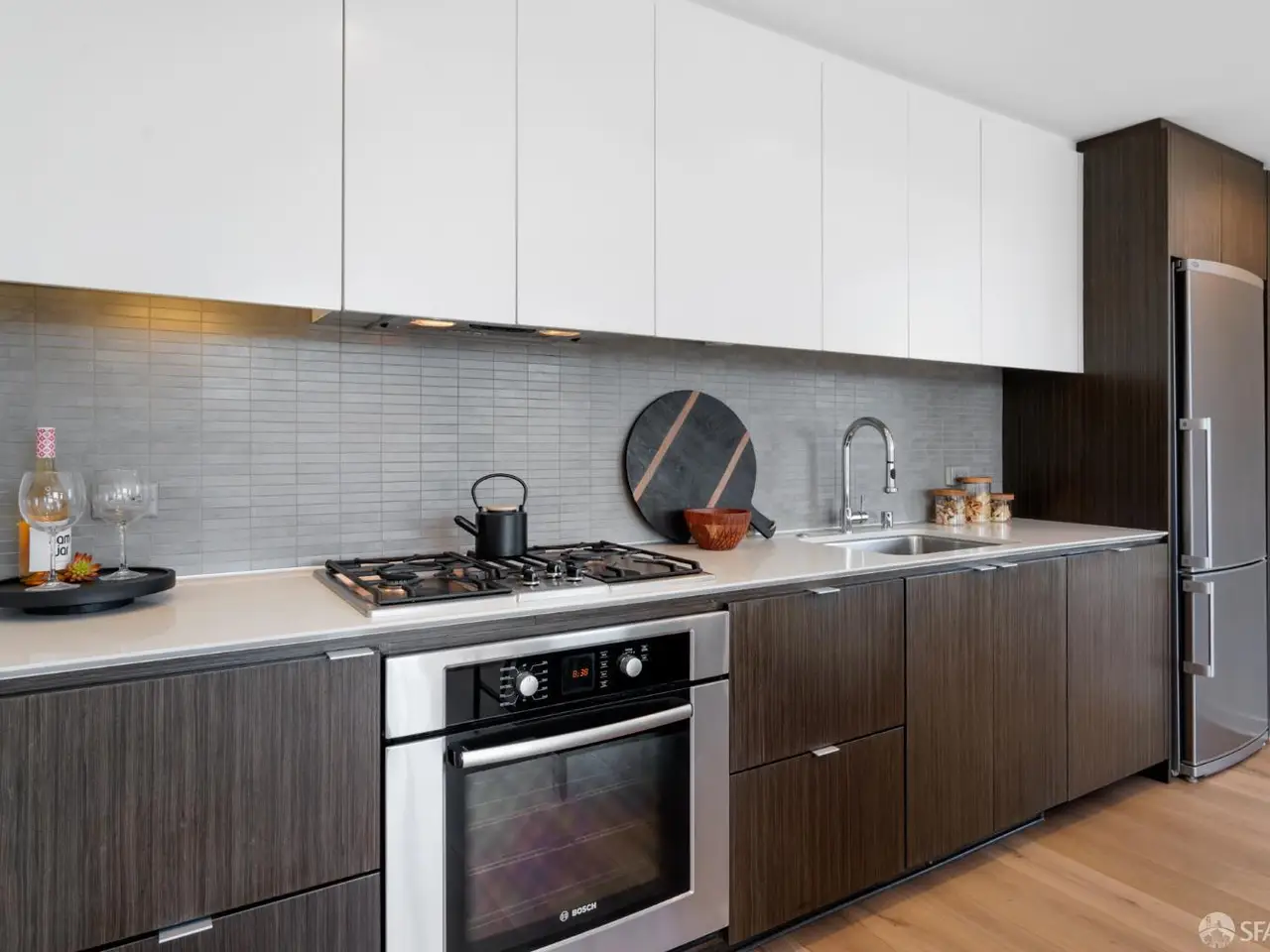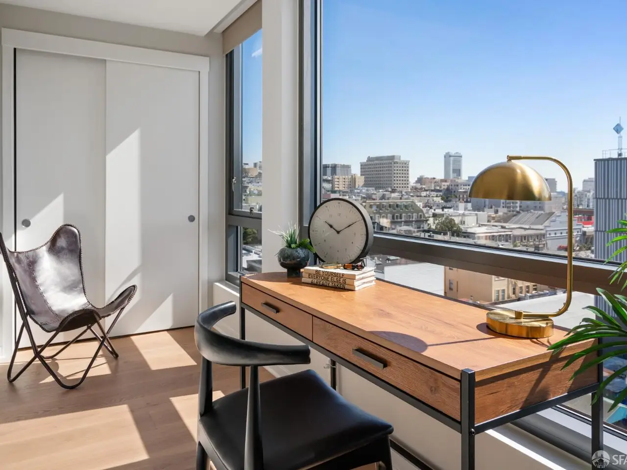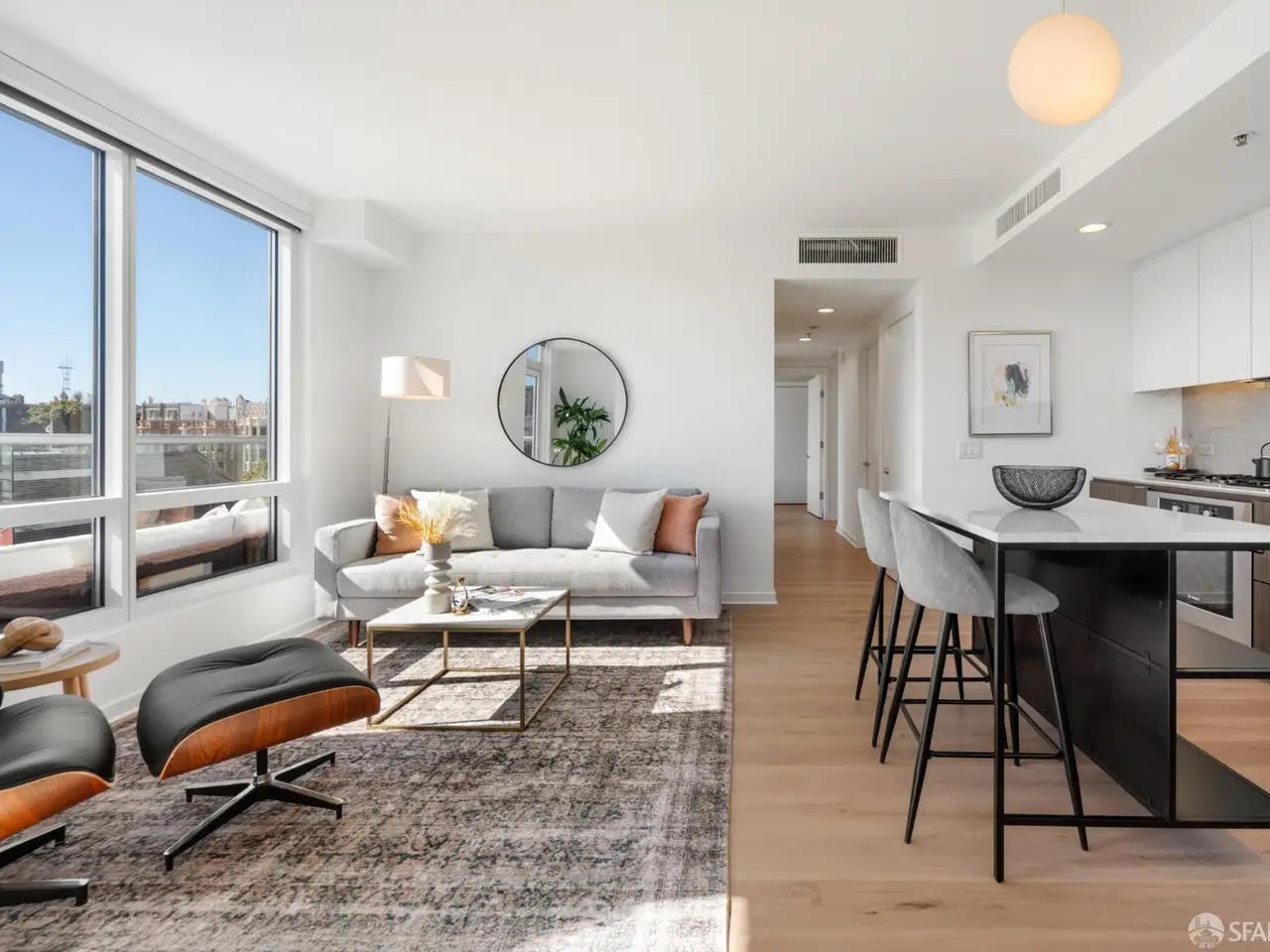 Welcome to The Marlow - a sophisticated blend of timeless elegance and modern luxury at the crossroads of Nob Hill, Russian Hill, and Pacific Heights. This hand-selected 2BD/2BA residence offers refined design, a smart layout, and an unbeatable location. Perched on a high floor, it's filled with natural light from floor-to-ceiling windows and showcases sweeping city views. The open-concept living space includes a chef's kitchen, custom cabinetry, new wide-plank white oak floors, quartz countertops, stone tile backsplash, and premium stainless steel appliances with gas range. The kitchen flows into the dining area and spacious living room, opening to a massive private balcony ideal for coffee, evening relaxation, or entertaining. The serene primary suite features two closets and a spa-inspired ensuite bath. The second bedroom is perfect for guests, a home office, or den. Additional features include central A/C, in-unit laundry, and deeded parking. Marlow amenities include a secured lobby with doorman, landscaped courtyard, outdoor lounge with fire pit, bocce court, and BBQ area. Just steps from Whole Foods, tech shuttles, and vibrant Polk Street shops and cafes, this home offers the best of city living.