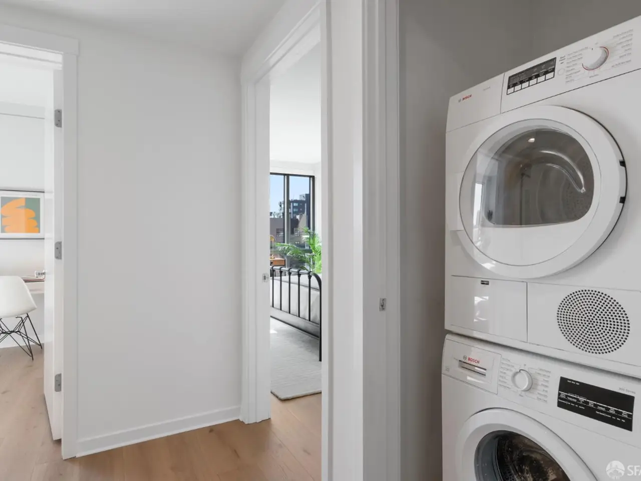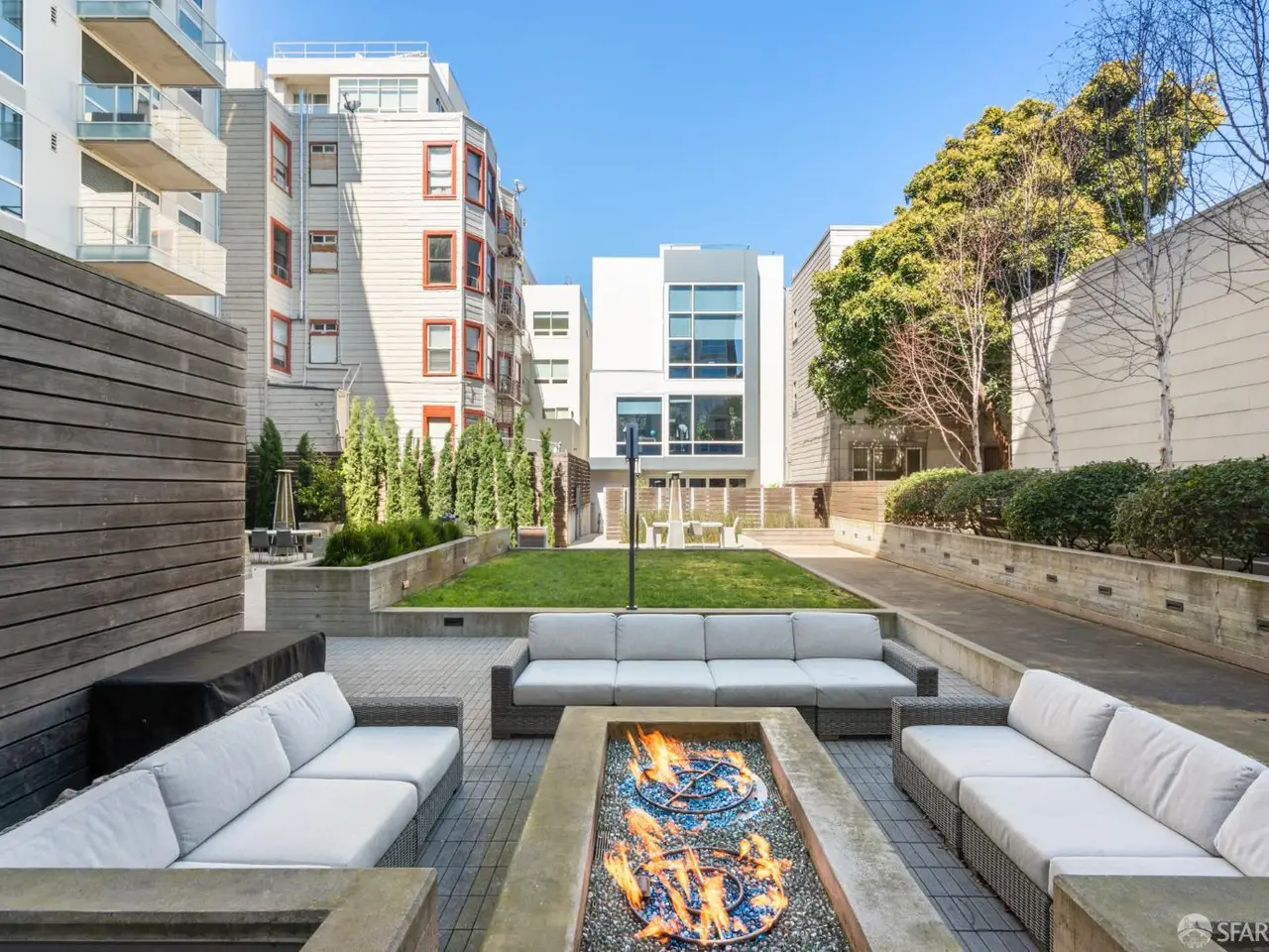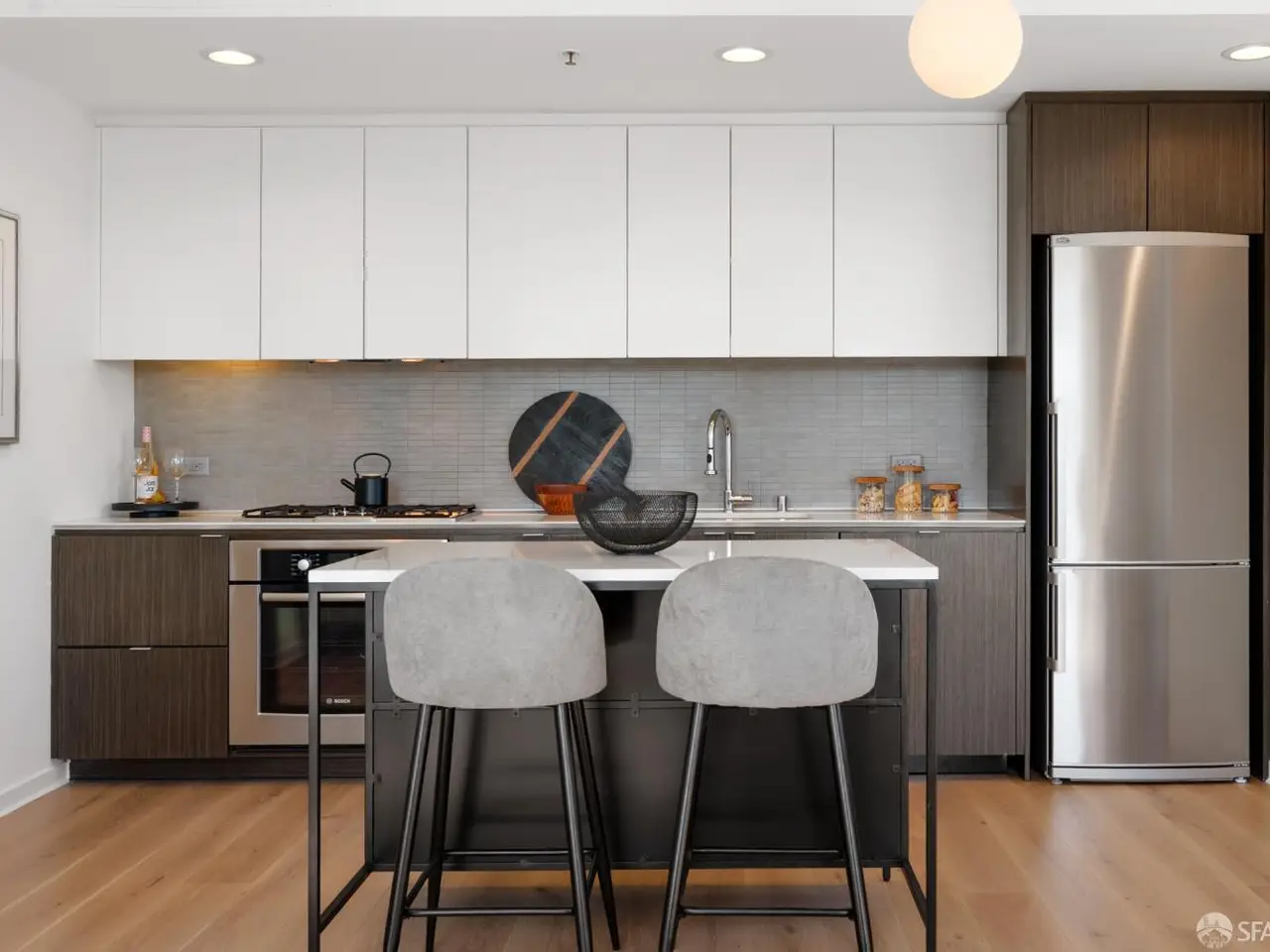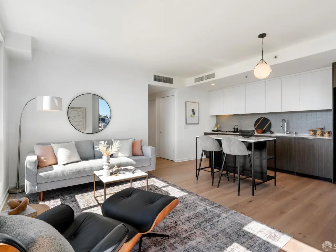 Welcome to The Marlow - a sophisticated blend of timeless elegance and modern luxury at the crossroads of Nob Hill, Russian Hill, and Pacific Heights. This hand-selected 2BD/2BA residence offers refined design, a smart layout, and an unbeatable location. Perched on a high floor, it's filled with natural light from floor-to-ceiling windows and showcases sweeping city views. The open-concept living space includes a chef's kitchen, custom cabinetry, new wide-plank white oak floors, quartz countertops, stone tile backsplash, and premium stainless steel appliances with gas range. The kitchen flows into the dining area and spacious living room, opening to a massive private balcony ideal for coffee, evening relaxation, or entertaining. The serene primary suite features two closets and a spa-inspired ensuite bath. The second bedroom is perfect for guests, a home office, or den. Additional features include central A/C, in-unit laundry, and deeded parking. Marlow amenities include a secured lobby with doorman, landscaped courtyard, outdoor lounge with fire pit, bocce court, and BBQ area. Just steps from Whole Foods, tech shuttles, and vibrant Polk Street shops and cafes, this home offers the best of city living.