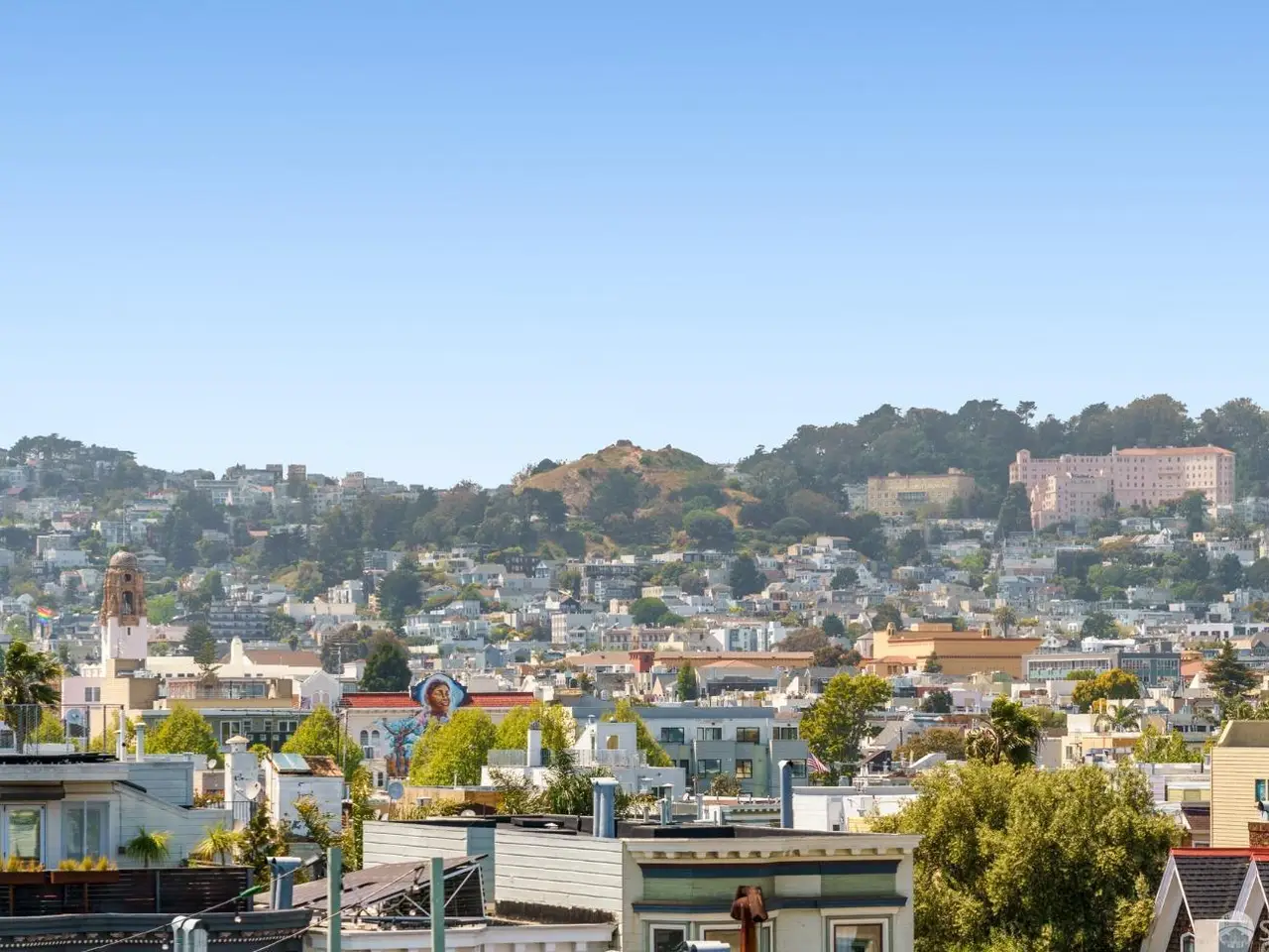 Hot Home Hot Price! Bright and open two-level top-floor condominium residence lives like a house and offers views with all three bedrooms on the same level. The dramatic main floor features a sun-filled Great Room with a chef's kitchen, formal dining, spacious living area with gas fireplace, powder room, and laundryperfect for entertaining or relaxed living, all framed by views of Twin Peaks, Buena Vista, and downtown. The lower level includes three generous bedrooms, including a serene primary suite with en-suite bath, plus a stylish guest bath. A deeded rooftop terrace crowns the home with sweeping panoramic views, ideal for lounging, grilling, or soaking up the Mission Dolores sun. Side-by-side independent garage parking and a location in the heart of the Missionjust off the Valencia Corridorput you moments from the city's best dining, cafes, Dolores Park, playgrounds, bike lanes, BART, and freeway access. A rare blend of scale, light, and location in one of San Francisco's most vibrant neighborhoods.