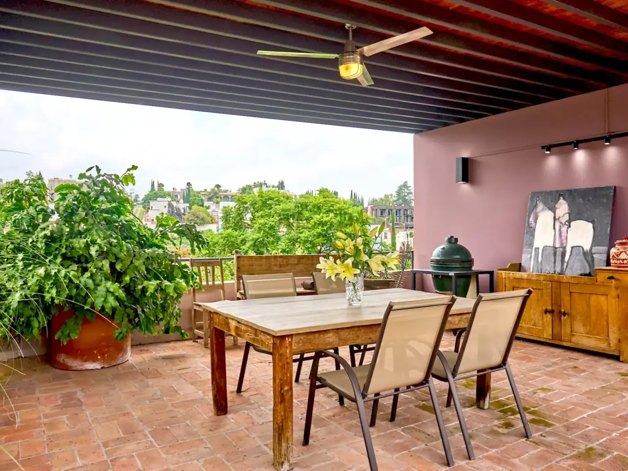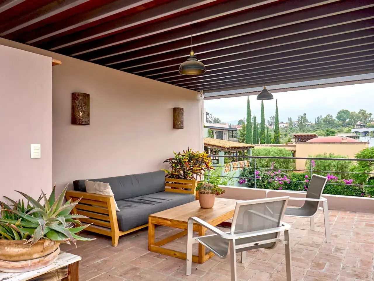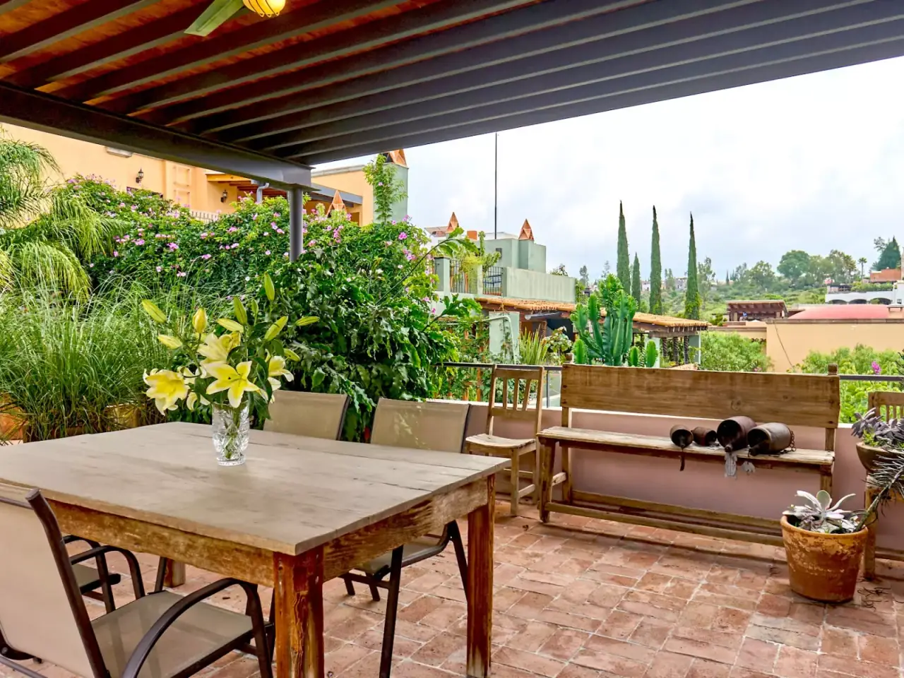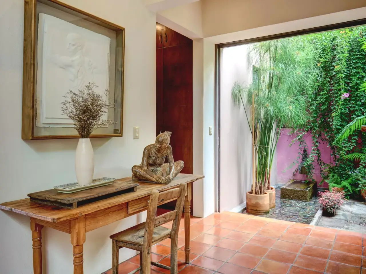 Discover a refined blend of modern luxury and livable comfort in Casa Camarena, a home designed by renowned architect Luis Camarena, located in one of the most sought-after neighborhoods in San Miguel de Allende, Los Balcones. From the moment you walk through the door, you’re met with warmth, understated elegance, and carefully considered design. The layout prioritizes both privacy and flow, making the home ideal for full-time living or a second home getaway. One of the standout features is the option for complete one-level living. A spacious ground-floor bedroom with an en suite bath opens through French doors to a private patio and garden seating area—perfect for quiet mornings or evening relaxation. Also on the main level, you’ll find a generous studio which could easily be converted into an additional bedroom, giving this San Miguel de Allende home the potential to become a three-bedroom residence, depending on your needs. The heart of the home lies in its light-filled, double-height living and dining area, where floor-to-ceiling windows bring the impeccably landscaped gardens into full view. The open-plan kitchen connects effortlessly to the social spaces and is equipped with ample storage and prep areas, plus a charming outdoor nook for casual dining. Outside, multiple landscaped spaces surround the home, designed for lounging, al fresco dining, or simply enjoying the sounds of two tranquil water features. These thoughtfully crafted outdoor living areas extend the home’s usable space and add to its peaceful character. Upstairs, you’ll find a spacious separate TV room, and the grand primary suite which offers an en suite bathroom and a private terrace with a covered jacuzzi. From here, you can take in sweeping views of the neighborhood and the ever-changing San Miguel de Allende horizon. A rooftop terrace crowns the home, offering yet another outdoor experience with space for dining, entertaining, or taking in panoramic views of the San Miguel de Allende skyline. Additional features include a one-car garage for secure and easy parking. Casa Camarena is an exceptional opportunity within the San Miguel de Allende real estate market. Whether you're exploring neighborhoods in San Miguel de Allende, looking for San Miguel de Allende homes for sale, or planning on moving to San Miguel de Allende, this property combines architectural sophistication with everyday functionality. Schedule a private showing today and experience the possibilities.