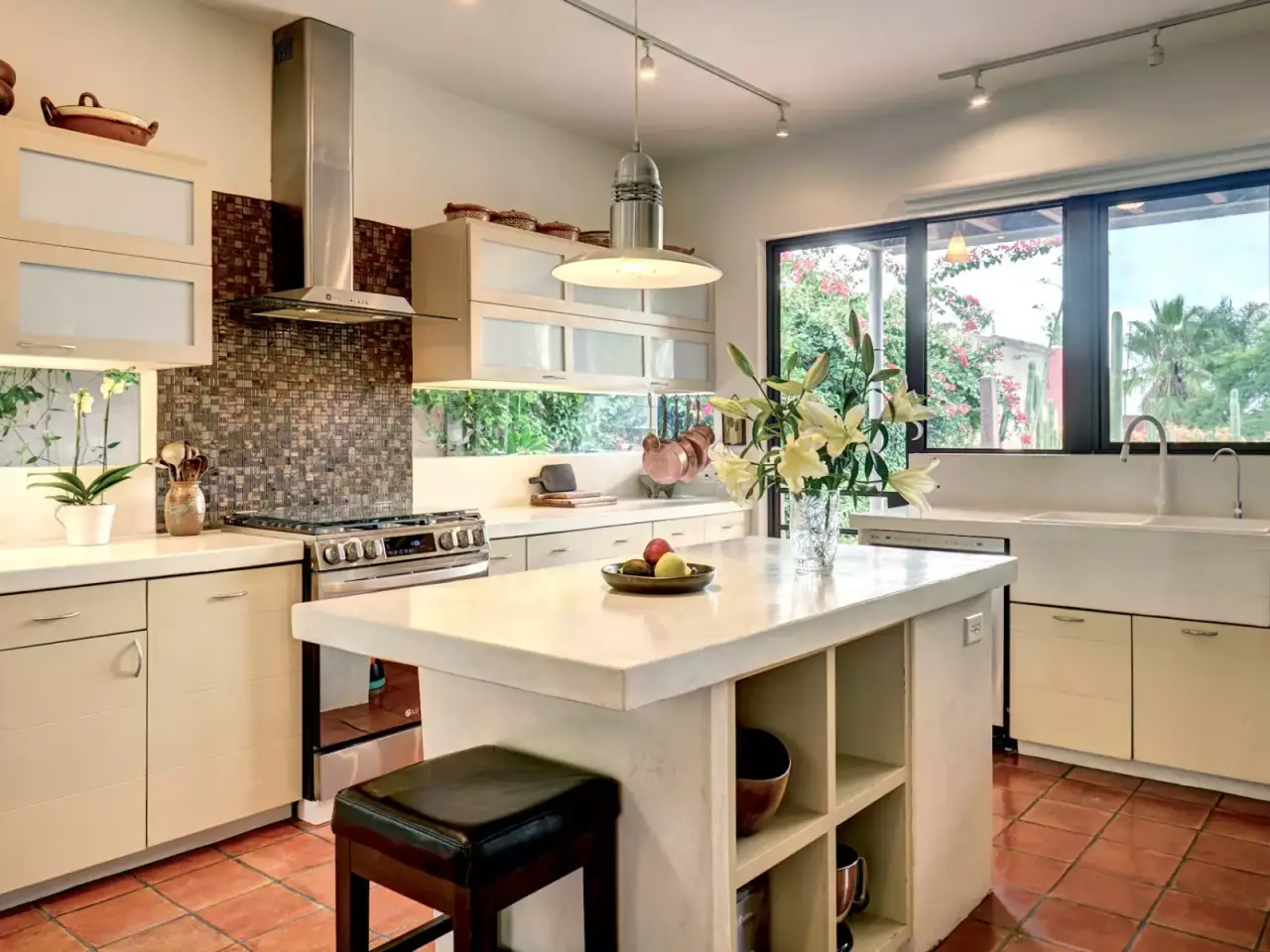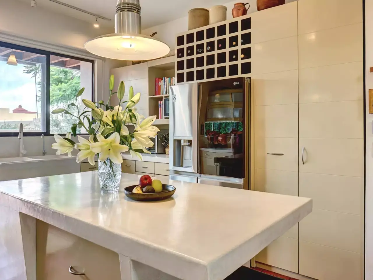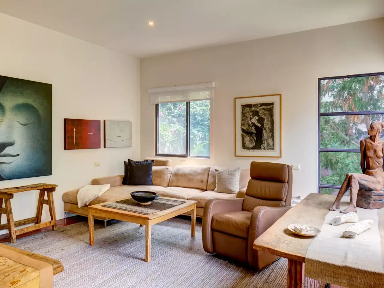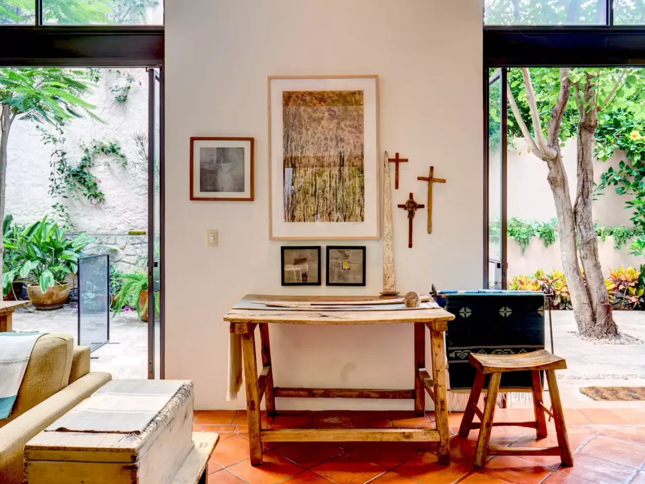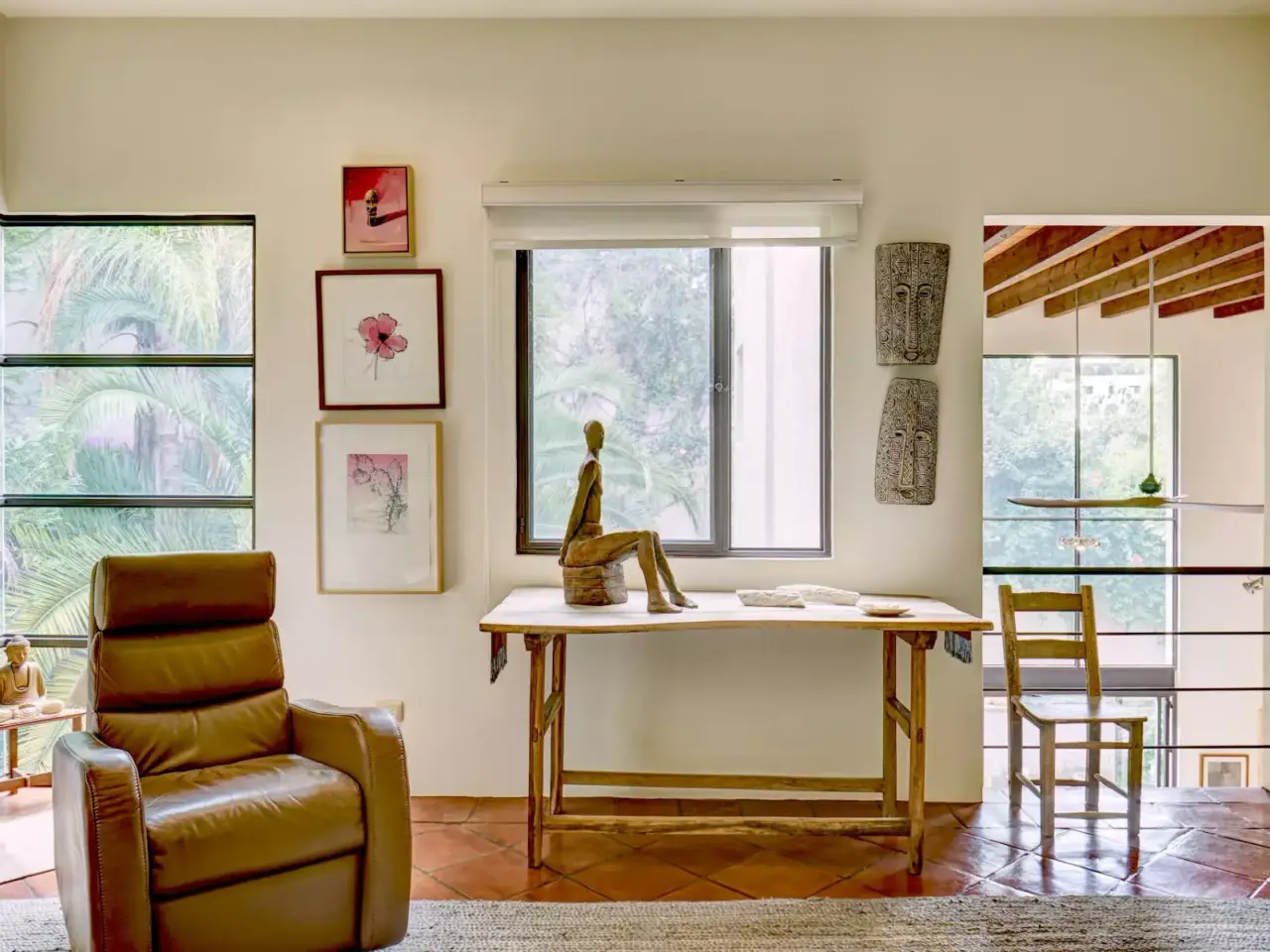 Discover a refined blend of modern luxury and livable comfort in Casa Camarena, a home designed by renowned architect Luis Camarena, located in one of the most sought-after neighborhoods in San Miguel de Allende, Los Balcones. From the moment you walk through the door, you’re met with warmth, understated elegance, and carefully considered design. The layout prioritizes both privacy and flow, making the home ideal for full-time living or a second home getaway. One of the standout features is the option for complete one-level living. A spacious ground-floor bedroom with an en suite bath opens through French doors to a private patio and garden seating area—perfect for quiet mornings or evening relaxation. Also on the main level, you’ll find a generous studio which could easily be converted into an additional bedroom, giving this San Miguel de Allende home the potential to become a three-bedroom residence, depending on your needs. The heart of the home lies in its light-filled, double-height living and dining area, where floor-to-ceiling windows bring the impeccably landscaped gardens into full view. The open-plan kitchen connects effortlessly to the social spaces and is equipped with ample storage and prep areas, plus a charming outdoor nook for casual dining. Outside, multiple landscaped spaces surround the home, designed for lounging, al fresco dining, or simply enjoying the sounds of two tranquil water features. These thoughtfully crafted outdoor living areas extend the home’s usable space and add to its peaceful character. Upstairs, you’ll find a spacious separate TV room, and the grand primary suite which offers an en suite bathroom and a private terrace with a covered jacuzzi. From here, you can take in sweeping views of the neighborhood and the ever-changing San Miguel de Allende horizon. A rooftop terrace crowns the home, offering yet another outdoor experience with space for dining, entertaining, or taking in panoramic views of the San Miguel de Allende skyline. Additional features include a one-car garage for secure and easy parking. Casa Camarena is an exceptional opportunity within the San Miguel de Allende real estate market. Whether you're exploring neighborhoods in San Miguel de Allende, looking for San Miguel de Allende homes for sale, or planning on moving to San Miguel de Allende, this property combines architectural sophistication with everyday functionality. Schedule a private showing today and experience the possibilities.