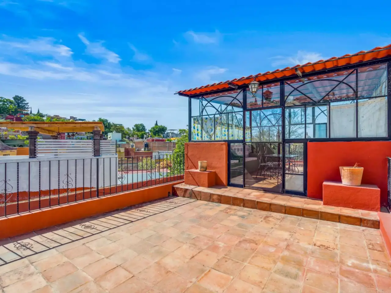 Set in the heart of Centro, one of San Miguel de Allende’s most coveted locations, this unique property offers endless potential for the visionary buyer. With 597m2 of land and 342m2 of construction, Casa de los Espejos is an expansive canvas ready to become your dream estate or a charming boutique hotel. The main house features three ensuite bedrooms, thoughtfully arranged for privacy and convenience. The ground-floor bedroom is ideal for guests or those seeking single-level living. The second floor hosts the primary bedroom and a guest suite, each with its own private terrace—perfect for morning coffee or sunset views. A half bath is conveniently located for guests. The kitchen, complete with a breakfast table, connects to the living and dining room which opens to an inviting outdoor dining area overlooking the generous garden spaces. Here you will also find an expansive BBQ and grill area where a pizza oven awaits—an entertainer’s dream. At the garden’s edge, discover a fully equipped one-bedroom casita, ideal for hosting visitors or generating rental income. For those who love panoramic views, the roof terrace is a true highlight. With a covered seating area and breathtaking vistas of the iconic Parroquia. Additional features include a two-car garage, ensuring secure and convenient parking. While the home is fully livable as it stands, its charm and character invite a touch of personalization to suit modern tastes. The timeless bones of this property make it a rare and rewarding investment opportunity. With its peaceful street location just steps from San Miguel de Allende’s diverse attractions, this property is truly a gem waiting to be polished. Whether you envision a luxurious private residence or an inviting boutique hotel, this property’s location and potential are unmatched. Schedule your private tour today to explore the possibilities.