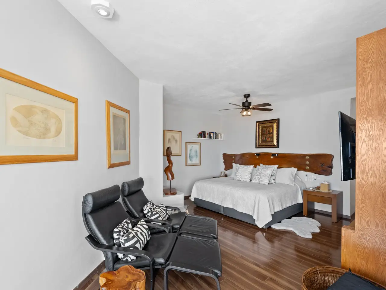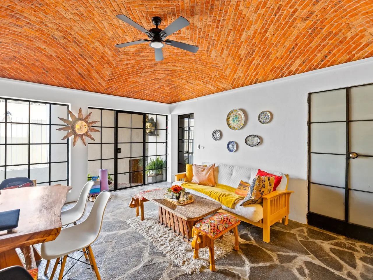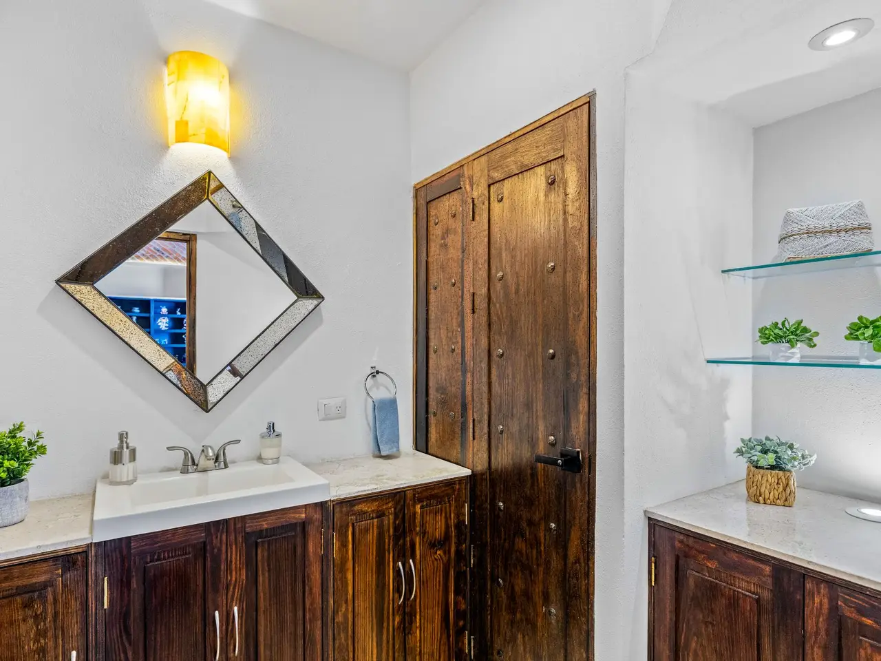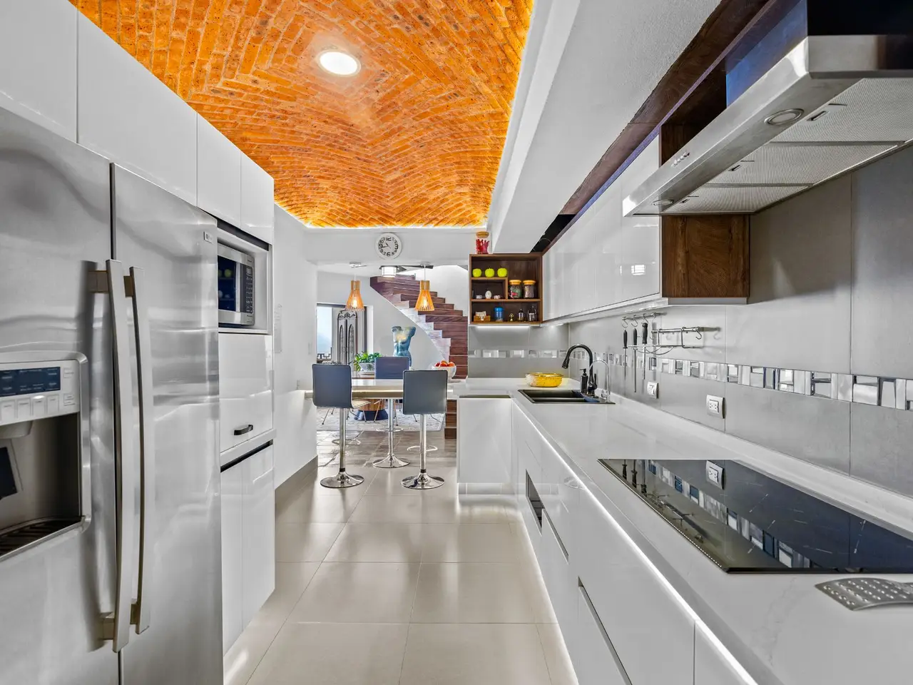 Prepare to be stunned when you enter Casa del Foro. Perched on a hillside overlooking all of downtown San Miguel de Allende and far beyond, this recently remodeled luxury house offers elegant living spaces, once-in-a-lifetime views and all of the amenities you’d expect to find in this desirable neighborhood. No detail has been overlooked, from the unique boveda ceilings and hand-carved doors to the casual dining nook in the kitchen that still manages to take advantage of the views of Centro. The open floor plan maximizes the incredible vistas to the South, the West and the North. You will enjoy indoor/outdoor living, complete with a cozy high tech bar and two dining areas, powered sun-blocking shades and more. The main house features a gracious entry courtyard with a remarkable sculpture by a renown artist. To the left are two separate guest bedrooms with gorgeous boveda ceilings and ensuite bathrooms. One you enter the main indoor sala, you can easily access the kitchen, the guest bathroom, the indoor and outdoor dining areas and a covered terrazzo that will take your breath away. Everywhere you look, the thoughtful design is evident. The intimate indoor/outdoor bar is right next to a private jacuzzi which has some of the best views in the house. Downstairs is a beautifully appointed two-bedroom apartment with its own kitchen and sala that can be used for guests or even rented out, thanks to the discreet separate entrance. Climb the gracefully dramatic wooden staircase and you will arrive at the luxurious master bedroom suite with views, motorized blackout drapes, an attached gym and a comfortable office. With whole house water purification, solar water heating and more bells and whistles than can fit in this description, Casa del Foro is one of San Miguel’s most luxurious properties today. The house features a lot of elegant handmade furniture and is offered turnkey with some exceptions, and the owners are also willing to consider an additional art package which would include much of the outstanding art collection. Amenities Garage 5 bedrooms 6 bathrooms Separate casita/apartment Views Solar water heating Furnished with exceptions Whole house water purification Personal gym Office Outdoor bar and entertaining area Hot tub Boveda Ceilings