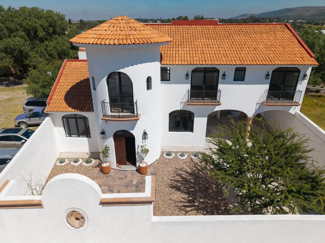 Charming Home with Guest Apartment in Vista Antigua — Just 5 Minutes from Centro San Miguel de Allende Welcome to this charming home located in the exclusive gated community of Vista Antigua, just five minutes from the vibrant heart of San Miguel de Allende. This spacious property offers a unique opportunity to enjoy comfort, privacy, and style in a peaceful, secure setting. The main house is thoughtfully designed on one level and features two bedrooms and two and a half bathrooms. The master suite includes a fireplace, a spacious walk-in closet, and an ensuite bathroom with both shower and tub. Large glass doors open to a private outdoor area as well as an interior patio, creating a seamless connection between indoor and outdoor living. Throughout the home, natural light fills the spaces, highlighting the pitched clay tile roof and creating a warm, inviting ambiance. Upstairs, a fully equipped guest area with two bedrooms and a separate entrance offers a private space for friends or family. With its own kitchen, living area, bathrooms and private terrace, it’s ideal for hosting unexpected or long-term guests. The property also includes a laundry room, storage room, and a basement with a wine cellar, as well as three fireplaces in the dining room, den and principal bedroom, for cozy evenings. Four security cameras provide peace of mind, and there is ample parking for up to four vehicles. Outside, the large lot offers a blank canvas with ample space to design and landscape a lush garden that complements the home’s tranquil atmosphere. Whether you're looking for a full-time residence, a vacation retreat, or an investment property, this beautiful home in Vista Antigua offers the perfect blend of charm, flexibility, and potential — all just minutes from the historic center of San Miguel de Allende.