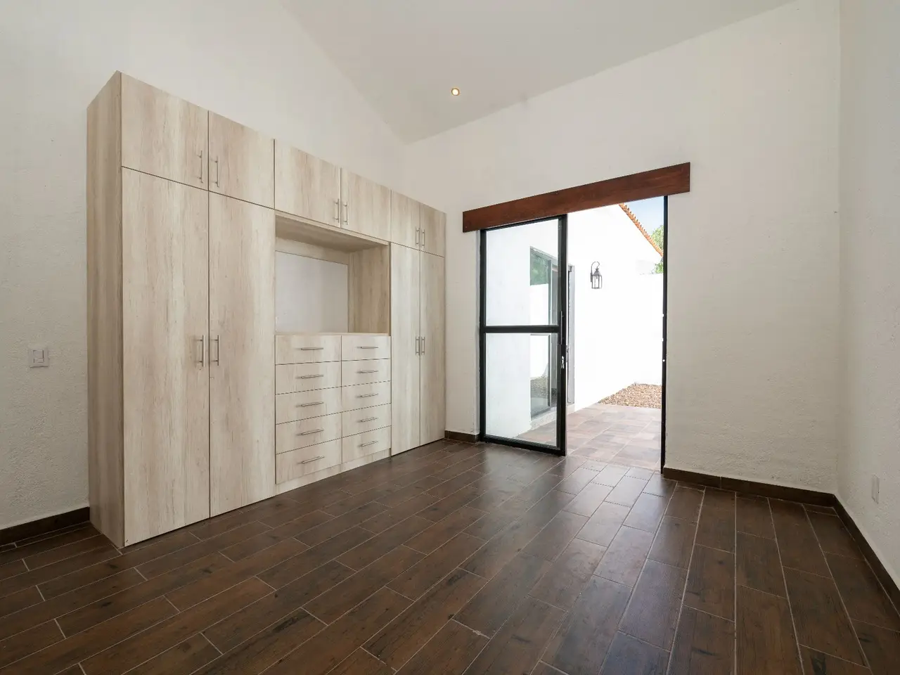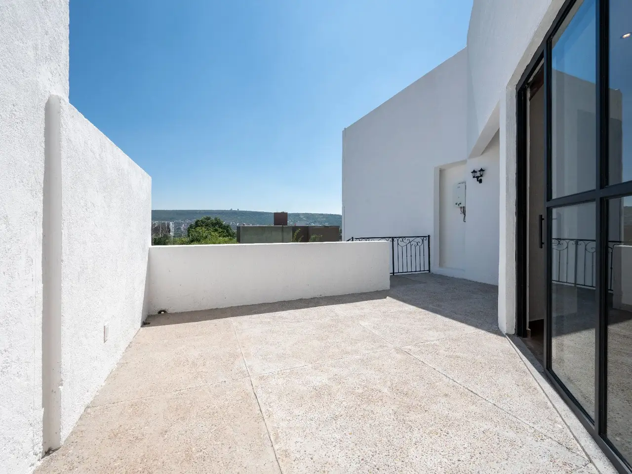 Private outdoor area with large glass doors