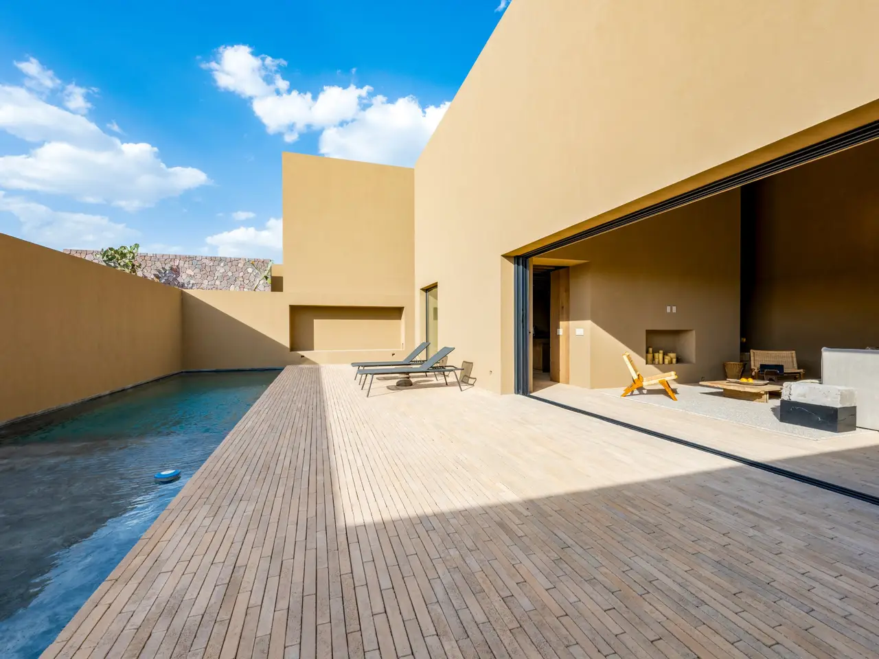 Stylish Countryside Living in La Providencia – San Miguel de Allende Exceptional Setting: Tucked at the foot of the Picachos Mountains in the sought-after gated community of La Providencia—where nature meets refined living just minutes from town. 4 Comfortable Bedrooms: Each room offers peaceful views of an interior terrace or mountain views; the primary suite features stunning vistas and a spa-worthy bath. Wellness-Focused Baths: Designed to feel like a retreat—skylit showers, natural materials, and small interior gardens bring light and calm to your daily routine. Secluded Pool Sanctuary: The central courtyard-style pool is thoughtfully hidden from view, creating a peaceful centerpiece ideal for both quiet moments and lively gatherings. Bright & Airy Design: Open living spaces with abundant natural light, elegant finishes, and an effortless connection to outdoor terraces and landscaped gardens. Chef-Inspired Kitchen: High-end appliances, sleek stone surfaces, and custom cabinetry come together in a space perfect for casual meals or entertaining guests. Surrounded by Nature: Native flora and thoughtful landscaping create a serene backdrop that enhances privacy and blends seamlessly with the environment. Balance of Tranquility & Access: Enjoy the peace of countryside living without sacrificing quick access to San Miguel’s art scene, dining, and boutiques.