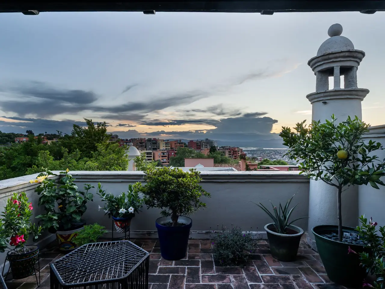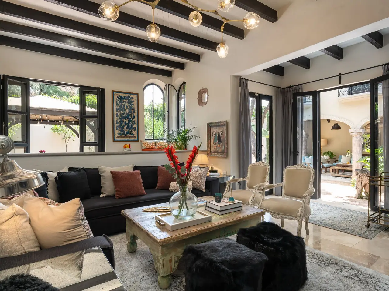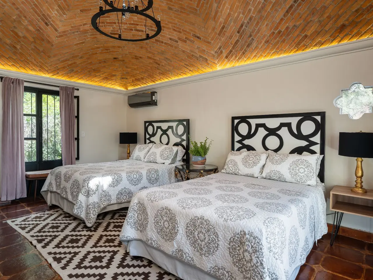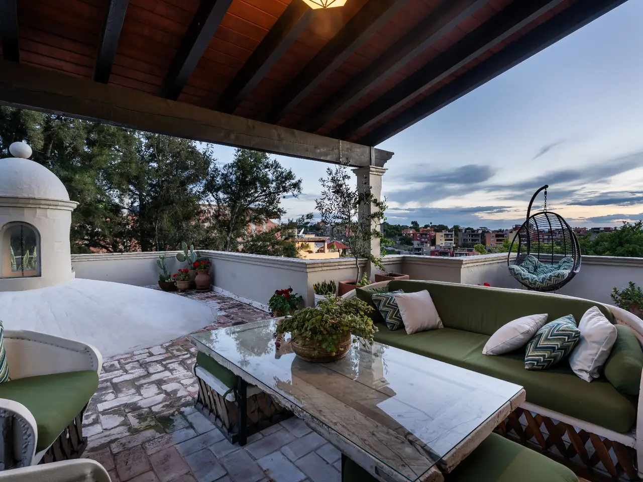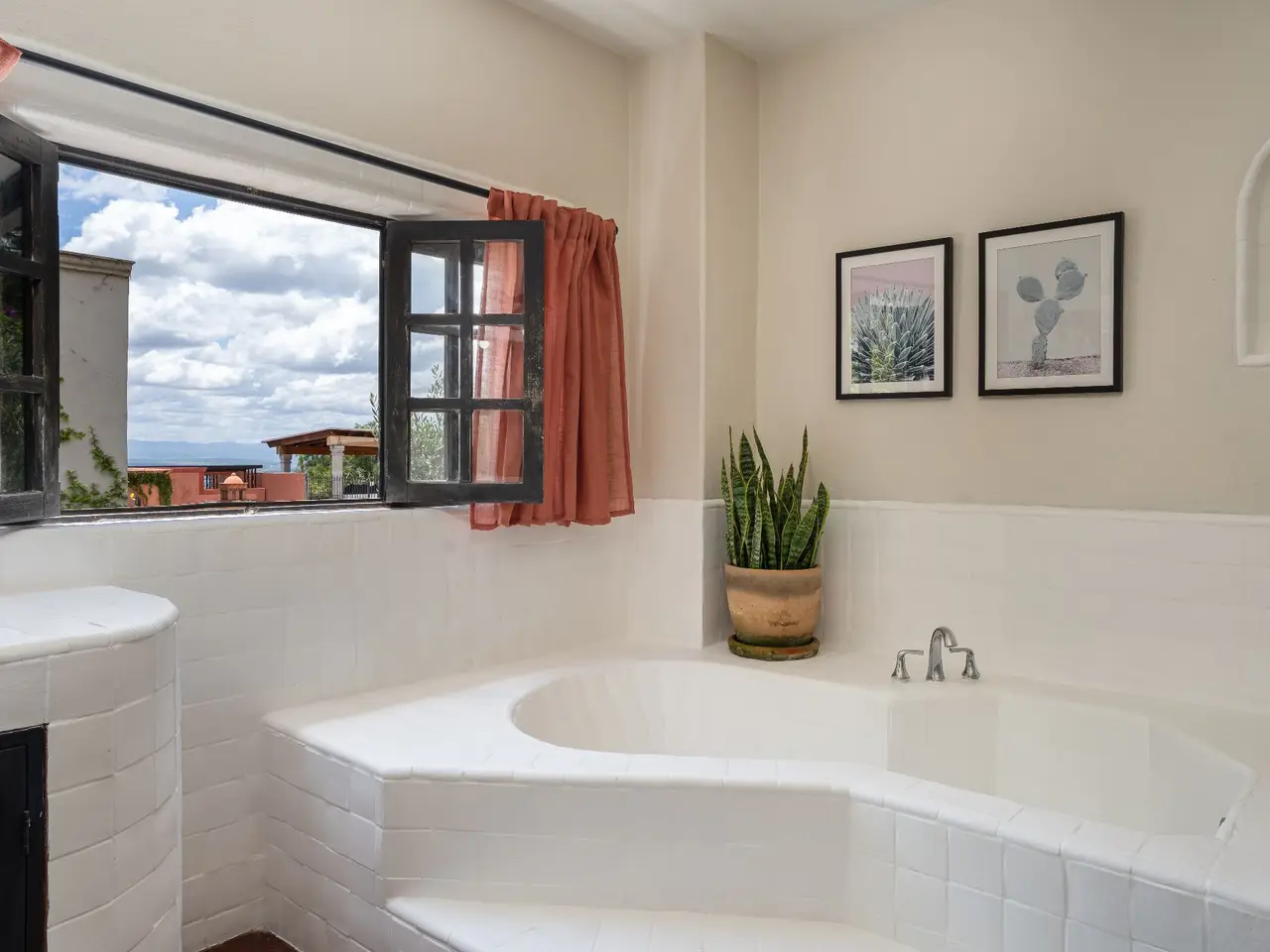 Welcome to Casa Oasis, a Modern Colonial gem tucked away on one of the most coveted streets in Colonia Atascadero—one of San Miguel de Allende’s most desirable neighborhoods. As you enter through the antique wooden doors, you’re welcomed by a beautifully landscaped garden featuring a serene pool, a covered loggia, and an inviting outdoor dining area. It’s a peaceful sanctuary that sets the tone for the elegance and tranquility found throughout the home. Inside, the residence has been thoughtfully updated to blend timeless charm with modern sophistication. Flooded with natural light, the interiors feel bright, open, and effortlessly comfortable. At the heart of the home, the spacious gourmet kitchen, dining room, and sunken living room all look out toward the lush gardens, creating a seamless connection between indoor and outdoor living. Whether preparing meals in the well-appointed kitchen or relaxing in the living room, you’re constantly surrounded by beauty and light. A stylish bar—complete with a wine refrigerator—adds the perfect touch for entertaining and opens directly to the outdoor dining area, making gatherings both easy and memorable. The main house features two spacious bedrooms, each with its own en-suite bathroom. Between them lies a versatile space ideal for a home office, den, or reading nook. The primary suite features a private sitting area that opens onto two terraces with lovely views—ideal for morning coffee or an evening under the stars. For guests, a separate casita offers a private retreat, complete with its charm and space to unwind. Although just a 15-minute walk (albeit a charmingly hilly one) from the lively Jardín, Casa Oasis feels a world apart—offering privacy, serenity, and sweeping views that only Atascadero can provide yet minutes from centro.