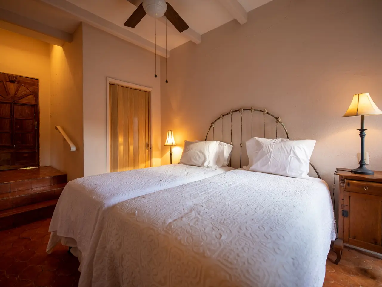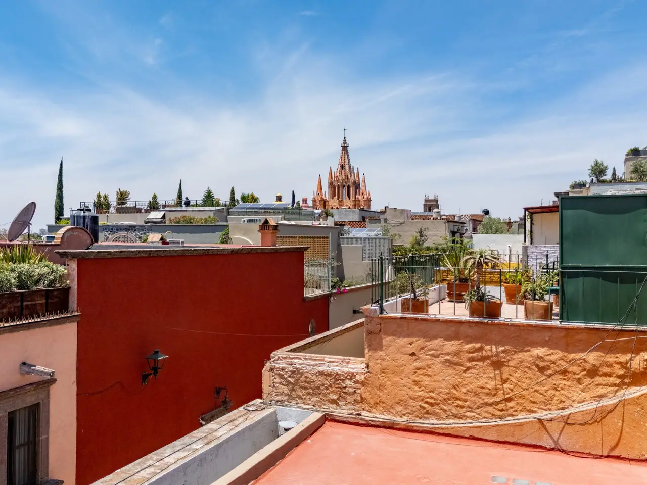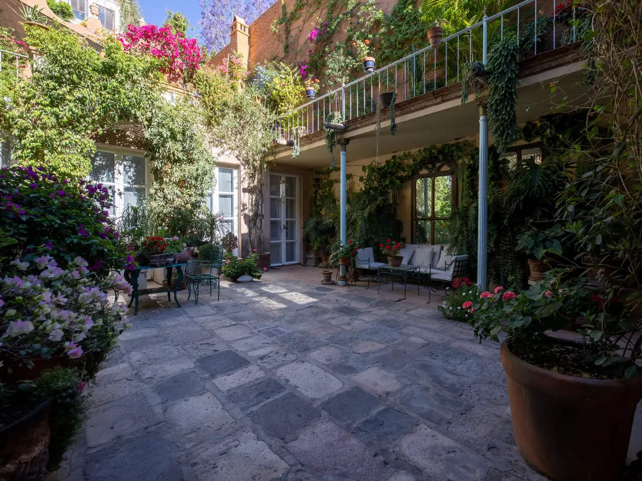 Casa Peggy — Timeless Elegance in the Heart of San Miguel Tucked away on the prestigious Diez de Sollano y Dávalos, one of San Miguel de Allende’s most sought-after and picturesque streets, Casa Peggy is a true southern belle—graceful, refined, and rich in character. This beautifully appointed residence features a two-bedroom main house with the flexibility of a third bedroom or studio, as well as a spacious one-bedroom apartment discreetly situated at the rear of the property—ideal for guests or rental income. Step inside to find soaring beamed ceilings, antique imported marble floors, and a cantera stone fireplace anchoring the elegant living room. The marble floors continue into the refined dining area, where French doors open to a lush central patio, creating seamless indoor-outdoor living. The kitchen, both practical and charming, is outfitted with a breakfast nook, oversized pantry, and wet bar, offering all the essentials for effortless entertaining. At the heart of the home lies a flower-filled courtyard, framed by New Orleans-style columns, and surrounded by terraced gardens on the second floor—evoking a sense of serene, southern charm. Upstairs, two generous en suite bedrooms await, each designed with comfort and privacy in mind. The primary suite opens onto a large balcony beneath a New Orleans-inspired roofline, perfect for morning coffee. A third upstairs room, currently configured as an expansive dressing room, can easily transform into a guest bedroom, private office, or creative studio. With its solid construction and prime location, Sollano 44 offers the exciting potential to build upward—expanding the second level or adding a full third floor to capture the panoramic rooftop views that define San Miguel living. And with a private garage, this historic gem offers a rare and highly coveted convenience in the city center.