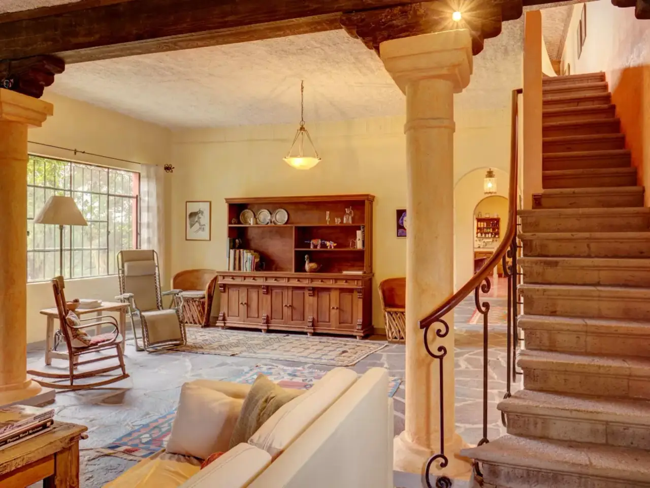 Introducing "El Mirador" – a truly exceptional residence that transcends the ordinary and embodies a harmonious blend of luxury, history, and serenity. Nestled in a private sanctuary, this estate beckons you with a captivating embrace of old-world glamour, relaxation, and endless entertainment possibilities. This stately two-story masterpiece offers sweeping views of the majestic mountains and the tranquil La Presa, all while presiding over a sprawling 10,000 square meters of pristine land adorned with majestic Mesquite trees. A charming guest house graces this estate, presenting an idyllic setting for horse enthusiasts. The property features a riding pen and five meticulously crafted horse stalls, creating a haven for equestrian lovers to indulge their passions. Conveniently located just a short 5-minute drive from the heart of town, "El Mirador" seamlessly balances the tranquility of countryside living with easy access to the vibrant energy of the city. For those with a penchant for collecting, a spacious garage awaits, capable of accommodating up to 10 cars. It's a haven for automobile aficionados and a testament to the grandeur of this estate. In "El Mirador," you'll discover a lifestyle that transcends the ordinary, a place where the graceful rhythm of country life unfolds with each passing day. Wake up to the gentle rustling of leaves and the melodious chirping of birds, a daily reminder of the serene beauty that surrounds you. The residence itself features two generously appointed bedrooms and two elegantly designed bathrooms. Each room exudes an air of sophistication and timeless elegance, ensuring that you have the perfect oasis to retire to after a day of adventures on the property or exploring the vibrant town. "El Mirador" is more than just a home; it's a testament to the art of gracious living. Whether you seek a tranquil retreat, a space to cultivate your equestrian passions, or simply a haven of relaxation, this estate stands ready to fulfill your every desire. Experience the epitome of luxury, history, and country living at "El Mirador."