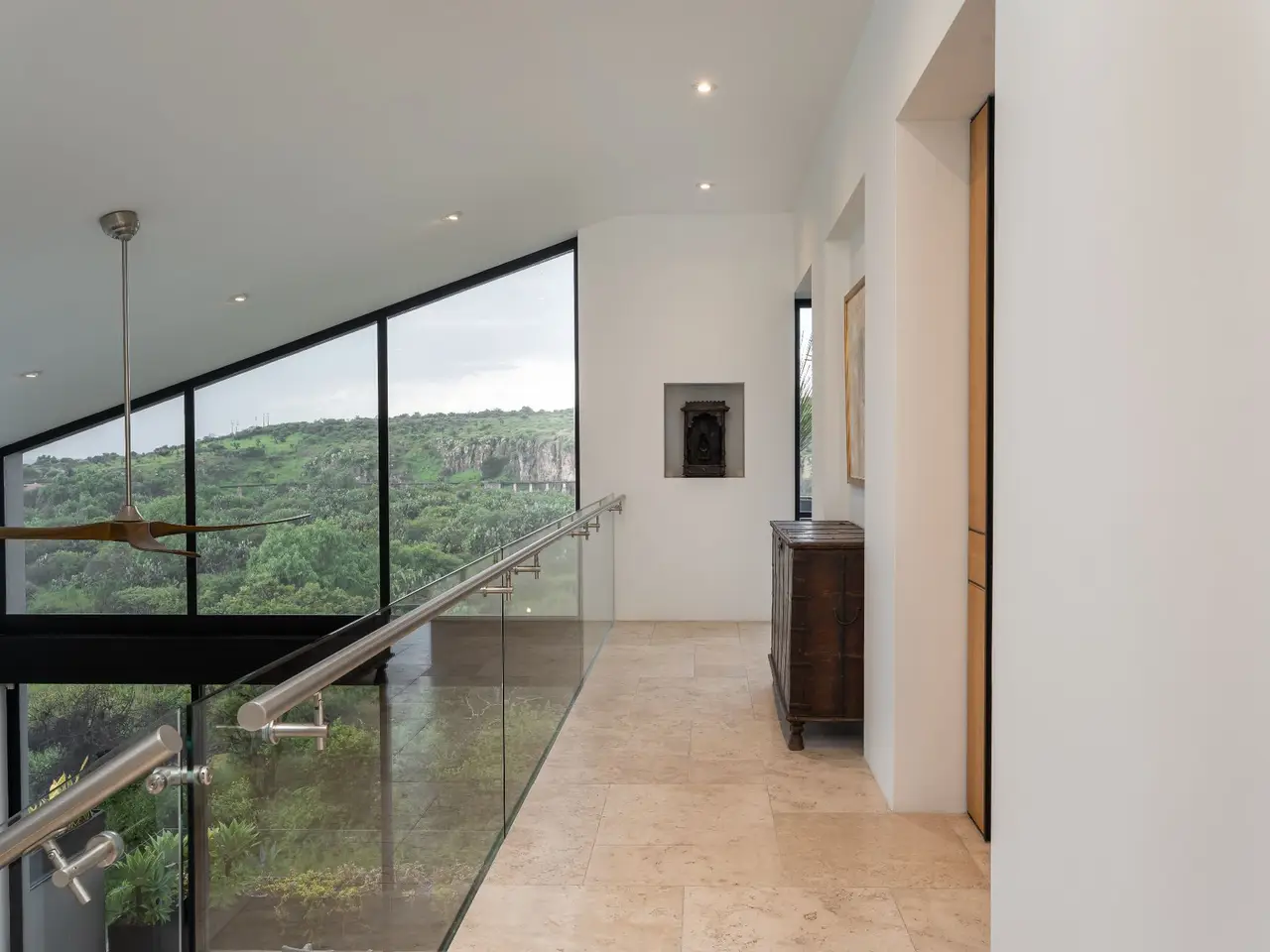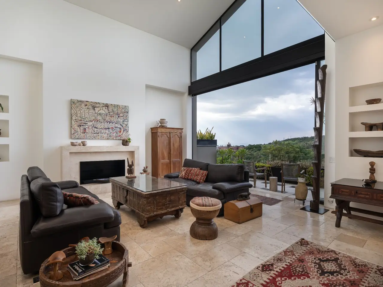 Mirador del Charco Luxury Living Above San Miguel’s Most Beautiful Views Perched in the highly sought-after Balcones neighborhood, Mirador del Charco offers something rare even in San Miguel de Allende real estate — sweeping, unobstructed views of the lush Charco del Ingenio Botanical Gardens. Here, luxury and nature work together perfectly. Just an 8-minute descent to the Historic Center, yet far enough to enjoy the peace and privacy of a hillside retreat. You can stroll to the Botanical Gardens in minutes, then return home to one of the finest architectural works in the city. Designed by celebrated architect Felipe Argüelles and featuring gardens by renowned landscape artist Tim Wachter — the creative force behind the iconic Rosewood gardens — every inch of this home was crafted with masterful attention to detail. Warm woods, elegant stone, and custom ironwork set the tone for timeless quality. A Warm Welcome Step through the entry and immediately feel the embrace of craftsmanship and light. The foyer opens to soaring double-height ceilings and a grand fireplace in the living room, framing views so spectacular they look like paintings. From here, your eyes are drawn outward to the emerald canyon of Charco del Ingenio — a view that will change with the seasons, but never lose its magic. Main-Floor Comfort and Convenience The primary suite is conveniently located on the main floor and offers a spacious walk-in closet, cozy sitting area, dedicated office space, and indulgent steam bath — perfect for unwinding after a day exploring San Miguel de Allende. A Kitchen Made for Living The chef’s kitchen blends form and function with generous counter space, a walk-in pantry, and a comfortable breakfast area. It’s ideal for both intimate mornings and lively evenings with friends, with direct access to the dining area. Indoor–Outdoor Flow The dining space opens effortlessly to a garden oasis — an enchanting creation by Tim Wachter, complete with water features, shaded sitting areas, and the calming presence of nature. It’s the kind of space where dinners linger and mornings begin slowly. Upstairs with a View Two spacious upstairs bedrooms each have en-suite baths and private terraces — the perfect spots for morning coffee while watching the sun rise over the canyon, or evening cocktails as the city’s lights begin to twinkle. The Casita The independent casita at the front of the house, provides a fourth bedroom with its own bath offering flexibility for guests, extended family, or even a creative studio. Luxury That Runs Deep Beyond the beauty you can see, Mirador del Charco offers top-tier infrastructure for comfort and sustainability: - Radiant floor heating - Solar panels - Rainwater catchment with filtration system - Water purification and reverse osmosis - Automatic irrigation system - Sonos sound system - Two-car garage - Private wine-tasting room - Two large storage areas - Fully furnished including a rare curated global art collection Don’t miss the opportunity to experience what the unique Mirador del Charco has to offer!