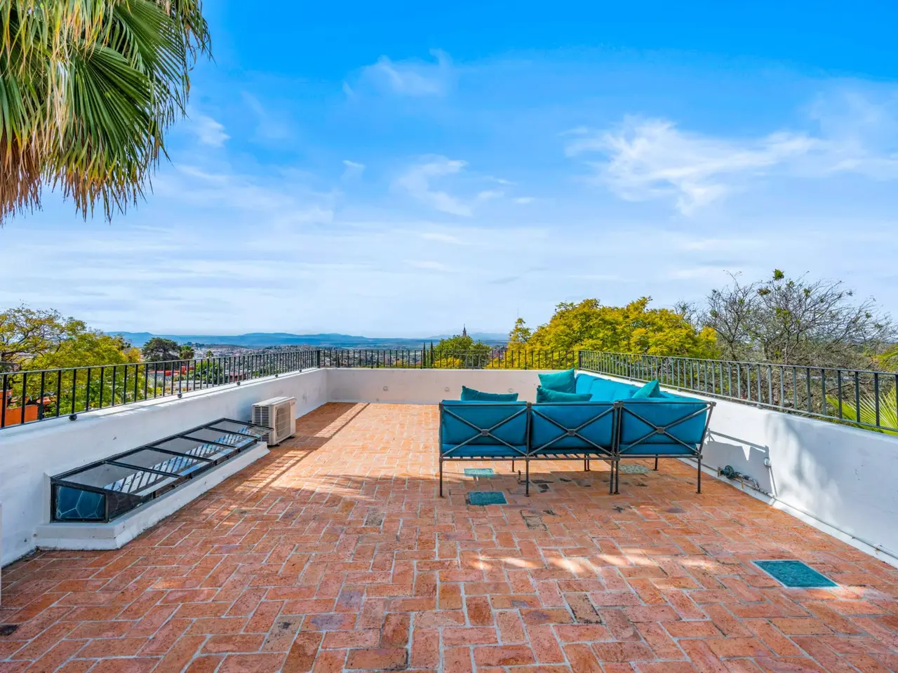 Panoramic rooftop terrace with iconic church views