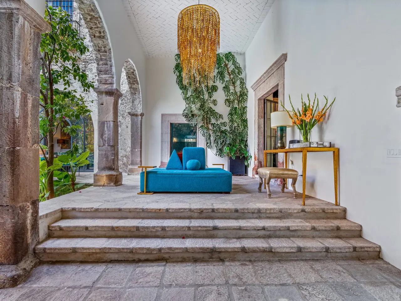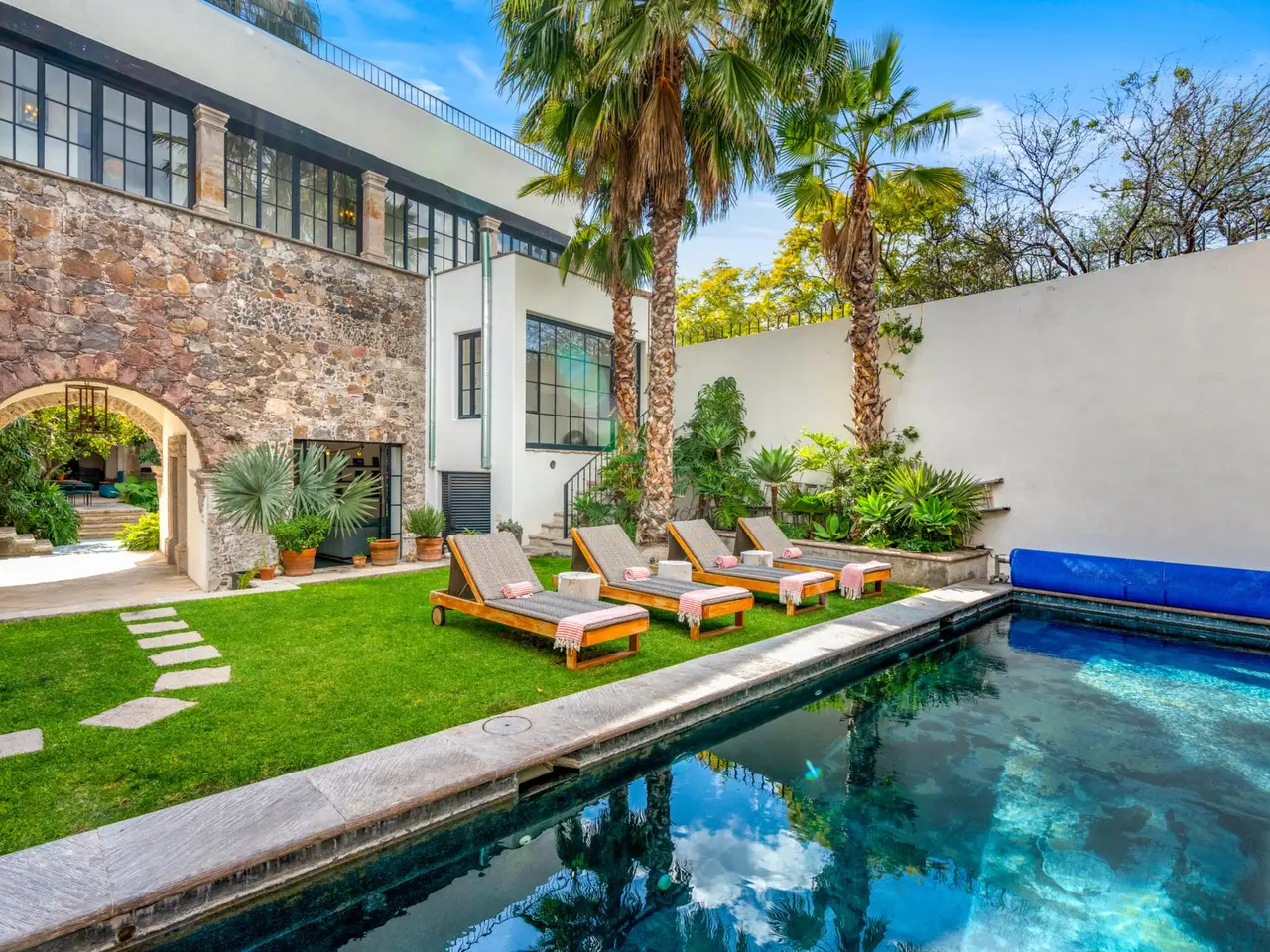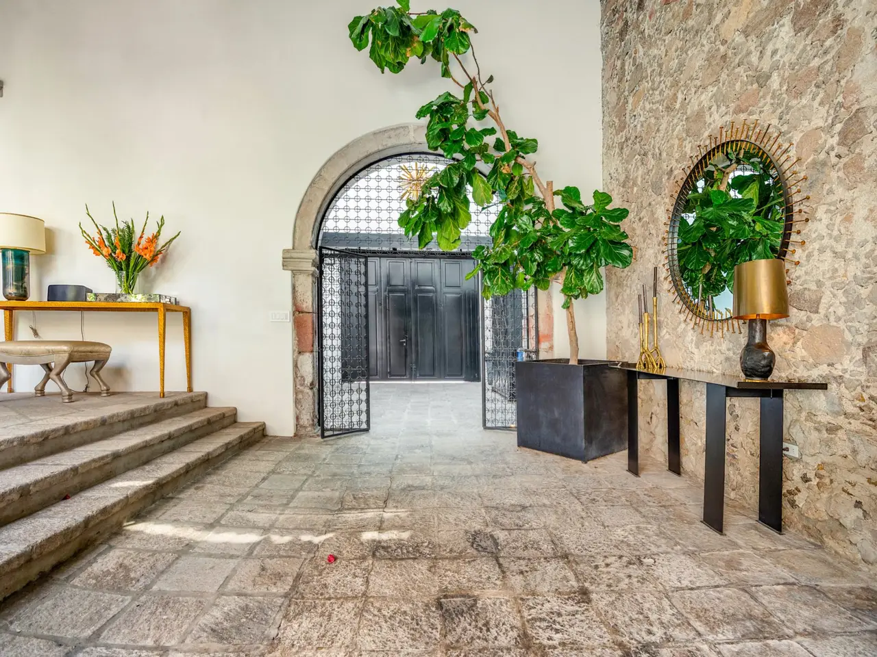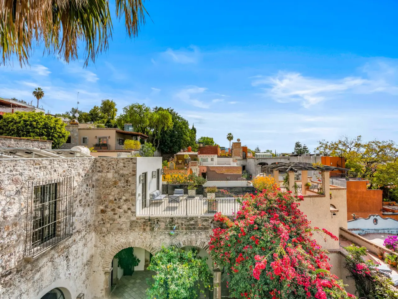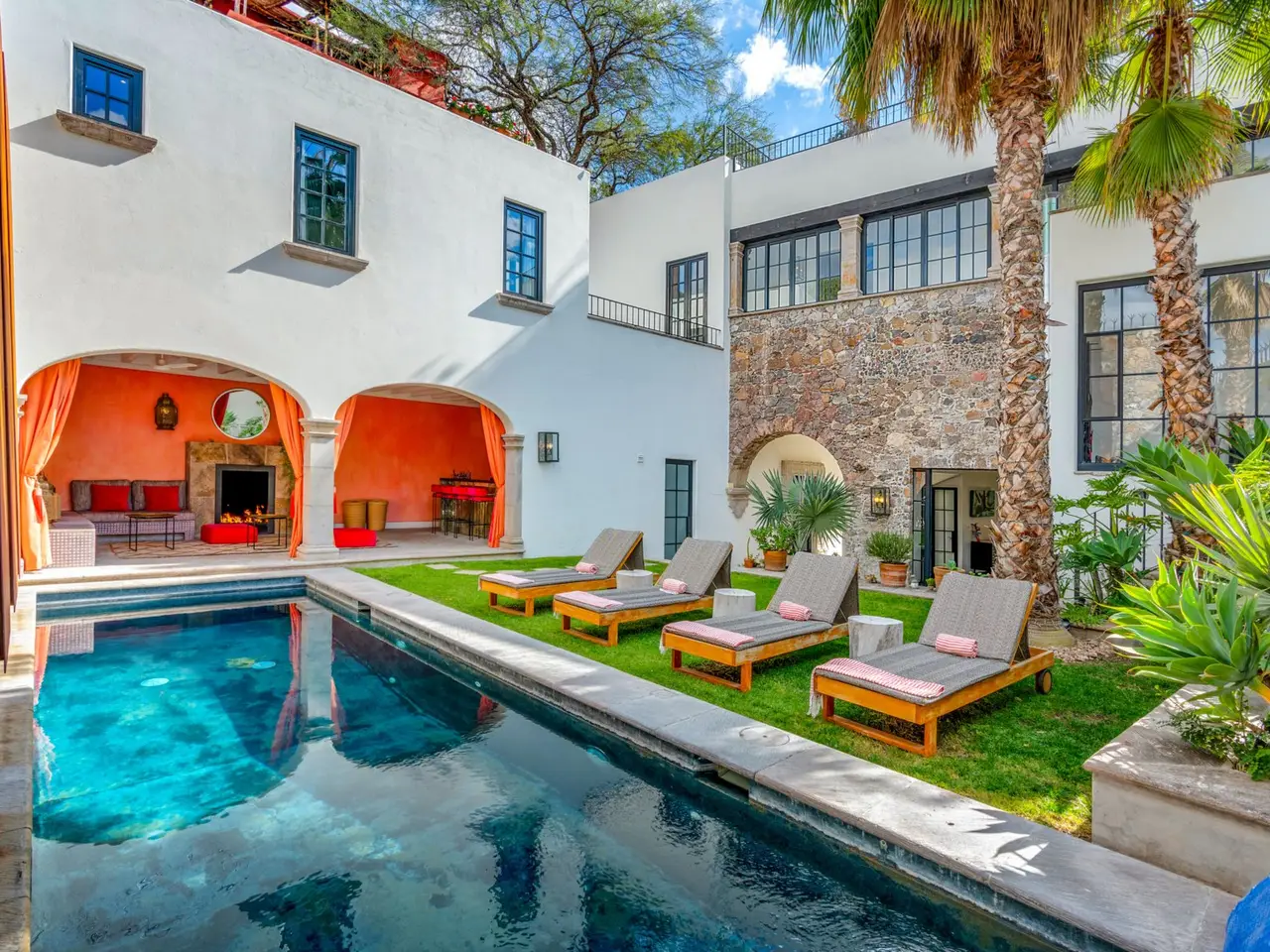 Villa Garita: A Historic Jewel in the Heart of San Miguel de Allende Experience the pinnacle of luxury living at Villa Garita, a masterfully restored historic property nestled in the heart of San Miguel de Allende’s enchanting Centro Histórico. Designed by renowned interior designer Rachel Horn, this exquisite Colonial treasure exudes elegance and sophistication, blending timeless architectural details with modern comforts. Boasting five spacious bedrooms and five-and-a-half bathrooms, Villa Garita captivates with its soaring ceilings, intricate architectural features, and impeccable attention to detail. The expansive verdant courtyard, complete with a charming water feature, sets the tone for serenity, while the multiple outdoor spaces invite relaxation and refined entertaining. The chef’s kitchen is a culinary masterpiece, equipped with state-of-the-art appliances, silver-leaf cabinets, and luxurious marble countertops. For wellness enthusiasts, an exercise studio with views of the lush back garden provides the perfect retreat. The property’s thoughtfully designed living spaces include formal living and dining areas, a cozy den, and a spacious media room located at the heart of the home. Whether hosting a lively gathering or enjoying a quiet evening, these spaces cater to every occasion. Upstairs, the five beautifully appointed bedrooms offer privacy and comfort. Three feature en suite bathrooms, while the remaining two share a stylishly designed bathroom. The crown jewel of Villa Garita is its rooftop terrace, offering panoramic views of San Miguel’s iconic churches—a perfect spot to enjoy breathtaking sunsets or festive celebrations. Step outside into the lush rear garden, where a sparkling swimming pool awaits alongside a fully equipped indoor/outdoor living room. This inviting space features a sitting area, fireplace, full bathroom, wet bar, and game area, making it ideal for year-round enjoyment. A true oasis in the heart of the city, Villa Garita is offered fully furnished, with select exclusions. Don’t miss this extraordinary opportunity to own one of San Miguel de Allende’s most coveted properties. Discover Villa Garita—where historic charm meets modern luxury.