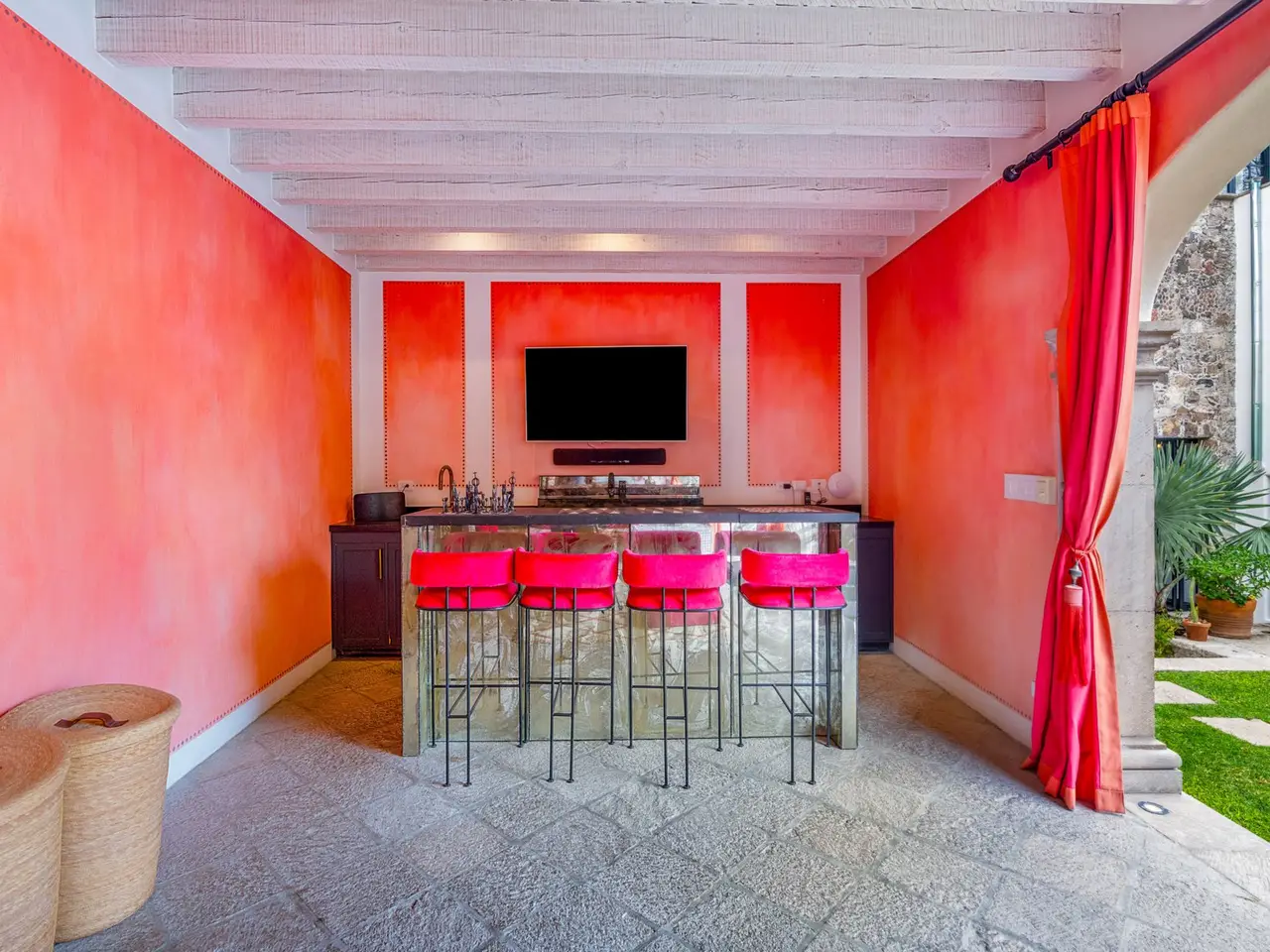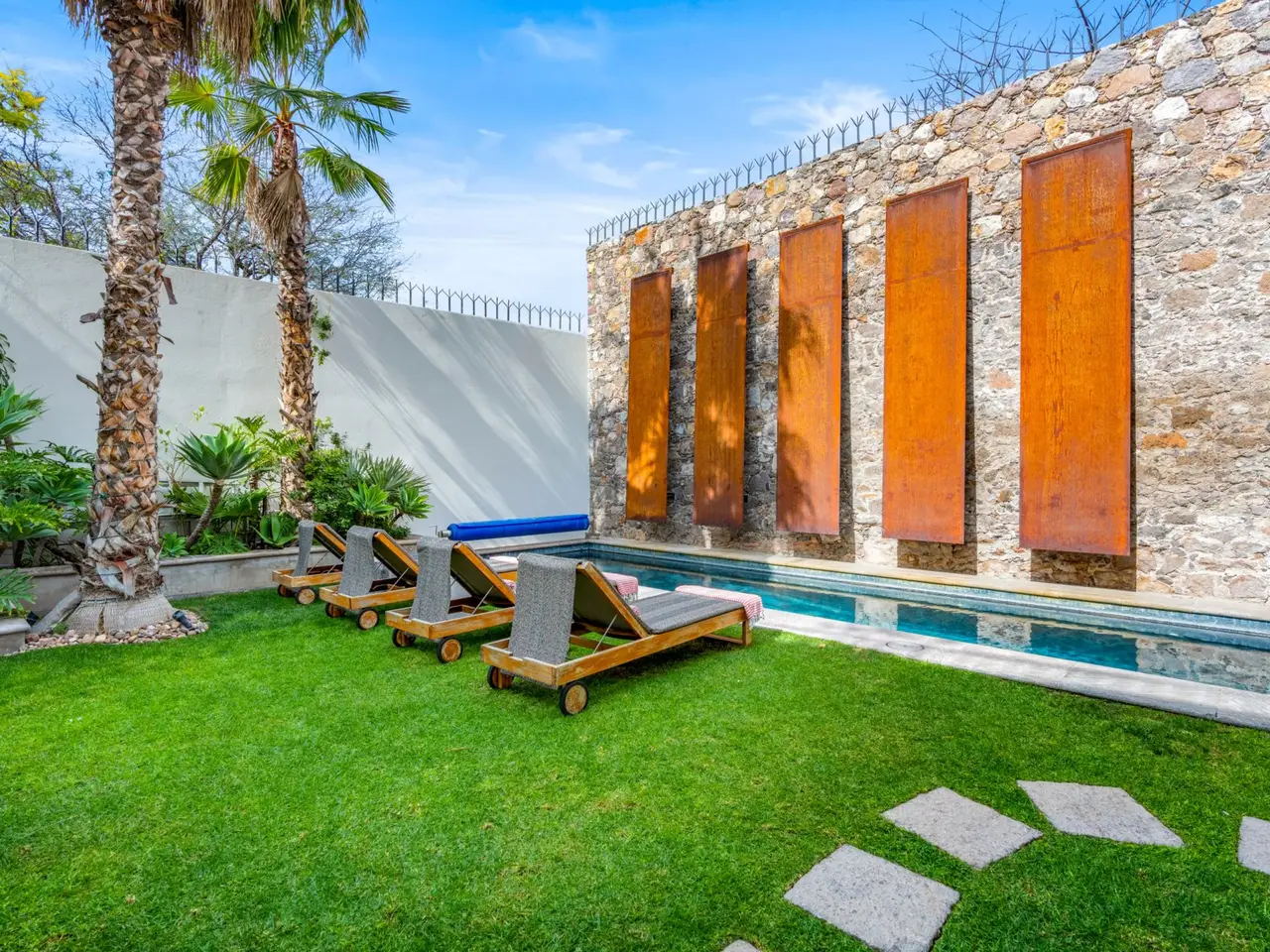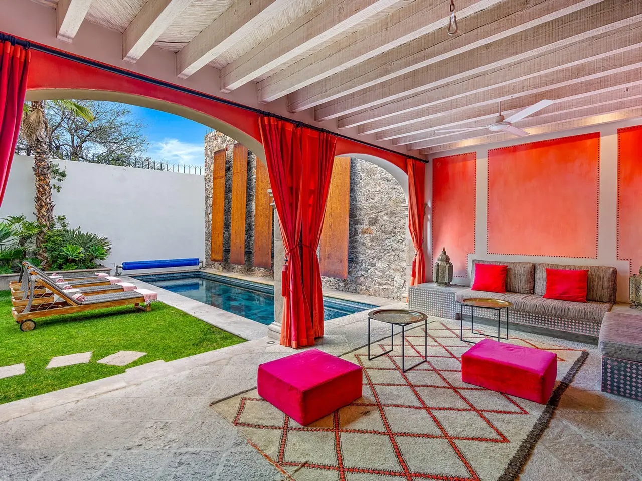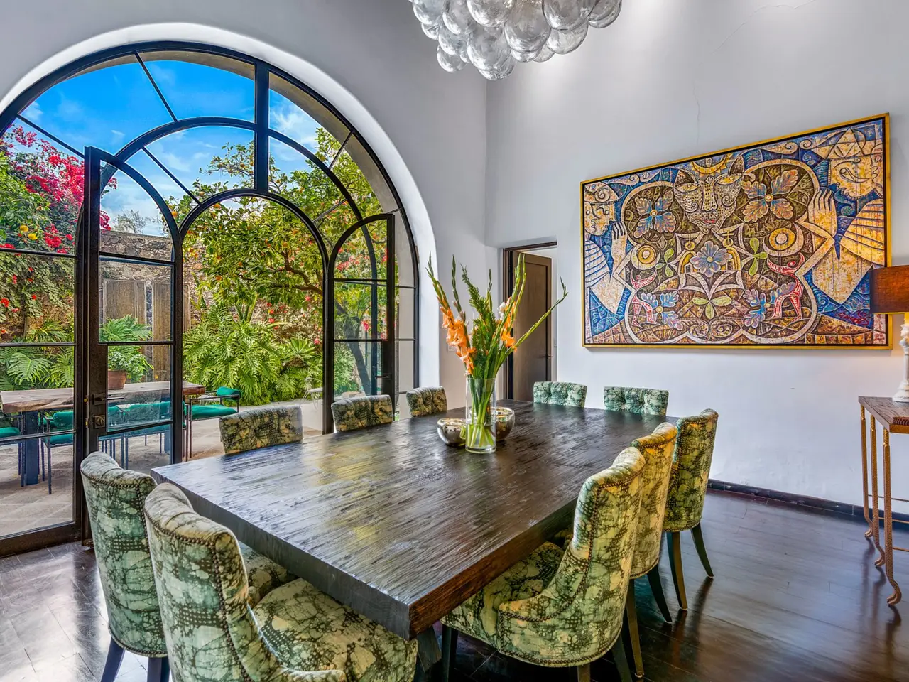 Villa Garita: A Historic Jewel in the Heart of San Miguel de Allende Experience the pinnacle of luxury living at Villa Garita, a masterfully restored historic property nestled in the heart of San Miguel de Allende’s enchanting Centro Histórico. Designed by renowned interior designer Rachel Horn, this exquisite Colonial treasure exudes elegance and sophistication, blending timeless architectural details with modern comforts. Boasting five spacious bedrooms and five-and-a-half bathrooms, Villa Garita captivates with its soaring ceilings, intricate architectural features, and impeccable attention to detail. The expansive verdant courtyard, complete with a charming water feature, sets the tone for serenity, while the multiple outdoor spaces invite relaxation and refined entertaining. The chef’s kitchen is a culinary masterpiece, equipped with state-of-the-art appliances, silver-leaf cabinets, and luxurious marble countertops. For wellness enthusiasts, an exercise studio with views of the lush back garden provides the perfect retreat. The property’s thoughtfully designed living spaces include formal living and dining areas, a cozy den, and a spacious media room located at the heart of the home. Whether hosting a lively gathering or enjoying a quiet evening, these spaces cater to every occasion. Upstairs, the five beautifully appointed bedrooms offer privacy and comfort. Three feature en suite bathrooms, while the remaining two share a stylishly designed bathroom. The crown jewel of Villa Garita is its rooftop terrace, offering panoramic views of San Miguel’s iconic churches—a perfect spot to enjoy breathtaking sunsets or festive celebrations. Step outside into the lush rear garden, where a sparkling swimming pool awaits alongside a fully equipped indoor/outdoor living room. This inviting space features a sitting area, fireplace, full bathroom, wet bar, and game area, making it ideal for year-round enjoyment. A true oasis in the heart of the city, Villa Garita is offered fully furnished, with select exclusions. Don’t miss this extraordinary opportunity to own one of San Miguel de Allende’s most coveted properties. Discover Villa Garita—where historic charm meets modern luxury.
