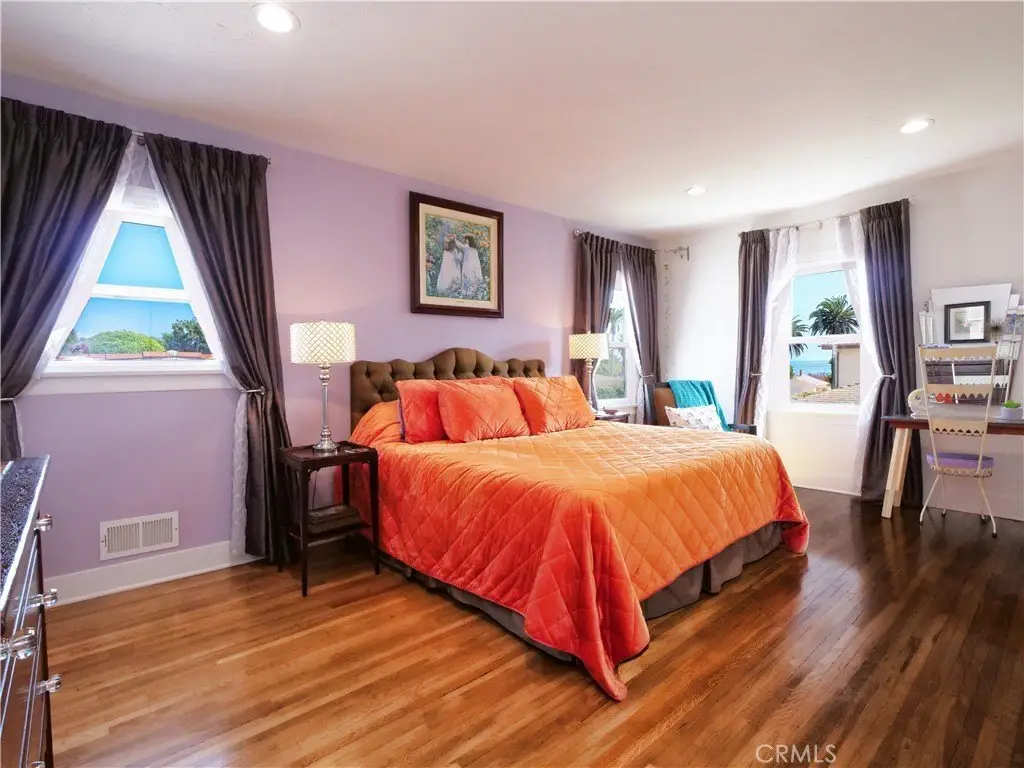 Introducing a rare Spanish-style gem in the highly sought-after Palisades coastal community of San Pedro, just steps from the bluffs of Paseo Del Mar and the Pacific Ocean. This three bedroom, two bathroom split-level unique home embraces 1,885 square feet of charm, character, and timeless elegance situated on a sizable, flat 7,504 square foot lot. The dramatic formal living room boasts soaring ceilings, vintage chandelier, and hardwood floors, while the sun-filled adjacent dining room overlooks the lush yard—perfect for visiting with family and friends. The remodeled kitchen features ample cabinetry, handcrafted tile backsplash, and convenient interior laundry room off the kitchen with a newer stack washer and dryer. The first-floor bedroom is spacious featuring a large closet and adjacent remodeled downstairs bathroom showcasing an oversized walk-in shower with classic handcrafted tile accents. Upstairs, two large bedrooms highlights walk-in closets, additional storage space, and peek-a-boo ocean views. A beautifully remodeled hall bathroom with tub/shower completes the upper level. Step outside to your secluded and expansive park-like backyard rendering to gentle ocean breezes. A covered patio with built-in overhead lighting invites year-round serene relaxation or enjoyable entertaining. Additional features include air conditioning, hardwood floors, custom window treatments, recessed lighting, new sod in the front yard, a long-paved driveway to park additional cars, a two-car garage, and ample storage. Enjoy coastal living with nearby White Point Nature Preserve, Royal Palms, Point Fermin Park & Lighthouse, Fort Mac Arthur Museum, Angels Gate Cultural Center, Korean Friendship Bell, and the Tidepools below the Ocean Bluffs. Don’t miss this rare opportunity to own a piece of San Pedro’s Palisades charm!