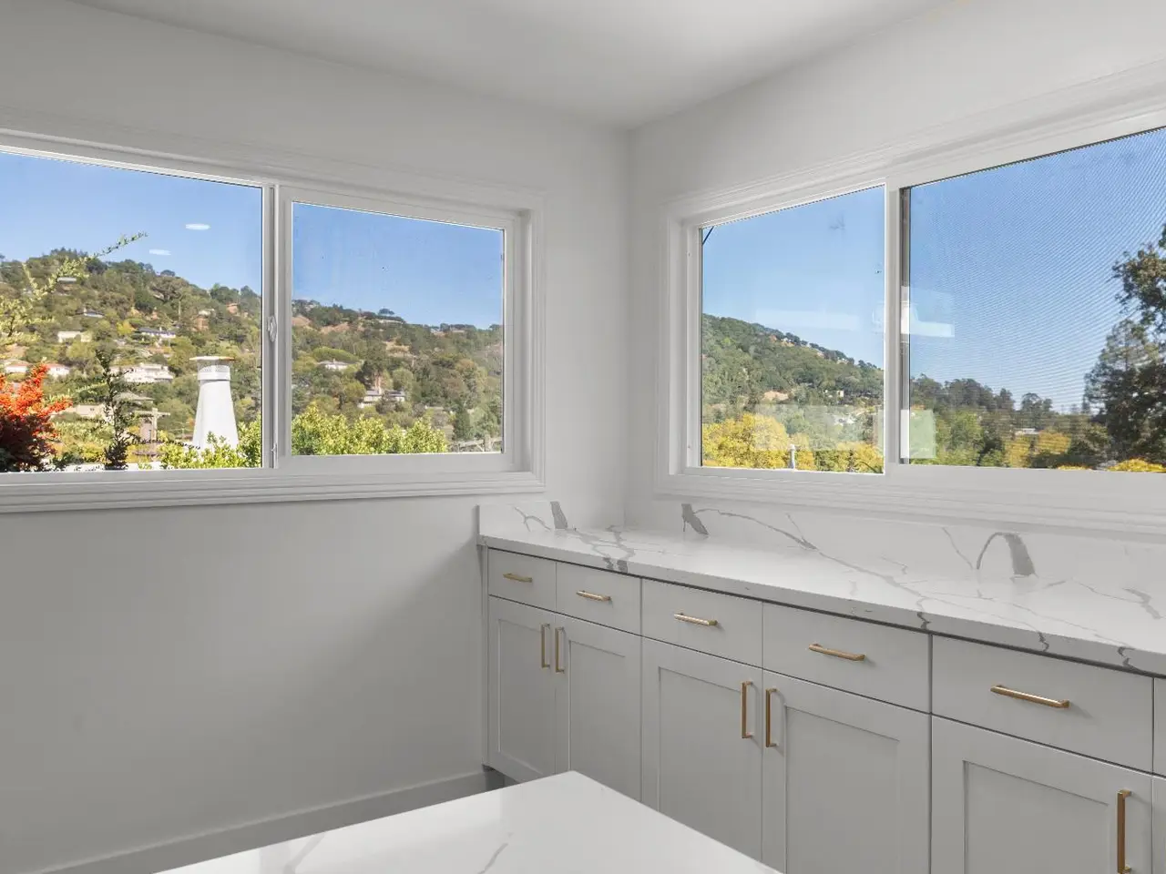 Modern Duplex Retreat! Welcome to 40 Leafwood Circle, a beautifully renovated duplex combining contemporary design, comfort, and versatility in a peaceful hillside setting. Each 2-bedroom, 2-bathroom residence features open layouts, wide-plank oak floors, and abundant natural light from expansive picture windows. Chef's kitchens showcase quartz countertops, designer cabinetry, black hardware, and stainless steel appliances, while spacious great rooms flow seamlessly to the outdoors. Primary suites offer stylish en-suite baths, and secondary bedrooms provide flexible space for guests or a home office. A fully permitted lower-level space adds potential for a studio, home office, or additional income unit. A prime location close to town, shops, restaurants and transit, this duplex offers modern Marin living at its finest.