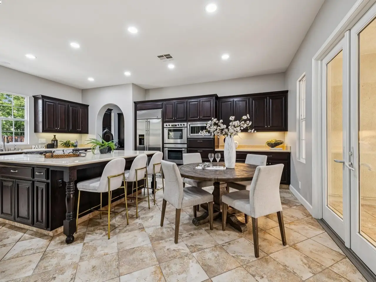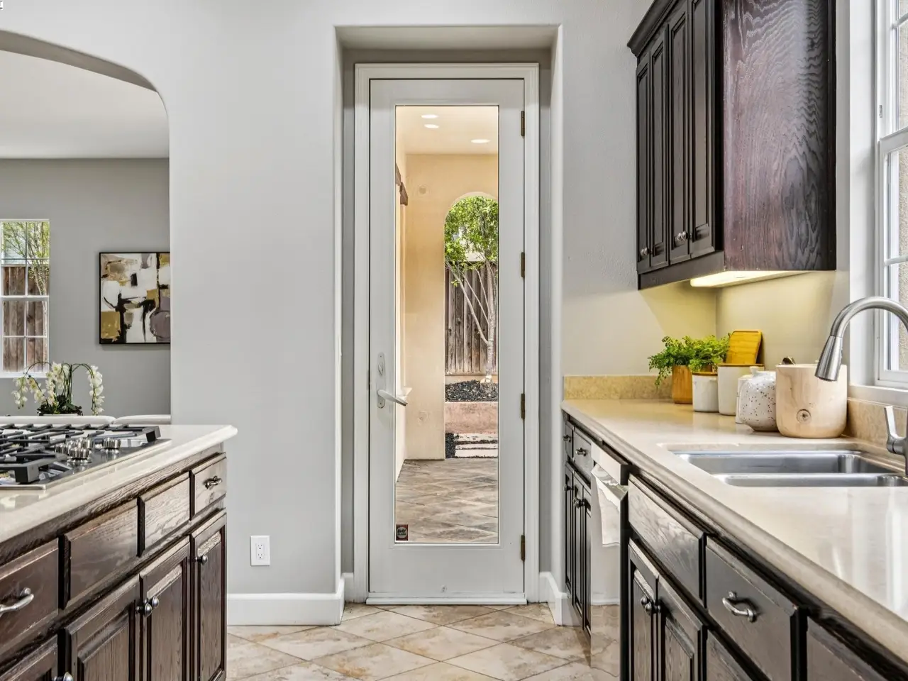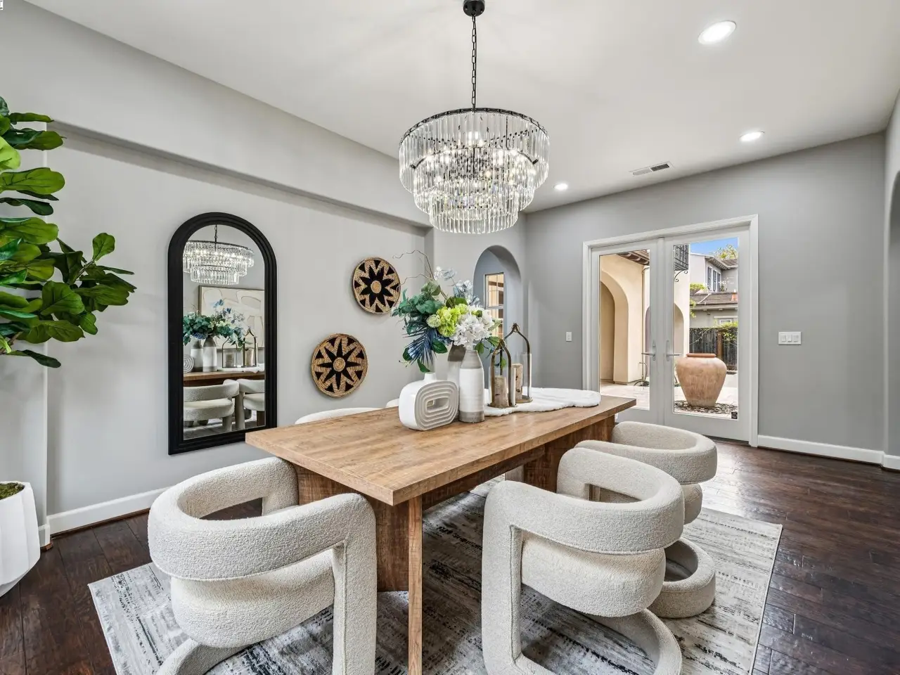 French doors opening to courtyard