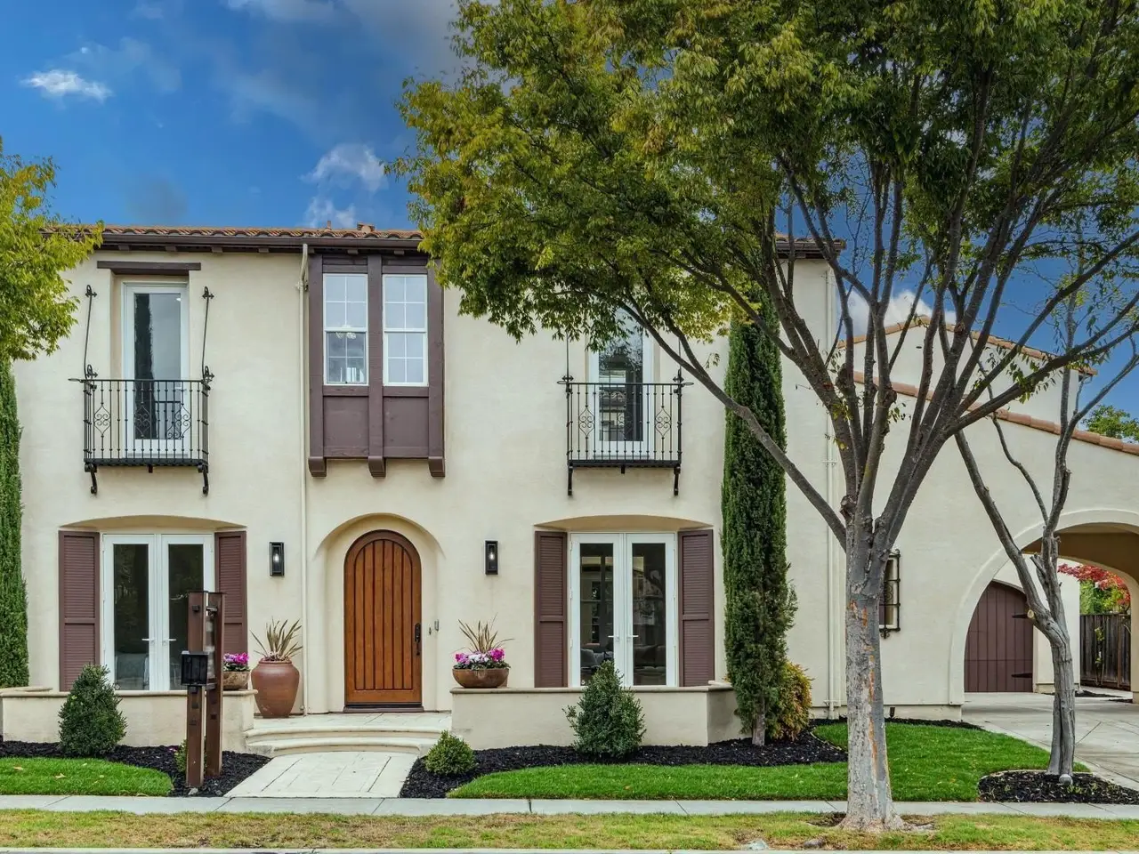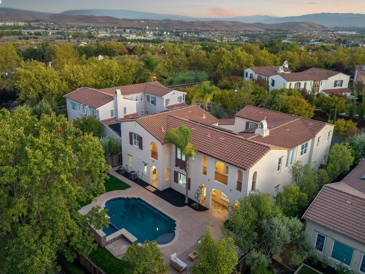 Welcome to this stunning home in the highly sought-after Gallery at Gale Ranch! Featuring elegant arches, balconies & refined architectural details, this residence combines luxury & functionality. Formal living & dining rooms provide a grand setting for entertaining, while the open-concept family room & chef’s kitchen—with a large island, gas cooktop & casual dining area—create the perfect space for everyday living. French doors open to a charming courtyard for seamless indoor-outdoor flow. The 1st-floor bedroom & full bath are ideal for guests or in-laws. Upstairs, the primary suite offers a private balcony overlooking the backyard, walk-in closet, dual vanities, large shower & jetted tub. A versatile loft & two additional bedrooms complete the upper level. The private guest suite in a separate wing includes its own living room, bedroom, bath & kitchenette—perfect for multi-gen living. Enjoy resort-style outdoor living w/pool, spa, patio, lawn, no rear neighbors & owned solar. Close to top rated schools, restaurants & entertainment (The Plaza at Gale Ranch, City Center Bishop Ranch, The Bridges Golf Course & Blackhawk Plaza). Walk to Monarch Park, scenic biking and hiking trails.