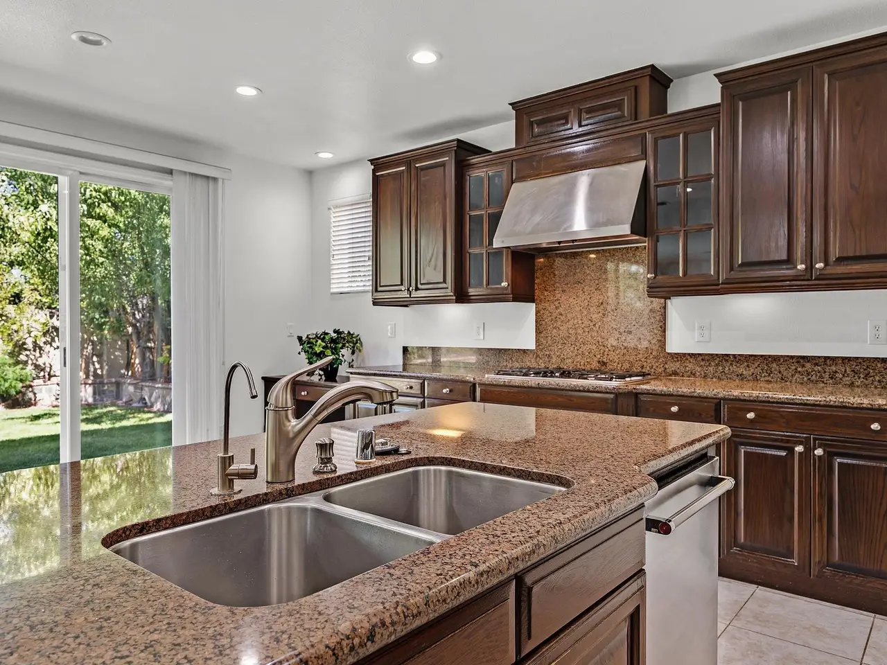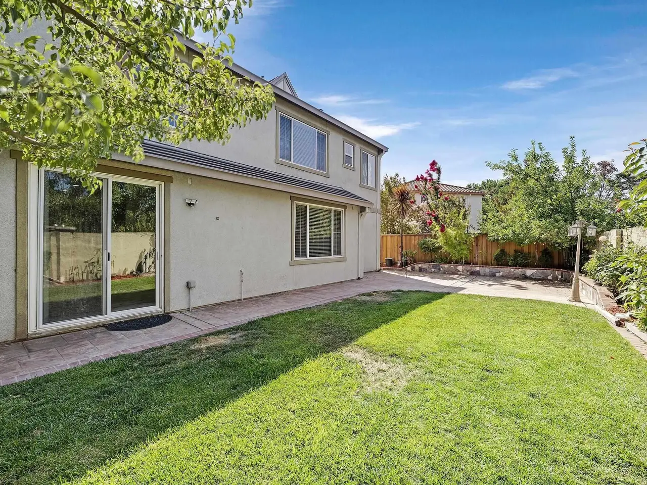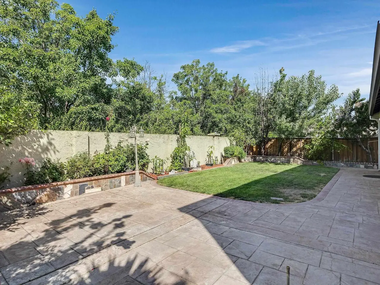 Private backyard oasis with fruit-bearing trees