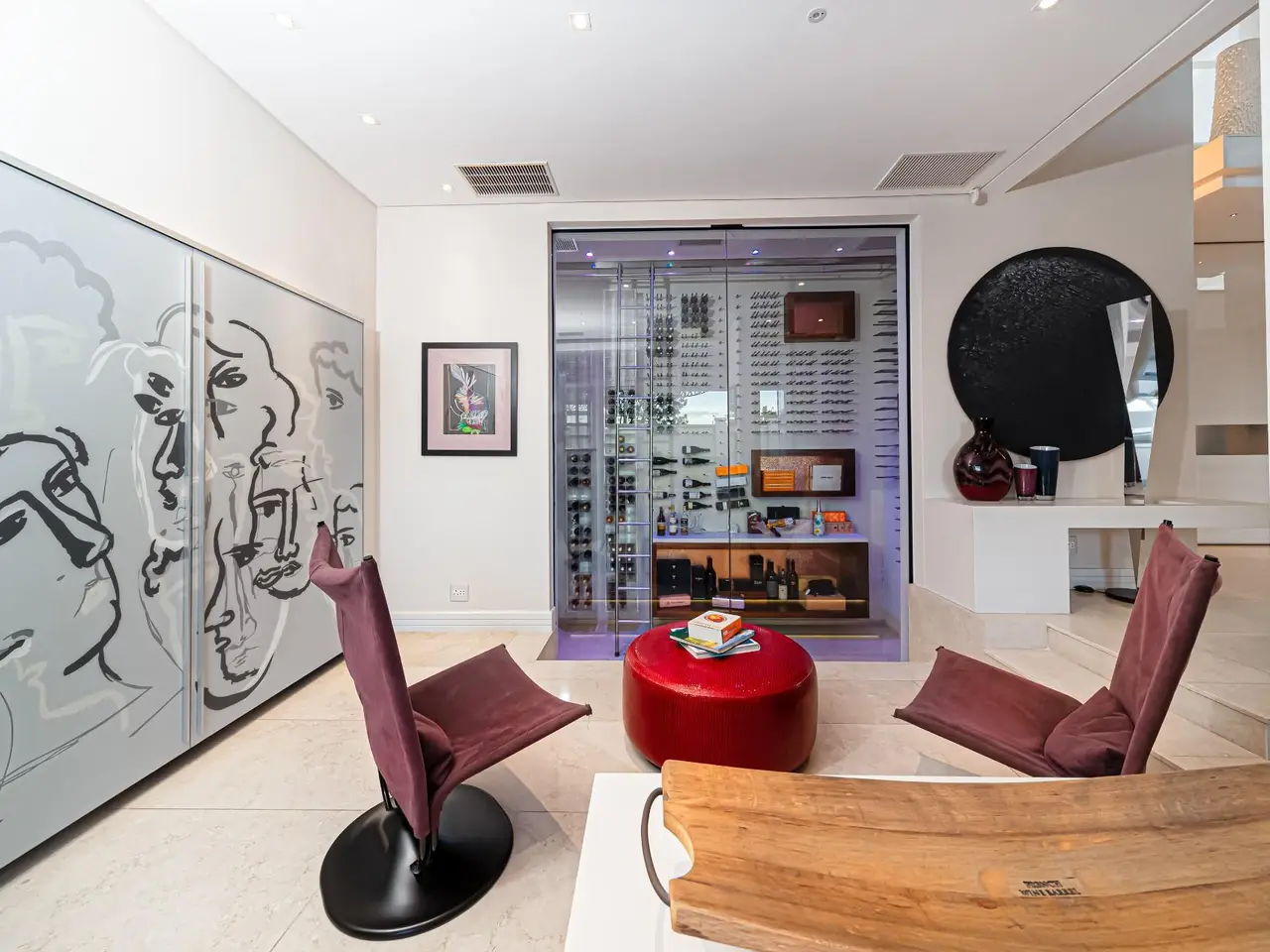 Climate-controlled wine room and integrated bar