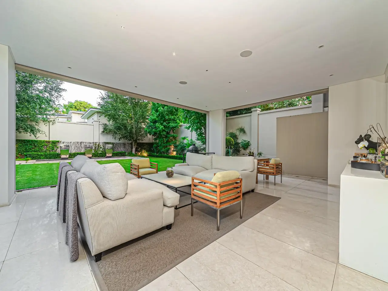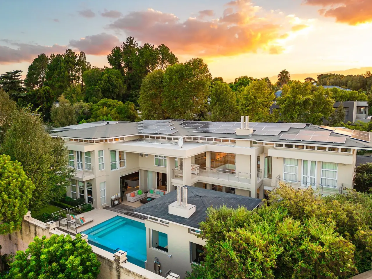 An Unparalleled Sanctuary of Sophistication in Illovo: A Residence Beyond CompareDiscover a realm of unparalleled luxury within this masterfully crafted residence, strategically positioned on the coveted Inanda/Illovo border. This private mini-estate, nestled within a secure, boomed enclave, presents an exceptional opportunity for discerning individuals seeking a lifestyle defined by exclusivity and refinement. A mere stroll from the prestigious Inanda Club, this property embodies a standard of living that transcends the ordinary.Architectural Grandeur and Bespoke Design:Step into a world where every detail reflects meticulous artistry. The heart of the home, an imported Italian Valcucine kitchen, showcases a symphony of glass countertops, a striking glass island, and rich maple cabinetry, seamlessly blending form and function. Culinary excellence is assured with a walk-in refrigeration suite, integrated Miele Professional appliances, and a dedicated chefGÇÖs kitchen featuring a comprehensive array of premium cooking equipment, including gas, induction, and Teppanyaki cooktops. A bespoke coffee station adds an element of daily indulgence.Luxurious Sanctuaries and Personal Retreats:The residence boasts four sumptuous bedrooms, each a haven of tranquility. Imported Olivieri wardrobes, including bespoke his-and-hers dressing rooms in the master suite, exemplify refined elegance. Spa-like bathrooms, adorned with marble, glass, and Caesarstone finishes, feature Bette stainless steel and enamel sanitaryware, creating an oasis of relaxation. A private gym and dedicated pyjama lounge with an upstairs coffee station cater to personal wellness and leisure.Uncompromising Self-Sufficiency and Security:This property stands as a testament to self-sufficiency, operating entirely off-grid for water and power. A private borehole, coupled with a 10,000-liter water storage system, ensures uninterrupted water supply. A state-of-the-art solar system, featuring an off-grid SMA solution, and a backup generator guarantee seamless power continuity. Layered, state-of-the-art security measures, including alarms, beams, electric fences, CCTV, and double entry gates within a boomed area, provide absolute peace of mind.Entertainment and Leisure on a Grand Scale:Entertain with effortless sophistication in the expansive outdoor living spaces. A pavilion braai and dining area, an elegant covered patio lounge, and a rim-flow glass-tiled pool with a dedicated shower create an idyllic setting for gatherings. A climate-controlled wine room and integrated bar, complete with premium refrigeration, elevate the art of hosting.Exceptional Craftsmanship and Expansive Grounds:Spanning over 2000 square meters, this 1050-square-meter residence is a masterpiece of architectural design. Premium materials, including Botticino marble, 8mm temperature-controlled glass, and Caesarstone skirtings, underscore the property's unparalleled quality. Garaging for four vehicles, ample additional parking, and extensive storage solutions cater to the most discerning lifestyle. Luxurious double staff apartments mirror the main residence's opulence.A Legacy of Refined Living:This residence transcends the concept of a mere home; it is a legacy, a statement of unparalleled taste and sophistication. It represents a rare opportunity to acquire a property that embodies the pinnacle of luxury living in one of Johannesburg's most prestigious locales.
