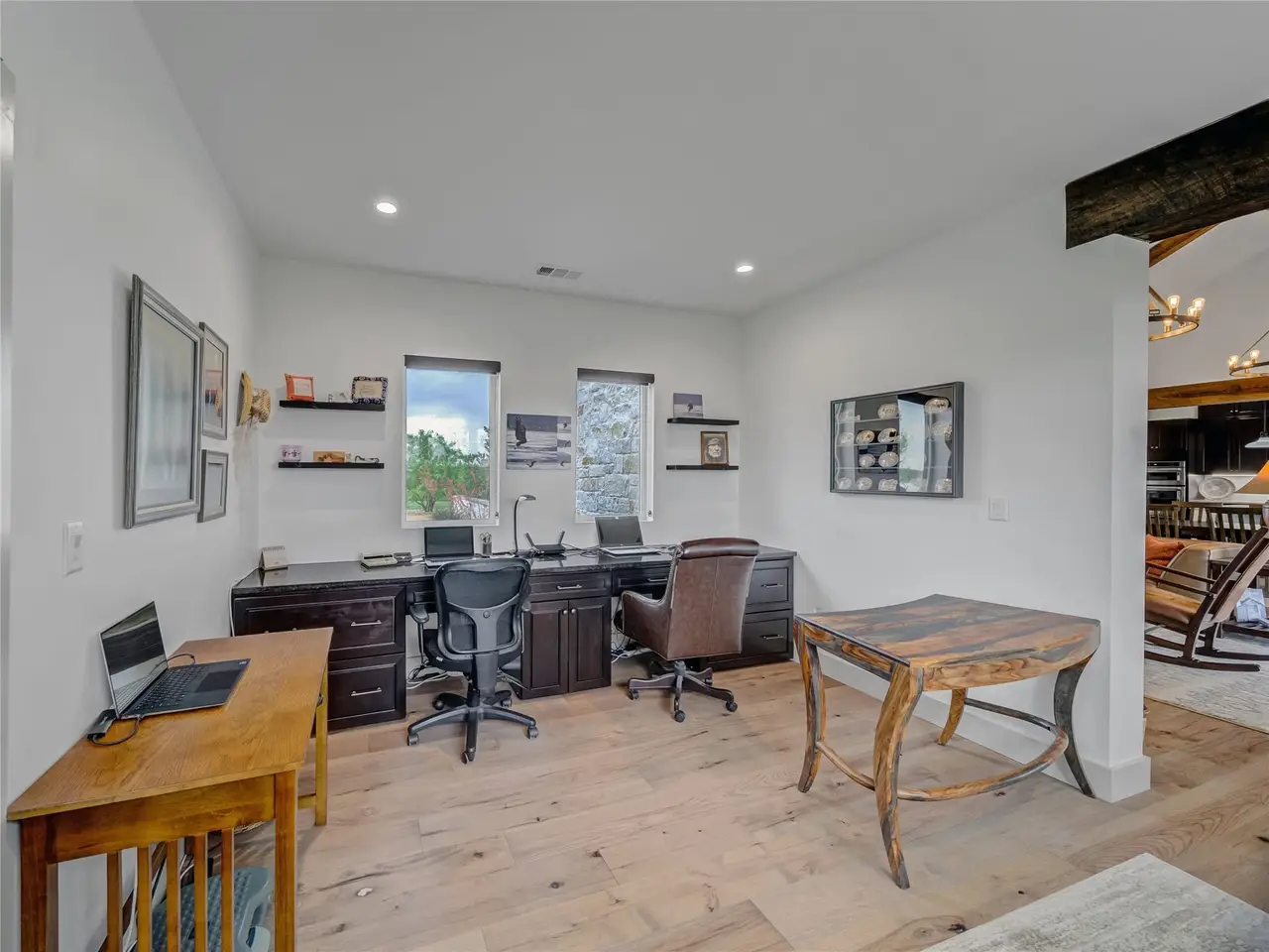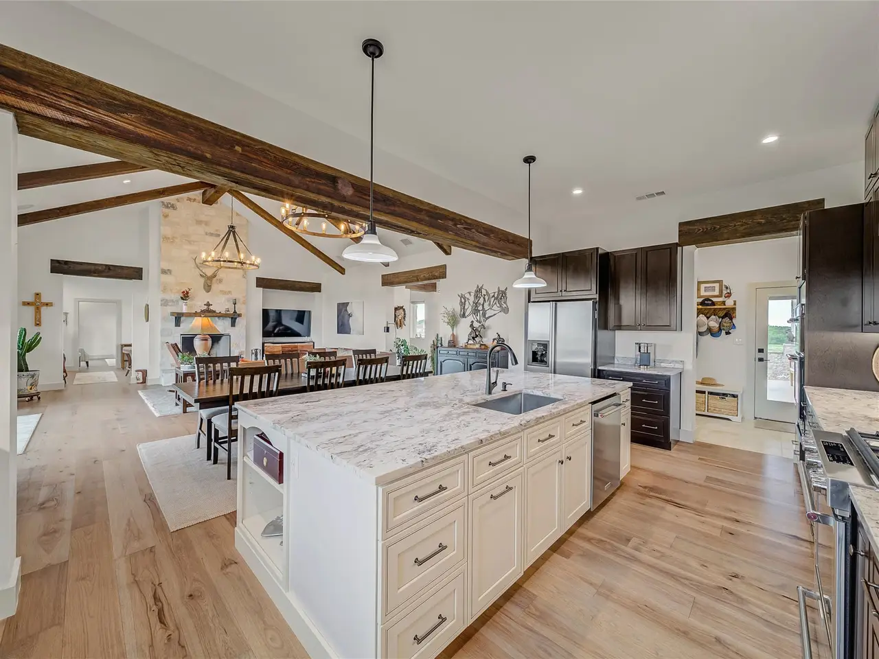 HILLTOP LUXURY WITH PANORAMIC COUNTRYSIDE VIEWS - Perched high above the road on 10 private fenced ag-exempt acres, minutes from Lake Ray Roberts. This gated custom 2,730 sq ft home was thoughtfully designed in 2020 by the owner-builder to capture sweeping panoramic views of the rolling countryside. Set back on a gentle hill, the property offers both seclusion and serenity in a setting reminiscent of the Texas Hill Country's natural beauty. Inside, the home features 3 spacious bedrooms, 2.5 baths, a dedicated study and a three-car oversized garage. The open-concept layout centers around a chef's dream kitchen complete with a large granite island, 5-burner range, dual ovens (gas and electric), a wine fridge, and a separate beverage fridge. With a blend of modern and hill-country style design, every detail of the home reflects style and functionality. Native, drought-tolerant landscaping surrounds the property, while outdoor living spaces, like the fire pit, invite you to relax and take in the sunsets. For the craftsman or hobbyist, the estate includes: A large shop with an epoxied floor - perfect for auto projects, woodworking, or your next creative pursuit. Additional space with 12 overhead doors for equipment and tractor storage. Space for an RV up to 35 feet. Built with energy efficiency in mind, the home features high-performance appliances, 6-inch walls, engineered hardwood floors, spray foam insulation and other energy-saving systems to keep utility costs low. Don't miss this rare opportunity to own a truly special hilltop retreat that blends luxury, practicality and endless views.