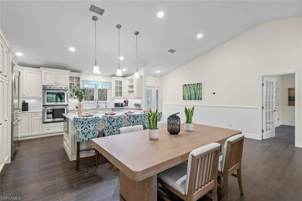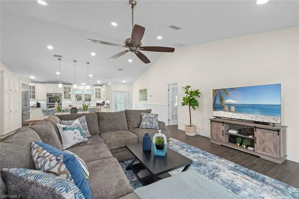 Welcome to your slice of paradise on Sanibel Island! This stunning 3-bedroom, 2-bathroom home is luxury meets casual island living. Step inside to discover a beautifully appointed kitchen featuring top-of-the-line Thermador appliances to include, double wall ovens, built-in refrigerator, microwave and dishwasher. This upscale kitchen with center island is a chef's dream. The open floor plan and vaulted ceilings create a spacious living area ideal for entertaining and relaxing with family. The great room opens to the back deck and overlooks the beautiful screen enclosed pool area - complete with no-see-um screens. Large primary suite features French doors that also open to the deck and pool area- and the spa-like ensuite complete with marble double vanity, soaking tub and custom glass enclosed shower rivals any luxury resort. Recent updates include, Pool, paver pool deck and driveway 2017, HVAC 2020 (10-year warranty), Standing Seam Metal Roof 2022, Plumbing 2023, Pool Cage Re-Screen 2024, Spray foam insulation in garage 2025. Home features Pella impact windows and doors. Just a short stroll to the beach, you'll enjoy world class shelling and stunning sunsets and short bike ride to Captiva Village, restaurants and shops. Situated on Sanibel's west end, you will experience island living at its very best, and enjoy a slower pace "island time" in the truly special neighborhood community of Santiva.