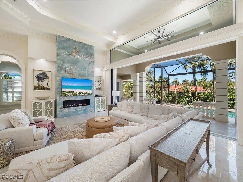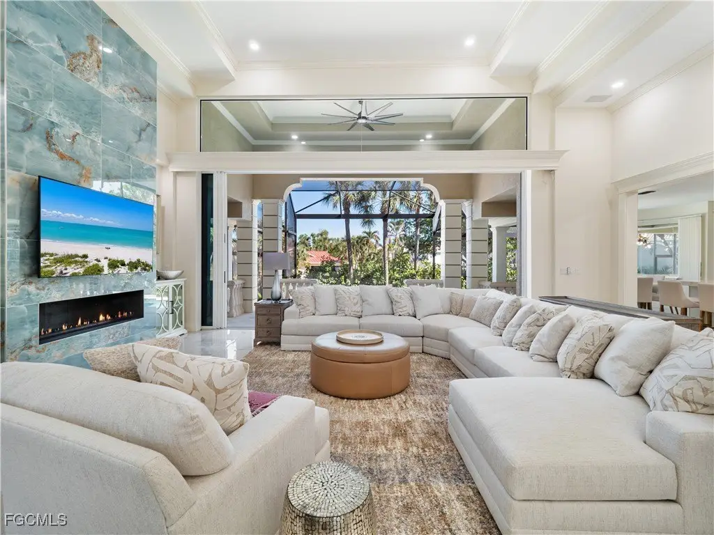 Experience coastal luxury in this elevated ground-level 4-bedroom, 4-bath pool home, designed for both comfort and style. The home features a dining room, den, eat-in kitchen with a breakfast bar, laundry room, and an oversized two-car garage and a NEW ROOF was installed in 2024. Step outside to a stunning outdoor pool area perfect for soaking up the sun. Inside, every detail has been updated with top-of-the-line finishes, including new kitchen cabinets, exquisite Taj Mahal quartz countertops, high-end appliances, and a whole-house music system. Enjoy porcelain tile flooring,push-button living room screens, and a captivating fireplace feature. Additional upgrades include new chandeliers,push-button fans, impact windows and doors, and fresh landscaping with lush plants and palm trees. Located in the coveted Beachview Estates, you'll have exclusive access to one of only two private beach entry points, whether you choose to walk or park your car nearby. Don't miss this exceptional home!