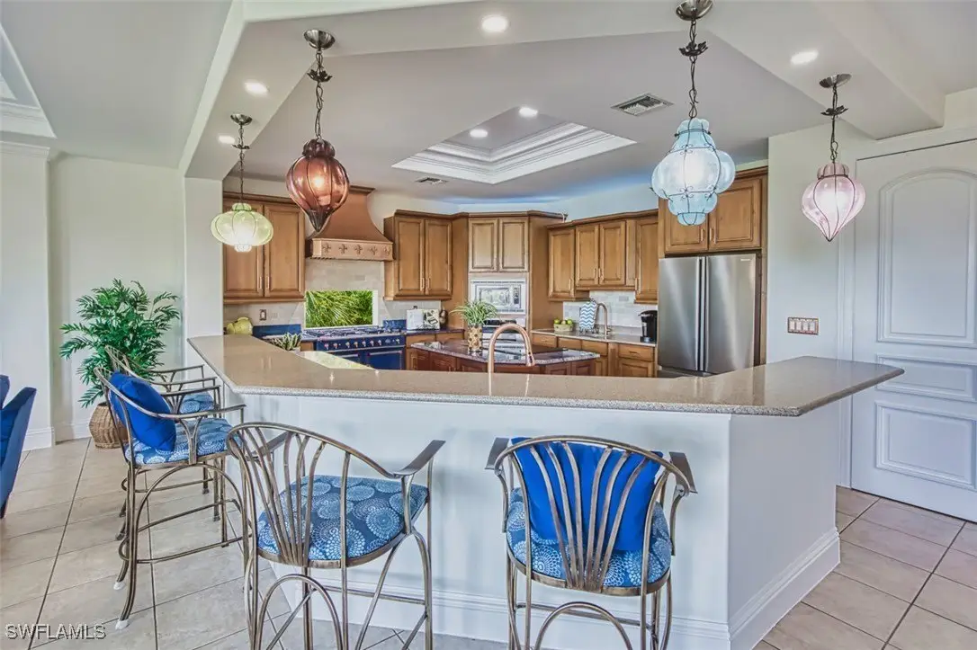 Sanibel's Ultimate Luxury Retreat Welcome to your dream island escape on prestigious Eagle Run Drive, where luxury, location, and lifestyle meet. This extraordinary residence offers prime convenience with seamless on-and-off island access, walkable proximity to Sanibel's beloved restaurants, and just a short stroll to your private deeded beach access. Set amidst lush tropical landscaping and overlooking the peaceful Sanibel River and verdant golf course, this home exudes serenity and sophistication. Designed and built by the esteemed Wolter Group, every detail speaks of quality, from the soaring volume tray ceilings to the refined custom finishes throughout. The heart of the home is the gourmet chef's kitchen, featuring a Wolf induction cooktop with integrated downdraft, a six-burner French La Cornue gas stove, hand-crafted copper hood, rich wood cabinetry, and gleaming granite countertops. This space is as functional as it is breathtaking. The elegant floorplan offers three spacious en-suite bedrooms, a formal living and dining room, and a private office with separate entrance-ideal for working from home. The primary suite is a private sanctuary with expansive river views and direct access to the oversized upper-level terrace, complete with an electric grill-perfect for stylish entertaining or peaceful morning coffee. Step outside to your own private resort: a resort-style pool and spa surrounded by a large screened lanai, offering the ultimate in outdoor living. Additional features include a four-car garage with newly finished epoxy floors and ample storage throughout. Whether savoring sunset skies, entertaining guests, or taking a peaceful walk to dinner, this home offers the very best of Sanibel living. Schedule your private tour today and experience timeless island elegance.