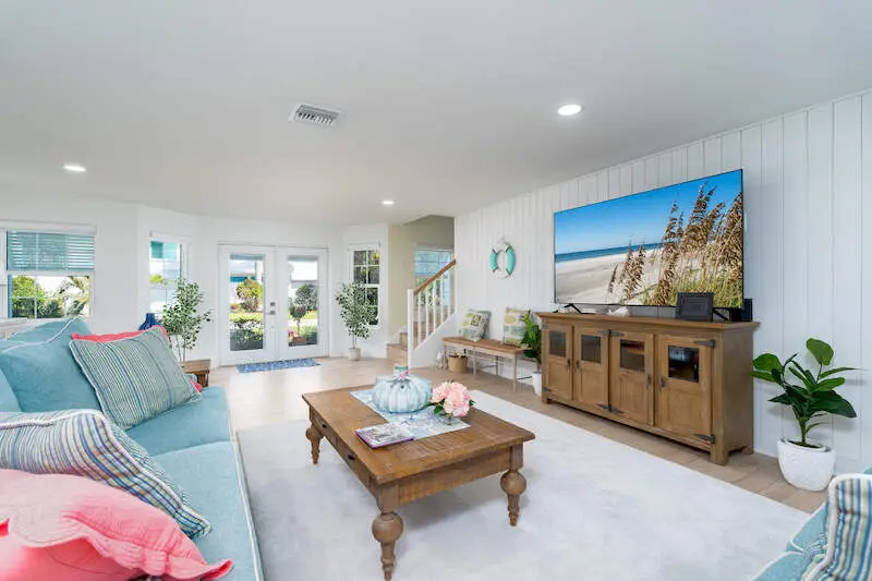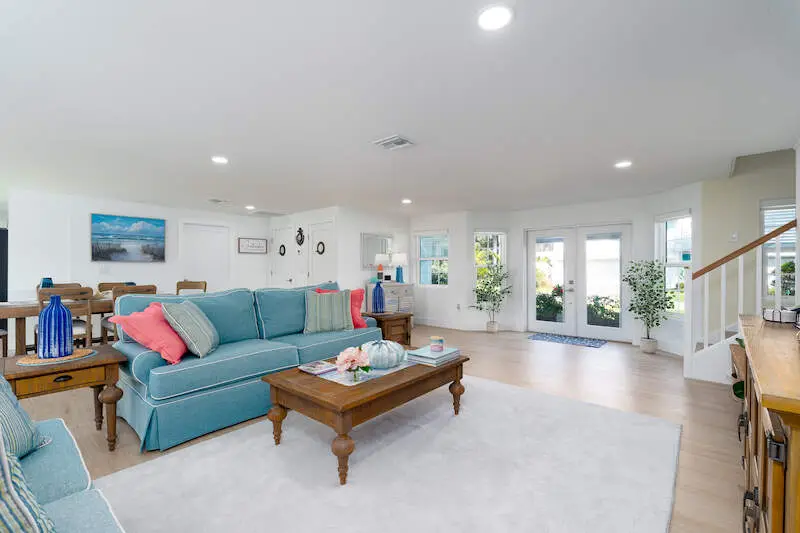 This completely renovated, fully furnished coastal contemporary retreat with charming Key West flair is ready for you to move in and start enjoying the Sanibel lifestyle immediately. Whether you prefer a leisurely stroll to the beach or setting out by boat, this home places paradise at your doorstep, situated on a picturesque canal with deep water Gulf access. The exquisite interior design mirrors the beauty of Sanibel Island's natural surroundings, featuring a beach-inspired color palette with floors, furnishings, and finishes that evoke the sandy shores and azure waters of the Gulf of Mexico. Every detail has been thoughtfully curated, from the brand-new metal roof to the luxurious high-end finishes throughout. The open-concept floor plan seamlessly connects the living, dining, and kitchen areas, all offering breathtaking waterfront views. The fully remodeled kitchen is a chef's dream, equipped with top-of-the-line appliances and elegant, functional finishes. This 3-bedroom, 2.5-bath home offers a spacious layout, complete with dual master suites-one on each floor-providing flexibility and privacy. Both suites feature tranquil water views and spa-like bathrooms with custom design elements. Outdoor living is equally spectacular, with a brand-new custom swimming pool and a private dock featuring a boat lift, making it a boater's paradise. Every detail of the home, from shower heads and faucets to mechanical systems, has been meticulously updated within the past few months, ensuring a worry-free experience. Located in a prime spot, this home offers quick access to the Gulf, pristine beaches, and all the natural beauty and charm Sanibel Island offers. Don't miss this rare opportunity to own a magnificent waterfront property that combines contemporary luxury with timeless coastal appeal.