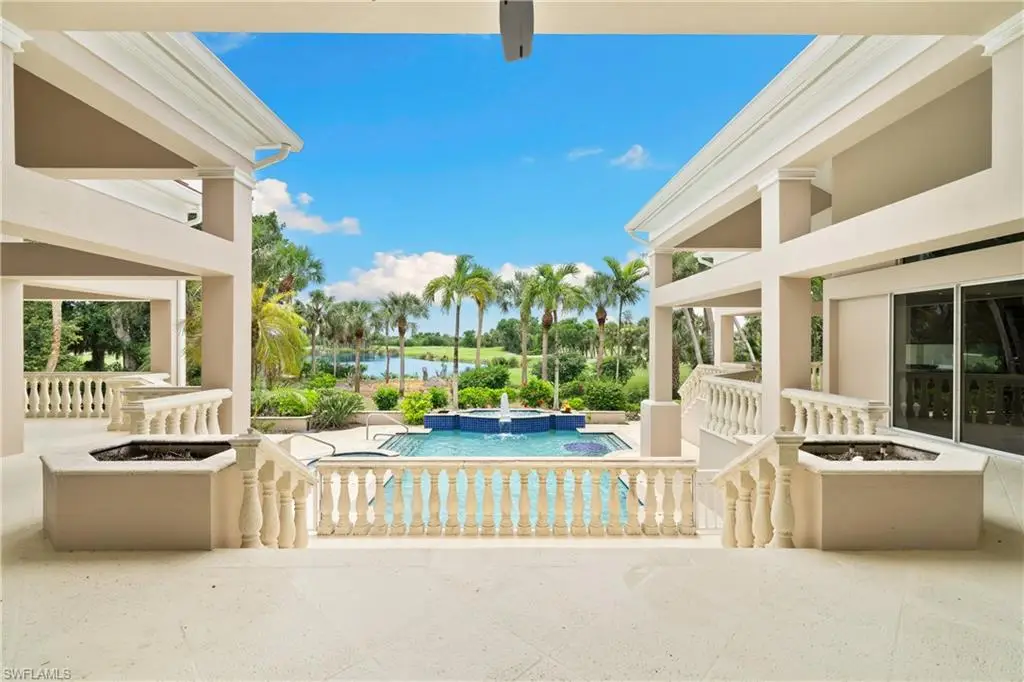 Welcome to The Sanctuary, Sanibel's premier golf and country club address. This estate home is sprawled across a premium double lot with sweeping Southern lake views over holes #2 & #3, offering a combination of picturesque scenery and privacy which is rarely found on the island. Arrive to a grand porte-cochere entrance and step inside to soaring ceilings, elegant formal spaces, and an open flow that's perfect for entertaining or relaxed family living. The main level features a spacious primary suite with a private balcony, luxurious bath, walk in closet, and tranquil golf course views. Two additional main level guest suites offer comfort and flexibility, while three upstairs en suite bedrooms ensure privacy for everyone. Host gatherings indoors or out; multiple decks, a large pool and spa, a cascading fountain, in pool dining table, summer kitchen, and lush landscaping create your own resort style retreat. French doors open to multiple courtyard gardens, seamlessly blending indoor and outdoor living while providing intimate spaces for morning coffee, private gatherings, or quiet relaxation. Priced below replacement and assessed value, this is a rare opportunity to own one of The Sanctuary's most significant homes in a location that cannot be duplicated.