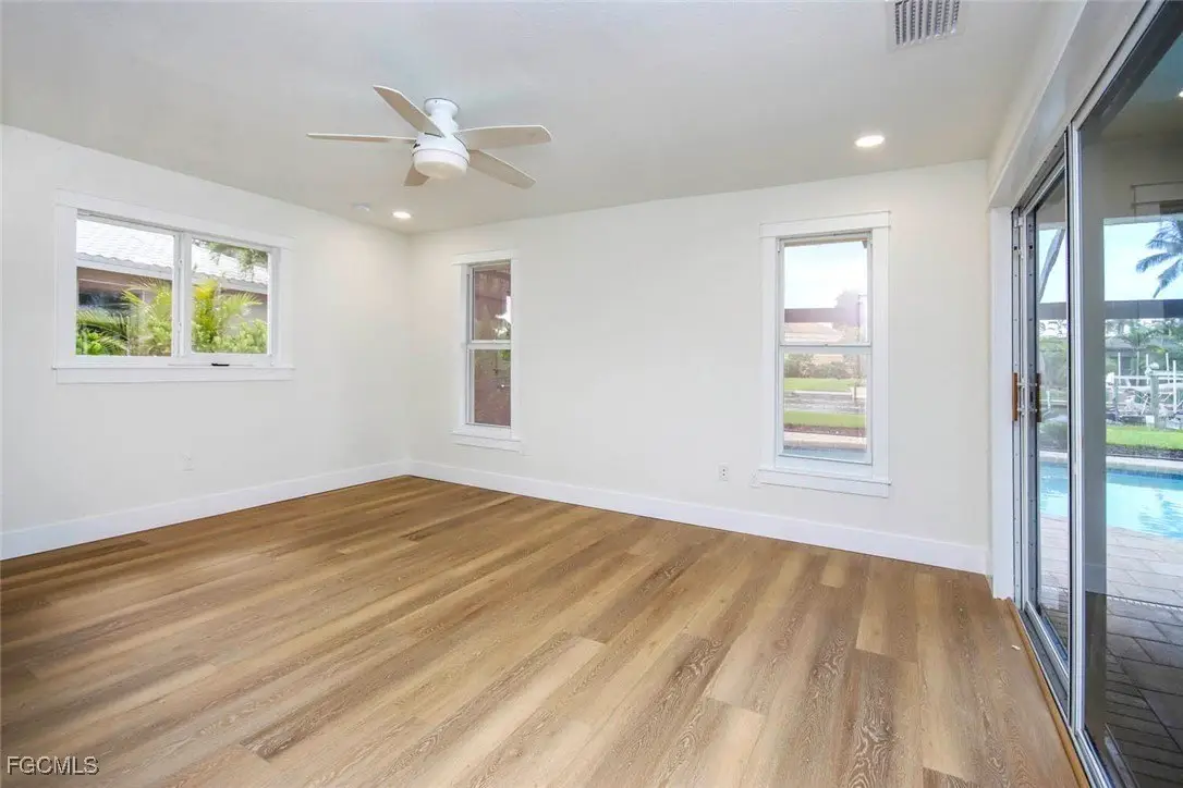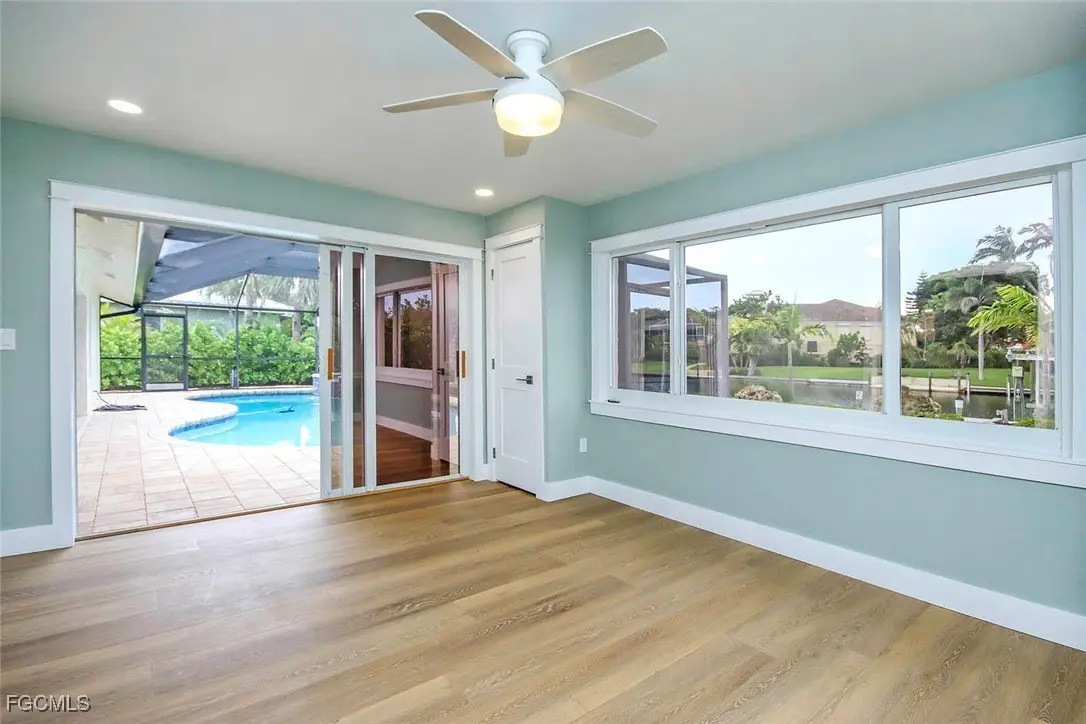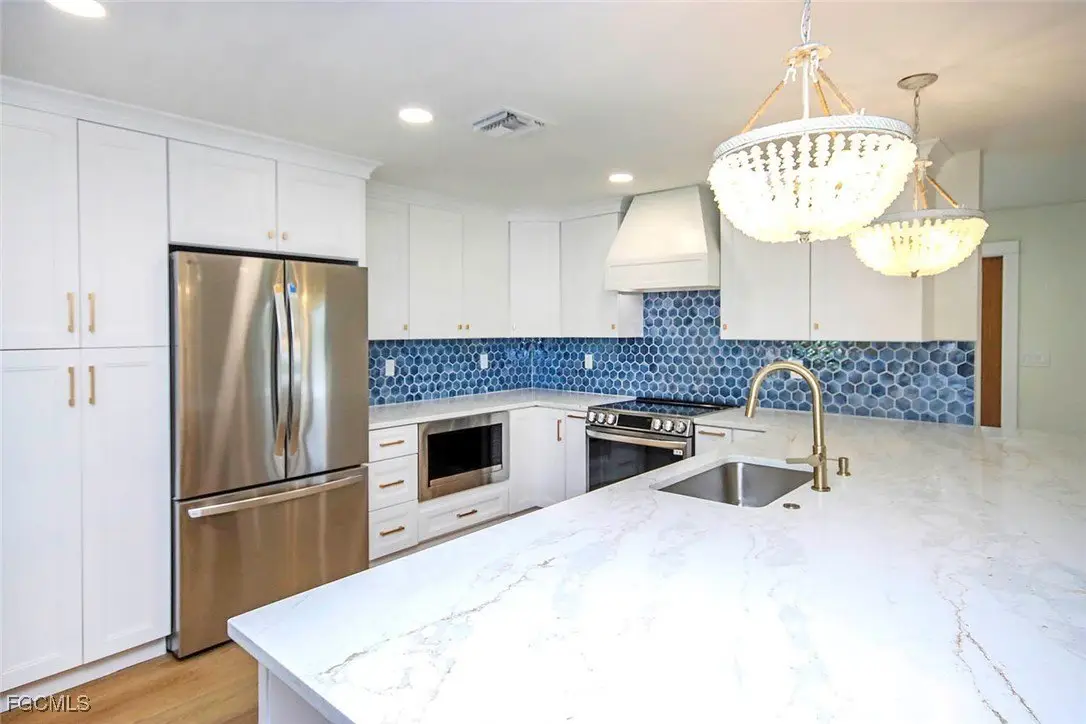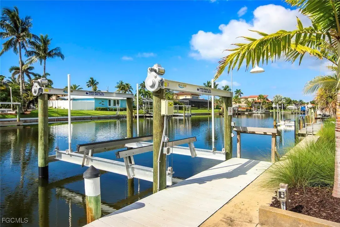 The ultimate Sanibel retreat is ready for you! Located in the sought after neighborhood of Shell Harbor, this luxurious and spacious, easy living home is totally remodeled with a new stone coated, steel roof in 2021. This 3 bedroom, 2 and 1/2 bath, home features all impact windows and doors, new kitchen and baths with quartz counters and beautiful tile showers throughout. Versatile extra living space off the kitchen/living room could be a den, office, exercise room with extra space for the grandchildren. Easy maintenance, LVP flooring throughout and a laundry room with two, full size stack washers and dryers. Designed for entertaining, the wall of living room sliders provides a stunning view of the pool, spa, professionally landscaped lawn and waterway. New dock with 14,000# lift, new landscaping and irrigation. Kings Crown Dr. is located on the sought after east end of Sanibel Island, just a quick walk or bike ride to the beach along with deeded beach access with parking at the end of Lindgren. Easy access on and off the island and a close proximity to restaurants, shopping, shelling and water sports. This is the perfect home to enjoy all that Sanibel has to offer!