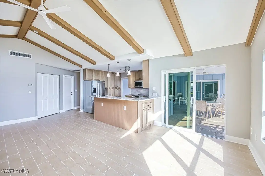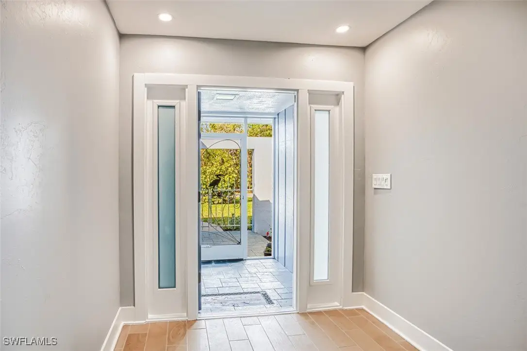 Welcome to your dream waterfront retreat on Sanibel Island! This stunning 3-bedroom, 2-bathroom ground-level home has been completely renovated, offering modern coastal elegance with a prime location. Situated on an elevated lot, this home stands higher than most ground-level properties, providing extra peace of mind while maintaining easy, step-free access. As you arrive, a charming white fence welcomes you, leading to a lush flower bed that frames the entryway, setting the tone for the beauty that awaits inside. The professionally landscaped yard enhances the home's curb appeal, creating a serene and inviting atmosphere. Inside, the spacious layout is perfect for both relaxation and entertaining. The living room, dining room, and TV room/den are thoughtfully separated from the bedroom wing, offering privacy and a great flow for hosting guests. A wood-burning fireplace adds warmth and charm, creating a cozy ambiance on cooler island nights. The kitchen features a breakfast bar and a pass-through window to the outdoor bar, making it easy to serve drinks and meals while enjoying the outdoor space. The primary suite is a private retreat, featuring his-and-hers closets for ample storage. The additional bedrooms are well-appointed, offering comfortable accommodations for family or guests. Step outside to a true backyard oasis. The enclosed lanai provides both shaded areas and sun-drenched spaces, making it perfect for year-round enjoyment. Beyond the lanai, a large pool is surrounded by beautiful slate tile, adding a luxurious touch to this serene setting. Enjoy breathtaking views of the manatee- and dolphin-filled canal as you relax by the water. Boating and wildlife lovers will appreciate the direct water access, while beach enthusiasts are just minutes from Sanibel's world-famous shelling shores. Located in a sought-after area, this home offers easy on-and-off access to the Sanibel Causeway, making island living convenient while keeping you close to shopping, dining, and mainland amenities. Whether you're seeking a full-time residence, vacation getaway, or investment opportunity, this canal-front gem has it all! Don't miss the chance to own a piece of paradise.
