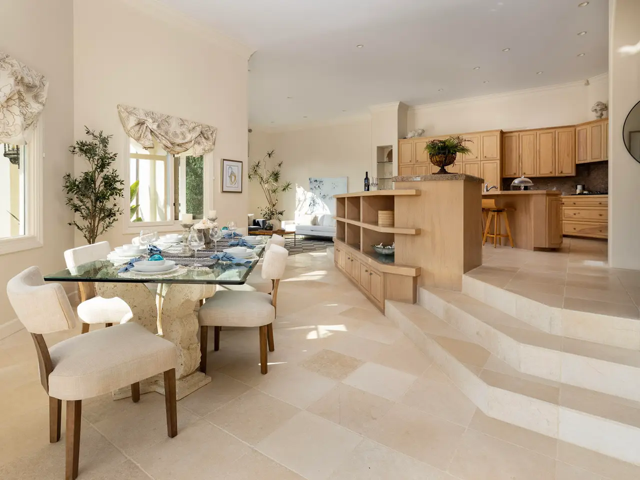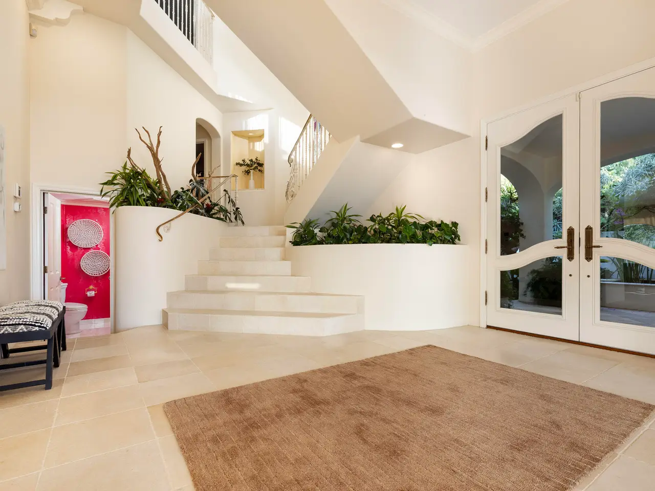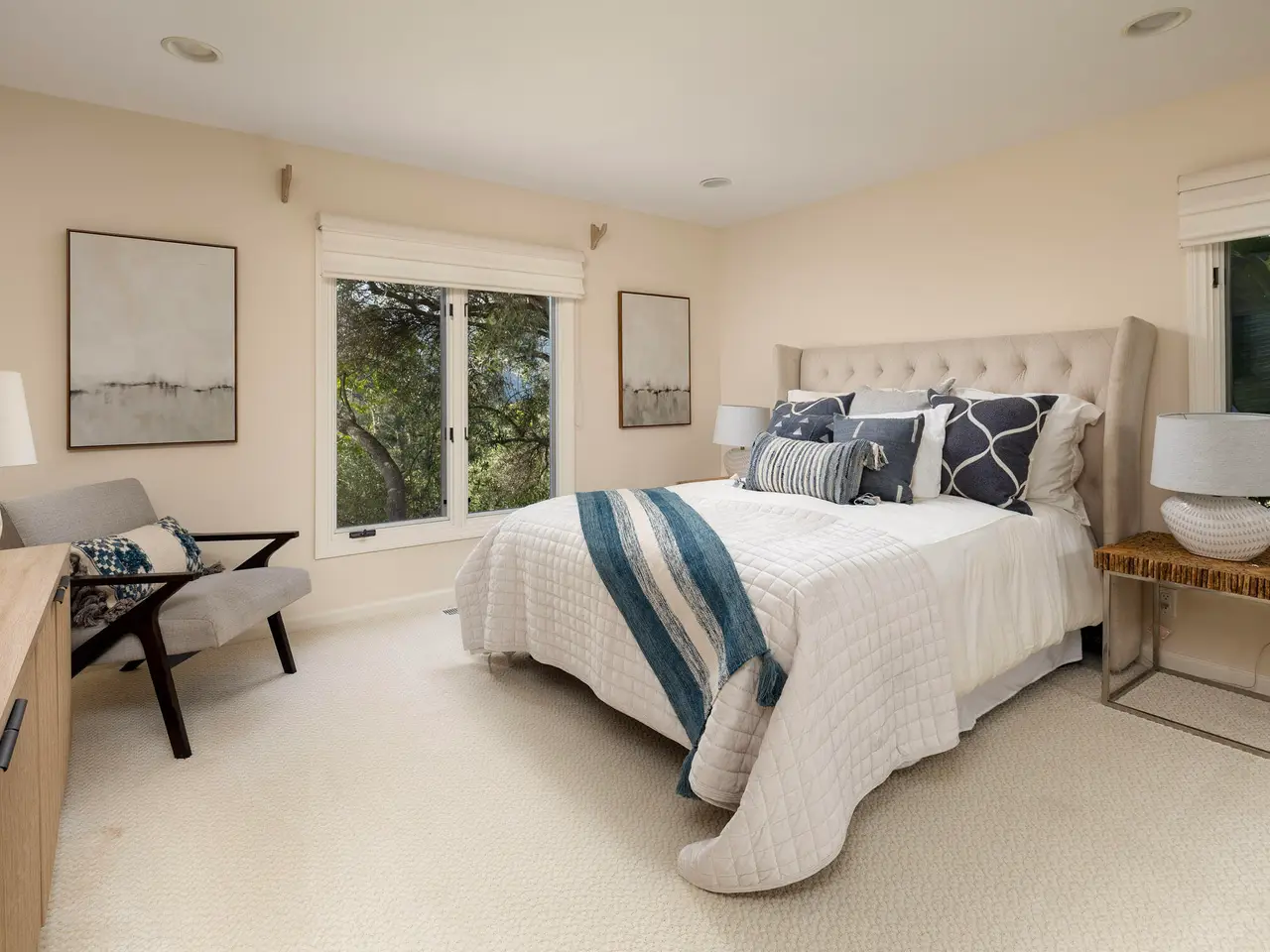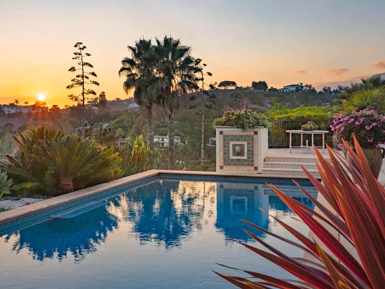 Behind private gates on Calle Elegante, a world of serenity and beauty unfolds on 1.7 lush acres. The moment you step inside, walls of glass reveal sweeping views of the ocean, islands, harbor, and mountains--reminders that this is no ordinary home, but a sanctuary elevated by nature itself. The story begins in the heart of the house, where soaring ceilings, stone floors, and a fireplace anchor the formal living room. Light pours in, filling the space with warmth, while the dining and family rooms blend seamlessly with the kitchen, creating an open, effortless flow for gatherings both large and small. Upstairs, the primary suite continues the story of retreat and renewal. With its own sitting room, private fireplace, and adjoining office, it's a place to wake slowly to the sunrise or wind down as the evening light paints the horizon. Two additional en-suite bedrooms carry the story further: one with doors that open directly to a secret garden hideaway, and the other framing the drama of the mountains. Step outside, and the home transforms into a private resort carved into the hillside. Inspired by the love of the Bacara Resort, the current owner designed the pool terrace to rival the luxury of a five-star retreat without ever leaving home. A sparkling pool shimmers in the sunlight, anchored by a covered patio with outdoor fireplace, a fully equipped outdoor kitchen, and multiple lounge areas. Here, mornings begin with quiet coffee overlooking the coastline, and evenings end with golden sunsets shared among friends. For visitors, a private guest suite above the garage offers decks, views, and independence a retreat within a retreat. Surrounding it all are lovely gardens, a koi pond, and mature trees that have grown into characters of their own, wrapping the home in shade, color, and year-round beauty.This is a home designed not just to live in, but to live well. Located in the sought-after Cold Spring School District, it blends elegance with comfort, privacy with welcome, and luxury with nature an everyday escape on Calle Elegante.