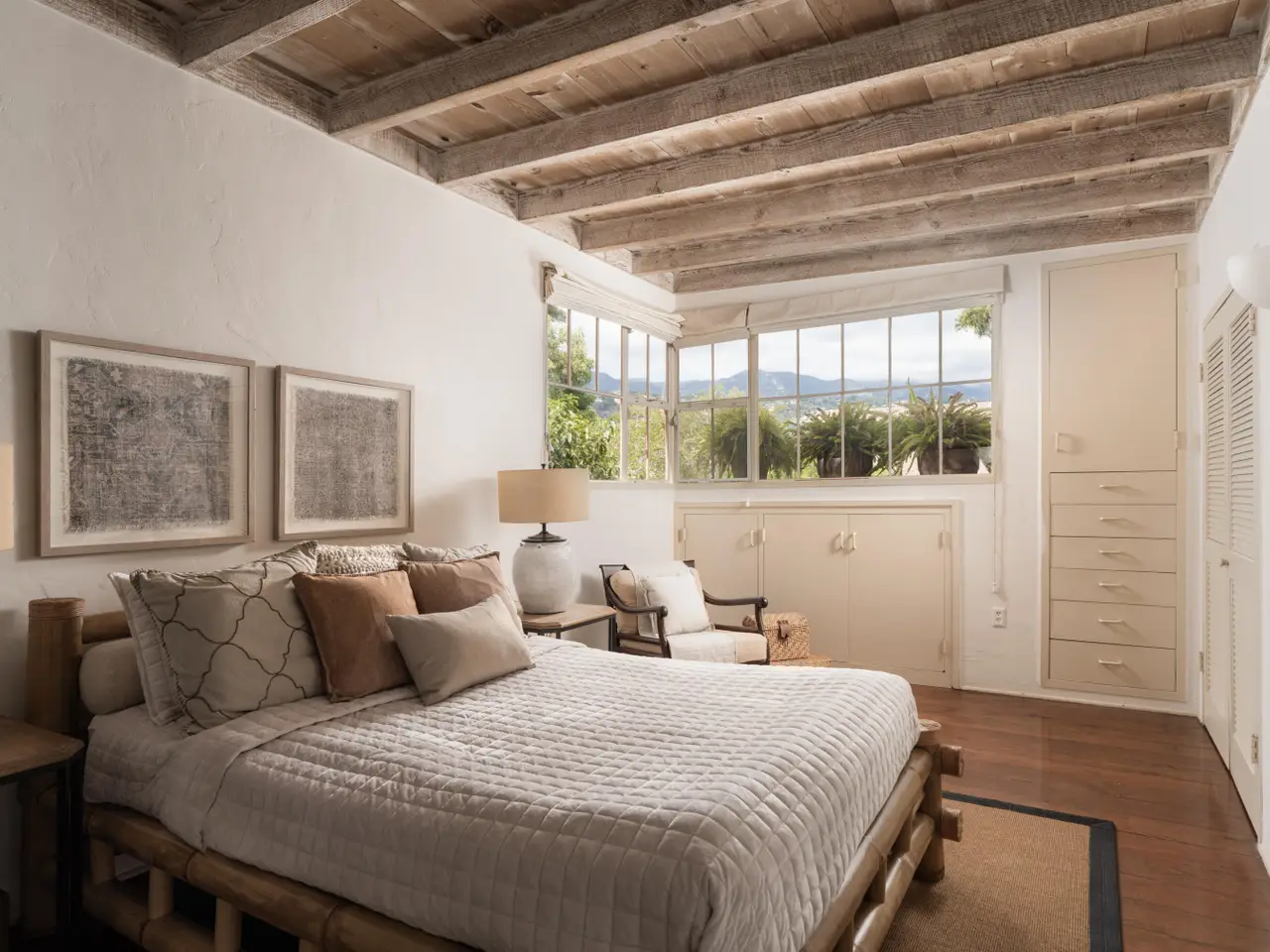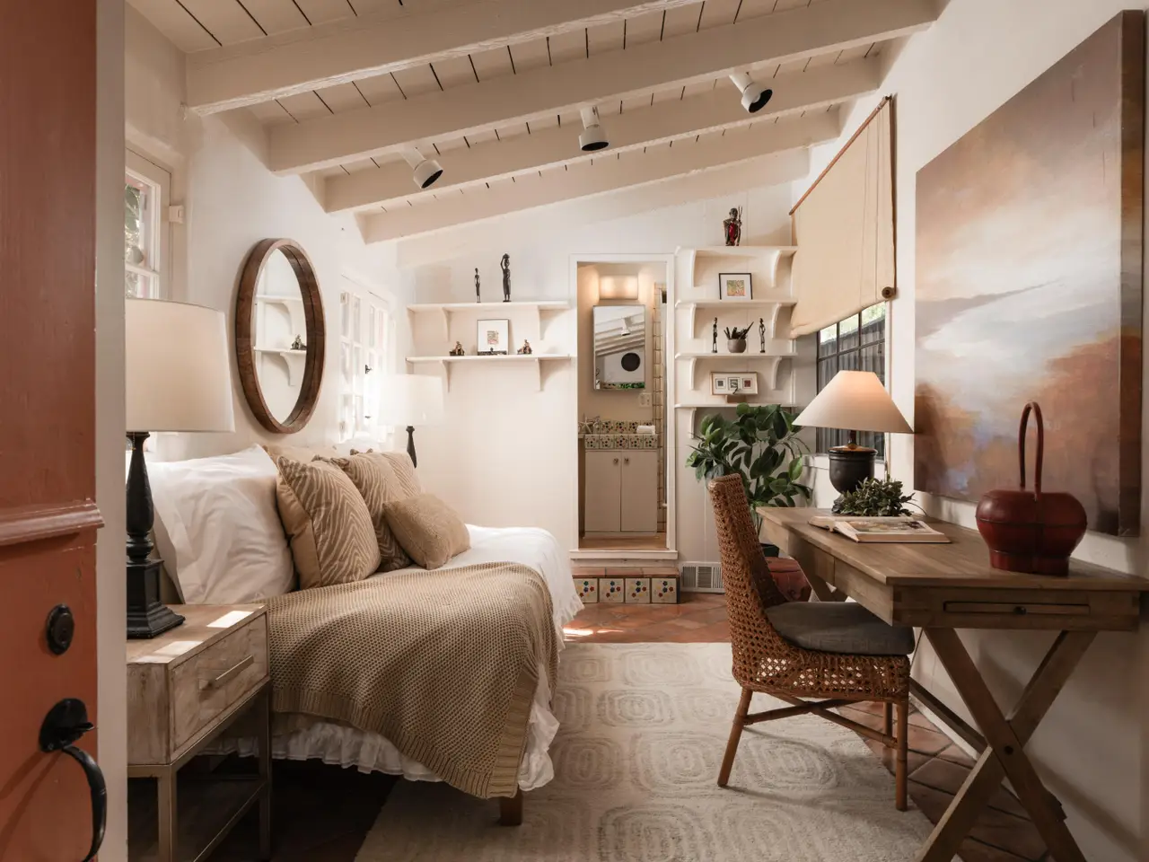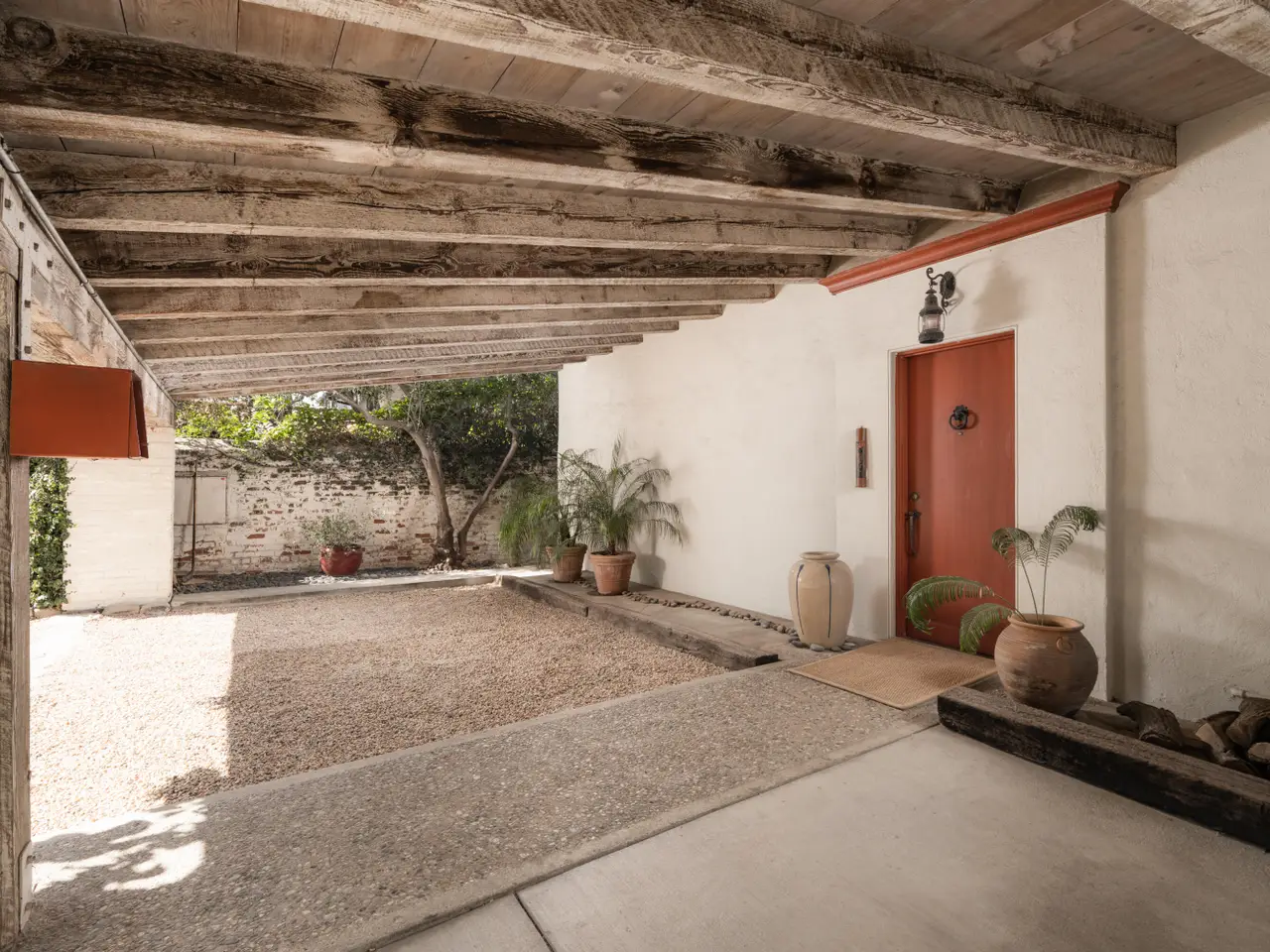 Tucked inside the storied El Caserio enclave, Casita ''D'' is a designated City Landmark with pedigree and soul. Originally built in 1930 as a residence for musician Loring Andrews, the home was thoughtfully reimagined in the early 1950s by noted architect Lutah Maria Riggs, FAIA, when the Hollisters combined and remodeled several studios in the area into townhomes. The result is a timeless Spanish Revival that blends historic character with easy, modern livability. Clean, whitewashed interiors showcase original exposed beams and handcrafted details. The living spaces flow to a secluded, sun-filled brick courtyard, wind-protected, and ringed with low-maintenance plantings created when Riggs linked the once-separate structures with a new primary suite. French doors spill from the bedroom to the patio, inviting morning coffee and golden-hour dinners.A chef's kitchen expanded six feet during the Riggs remodel centers on an island with generous circulation and natural light from new windows. A sculptural spiral stair, crafted of thick fir, rises with a continuous handrail that leads to an additional loft bedroom above one of many bespoke moments that give the home its quietly artful presence. Outside, mission tile roofs and carefully matched plaster honor the original fabric of the home. Set back from the street, the residence enjoys a sheltered entry and guest parking (formerly four bays; one later converted to a laundry room). A separate studio with a private bath offers flexible use as a guest suite, office, or staff room. El Caserio remained an artists' enclave through the 1960s, and that creative spirit still hums here steps from downtown theaters, dining, and the best of Santa Barbara's historic core.