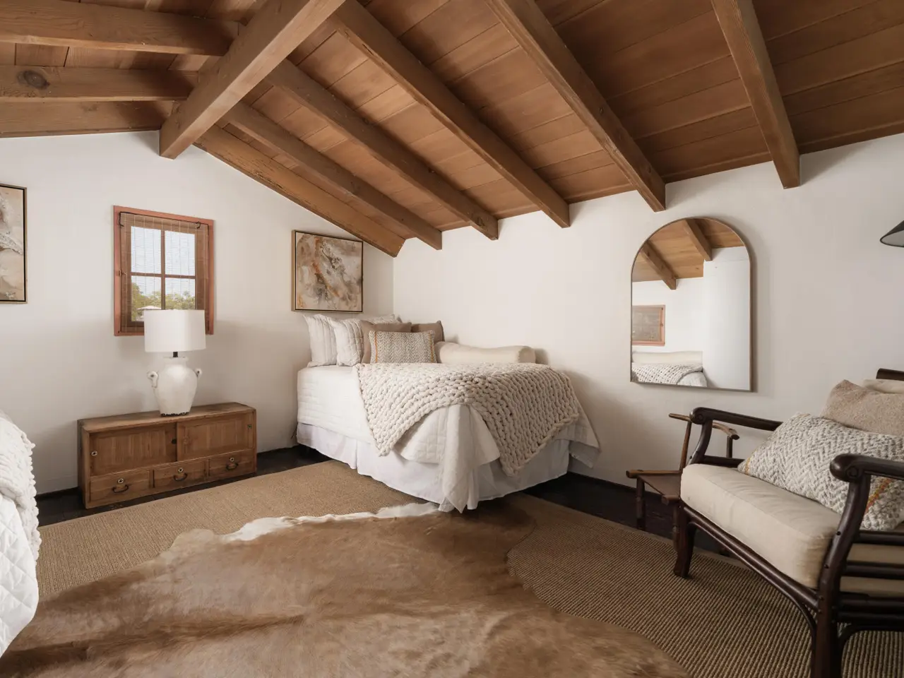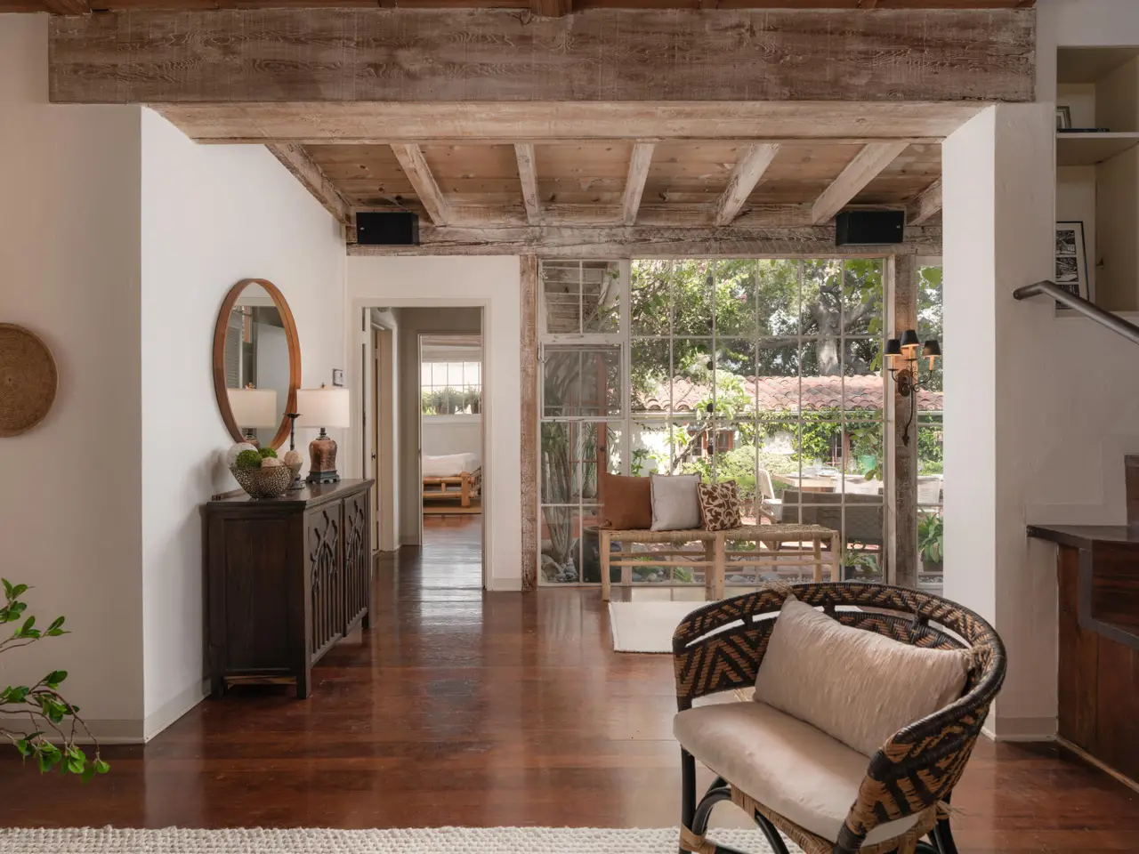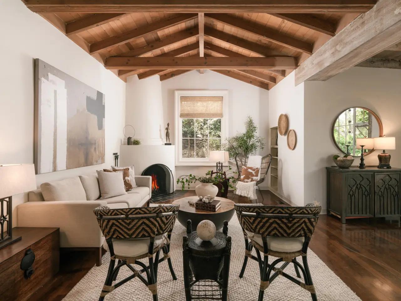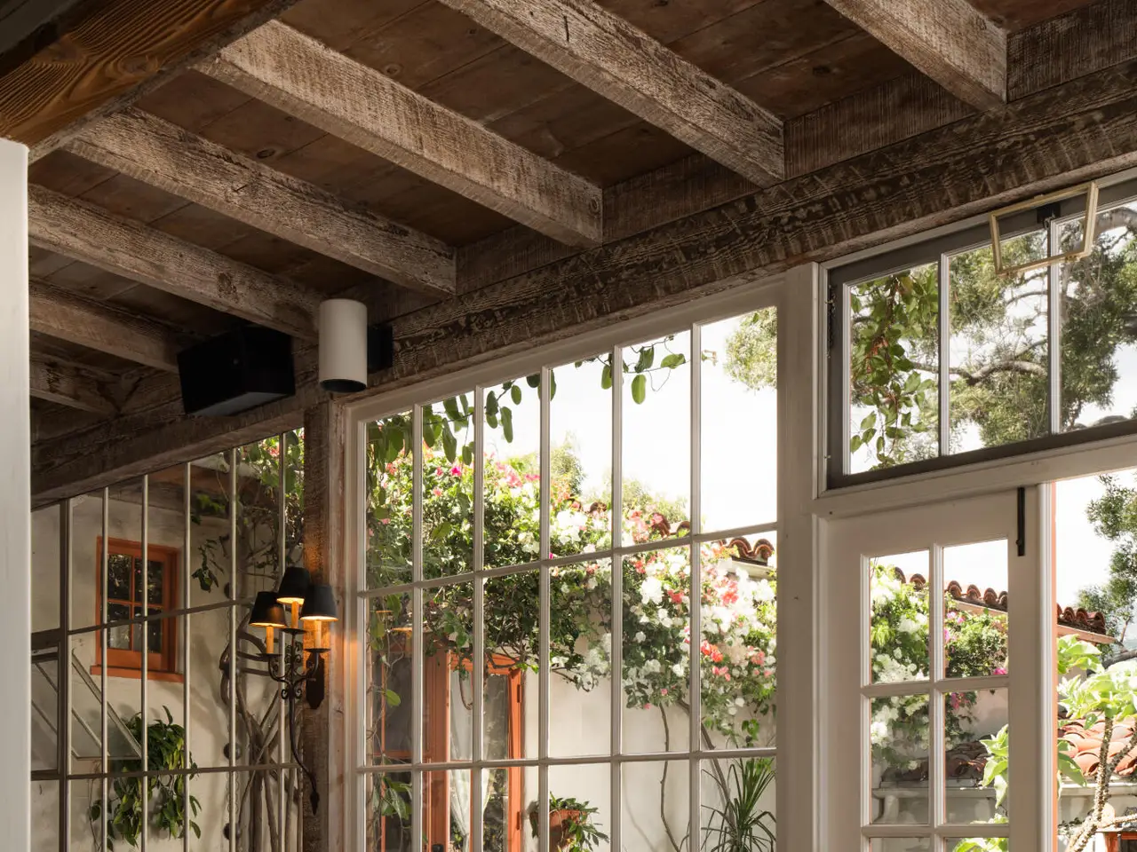 Tucked inside the storied El Caserio enclave, Casita ''D'' is a designated City Landmark with pedigree and soul. Originally built in 1930 as a residence for musician Loring Andrews, the home was thoughtfully reimagined in the early 1950s by noted architect Lutah Maria Riggs, FAIA, when the Hollisters combined and remodeled several studios in the area into townhomes. The result is a timeless Spanish Revival that blends historic character with easy, modern livability. Clean, whitewashed interiors showcase original exposed beams and handcrafted details. The living spaces flow to a secluded, sun-filled brick courtyard, wind-protected, and ringed with low-maintenance plantings created when Riggs linked the once-separate structures with a new primary suite. French doors spill from the bedroom to the patio, inviting morning coffee and golden-hour dinners.A chef's kitchen expanded six feet during the Riggs remodel centers on an island with generous circulation and natural light from new windows. A sculptural spiral stair, crafted of thick fir, rises with a continuous handrail that leads to an additional loft bedroom above one of many bespoke moments that give the home its quietly artful presence. Outside, mission tile roofs and carefully matched plaster honor the original fabric of the home. Set back from the street, the residence enjoys a sheltered entry and guest parking (formerly four bays; one later converted to a laundry room). A separate studio with a private bath offers flexible use as a guest suite, office, or staff room. El Caserio remained an artists' enclave through the 1960s, and that creative spirit still hums here steps from downtown theaters, dining, and the best of Santa Barbara's historic core.