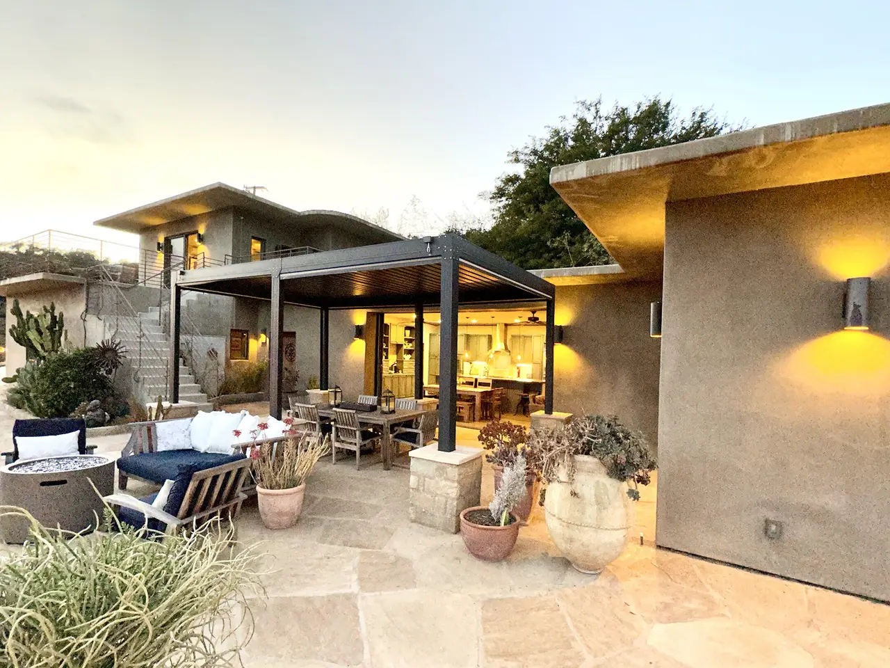 Ocean, island & mountain views! Located in a serene rural neighborhood, this 11 year new contemporary home, with owned solar system, & on over 5 acs., offers privacy & tranquility & yet is only minutes to shops & dining. Flooded with natural light & featuring tall ceilings, the spacious great room, with custom full pocket doors, provides a seamless flow to the oversized south-facing flagstone patio with an adjustable shade pergola. The gourmet kitchen features unique limestone countertops, custom tile work & cabinetry, high-end appliances & a breakfast bar. A quiet ocean view ground-floor primary suite, with private patio & windows on 3 sides, provides a calm space to relax. The primary bathroom features a spa tub & a spacious slate-tiled shower. One guest room is... ... off the entry & the third bedroom, (or office), is on the second floor & has its own separate entrance, ensuite bathroom & spacious terrace. Unwind in nature, watch soaring birds over green trees & soak in magical sunrises & sunsets from this peaceful retreat!