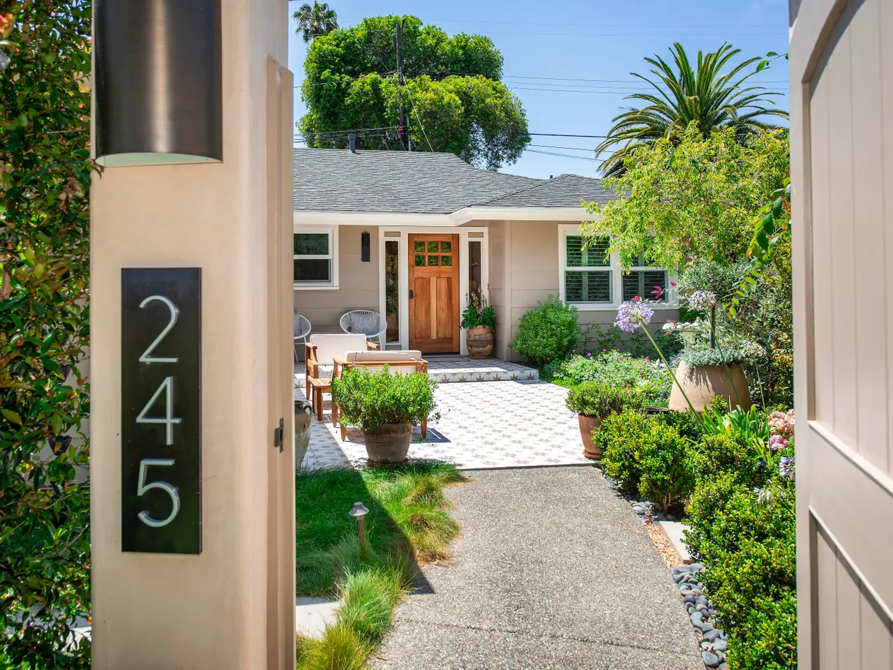 Santa Barbara Mesa Living at its best: welcome to a truly lovely home in the desirable 93109 zip code! Meticulously remodeled, this serene property is just blocks from the beach and offers a charming blend of luxury and comfort with a tranquil and laid-back coastal vibe. Tucked away behind mature hedges on a quiet street with a gated welcome, this home's tiled front entry sets the tone for casual living, and lush landscaping reminds you you're relaxing in America's Riviera under shade trees and palms. With 4 large bedrooms and 2.5 bathrooms, the residence offers a flexible layout for privacy when hosting guests, as well as seamless indoor-outdoor options for both family life and entertaining. Enter and step into the expansive kitchen area, complete with quartz countertop