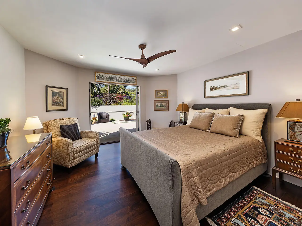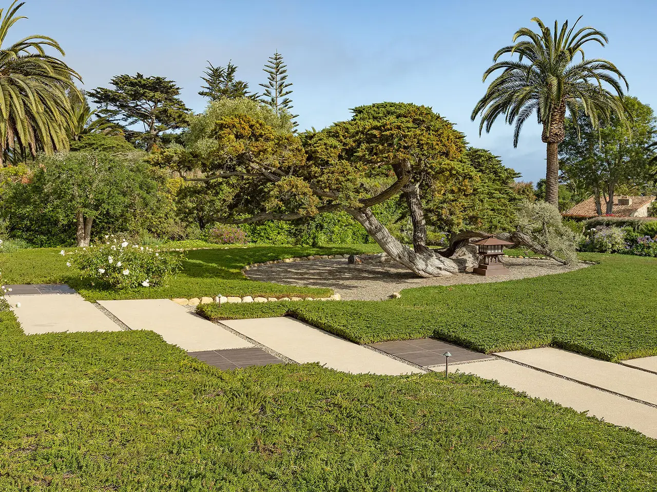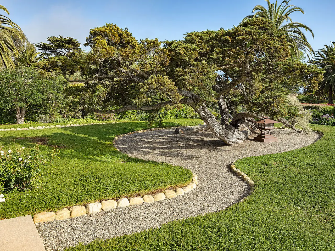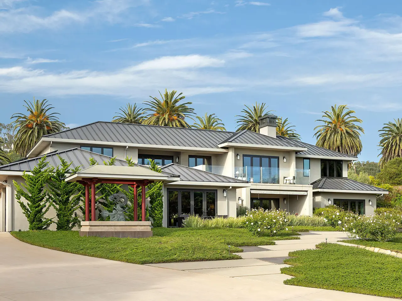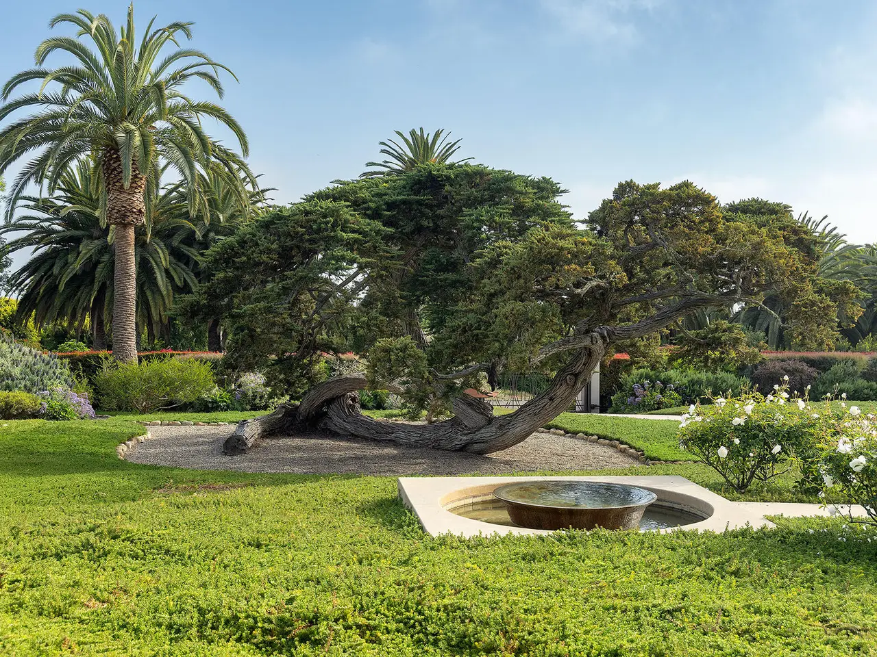 Sophisticated contemporary located on one of the premier streets in Hope Ranch. Gated drive winds past a magnificent Cypress tree which is the centerpiece of the manicured yard. A thorough remodel and impeccable maintenance by the owners presents a no apology home. The five bedrooms (four ensuite) and open concept floor plan allows for many lifestyle options. Rear yard area features a striking architectural fountain, large entertaining patio and elevated putting green. Three bedrooms downstairs are ideal for guests, family or office plus family room. Upstairs is reached either by a beautiful floating staircase or glass elevator. The primary bedroom suite is here with a large sunny ocean view sitting room plus wet bar and fourth ensuite bedroom. Amenities too numerous to mention; come see for yourself!