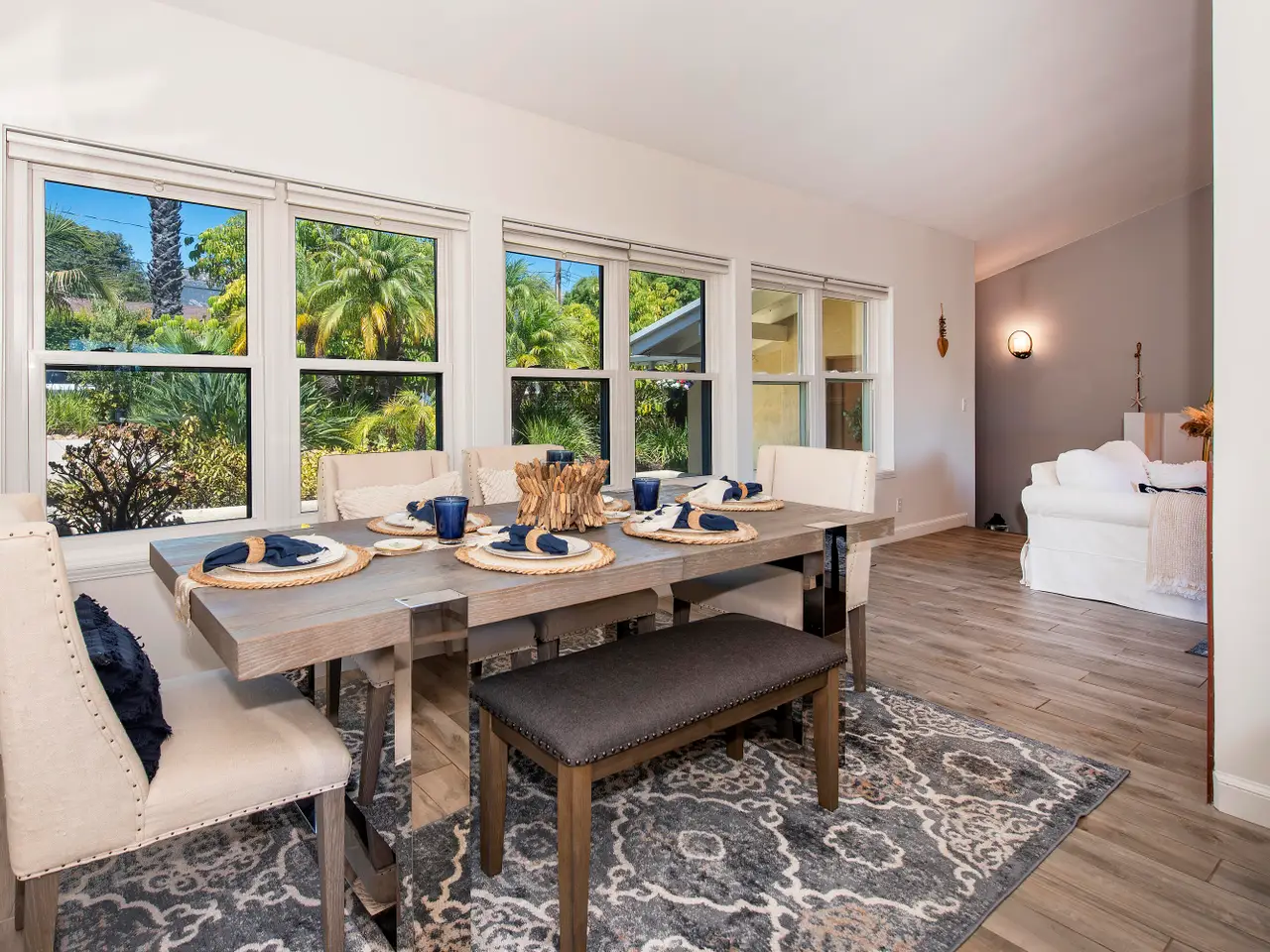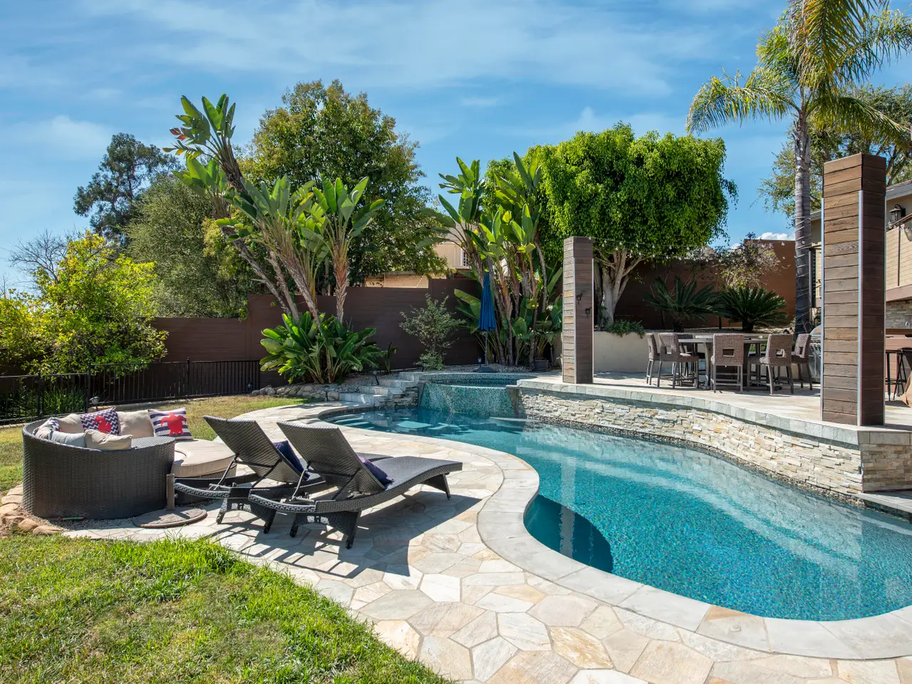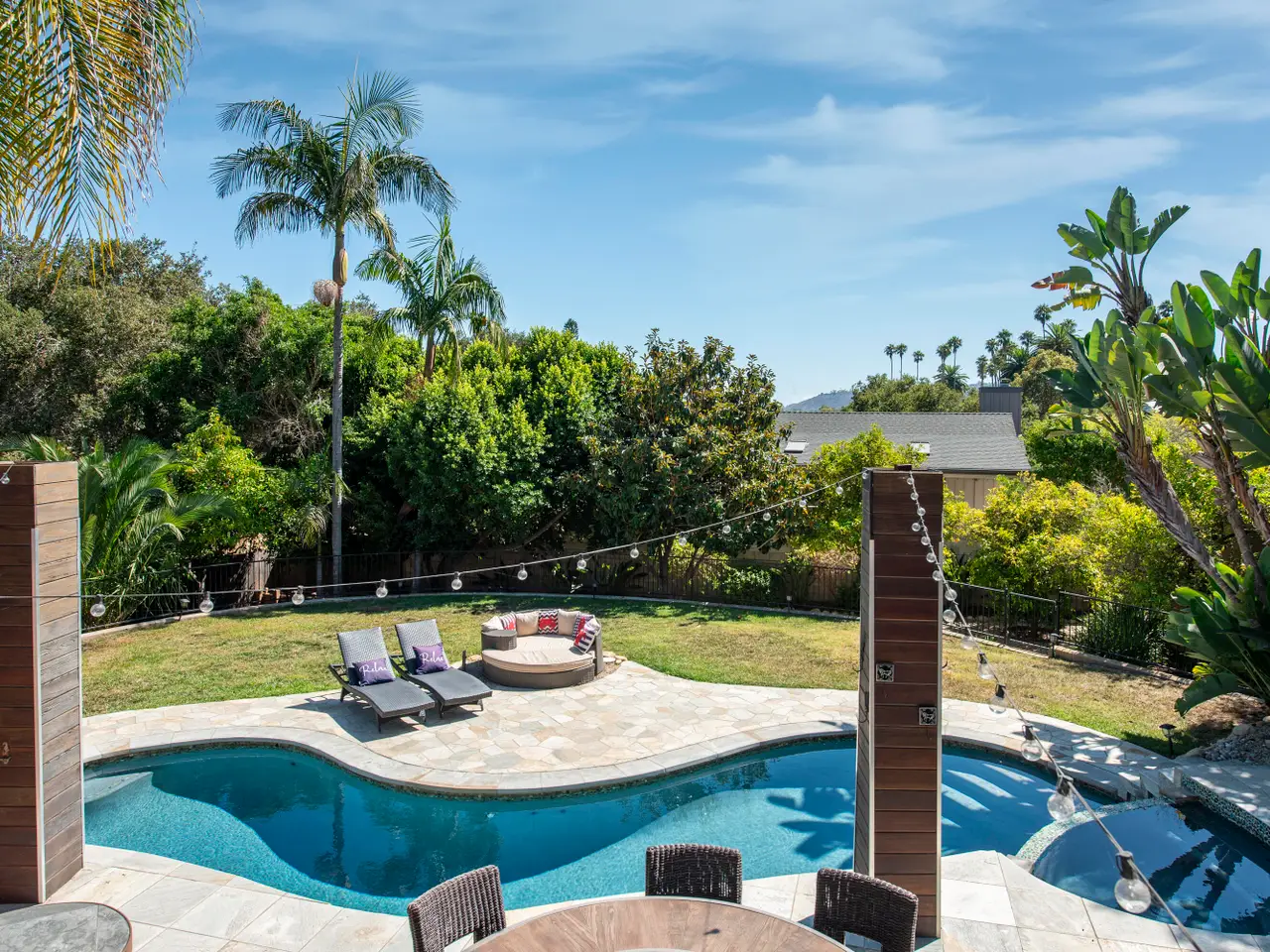 Set in the desirable Monte Vista school district, this 3-bedroom, 2-bath home offers the perfect blend of comfort and functionality, with inviting spaces to relax, entertain, and enjoy everyday living. From the moment you step inside, you'll feel the warmth-- a dining area glowing with natural light that flows effortlessly to the cozy living room with a corner fireplace creating the perfect ambiance for evenings in. A cheerful kitchen with an eat-in breakfast bar, loads of counter space and storage is perfectly situated between the dining room and outside for easy entertainment. The French doors from the living room, kitchen and bedrooms invite you out to the deck, connecting indoors and out with ease. The primary suite is its own retreat, offering double closets and a versatile flex space perfect for a home office, reading nook, or walk in closet. An oversized laundry room and a finished garage add even more options, whether you need storage, a workout space, or playroom. But the true magic is outside. The backyard is an entertainer's paradise your very own private resort. Picture gatherings on the modern Trex deck, year-round dips in the sparkling pool, a built-in hot tub under the stars, and an outdoor kitchen with BBQ ready for weekend feasts. An outdoor shower adds that vacation vibe, while fruit trees and mature tropical landscaping surround you with natural beauty and privacy.All this, just minutes to parks, schools, shopping, and restaurants , this home is the full Santa Barbara lifestyle package!