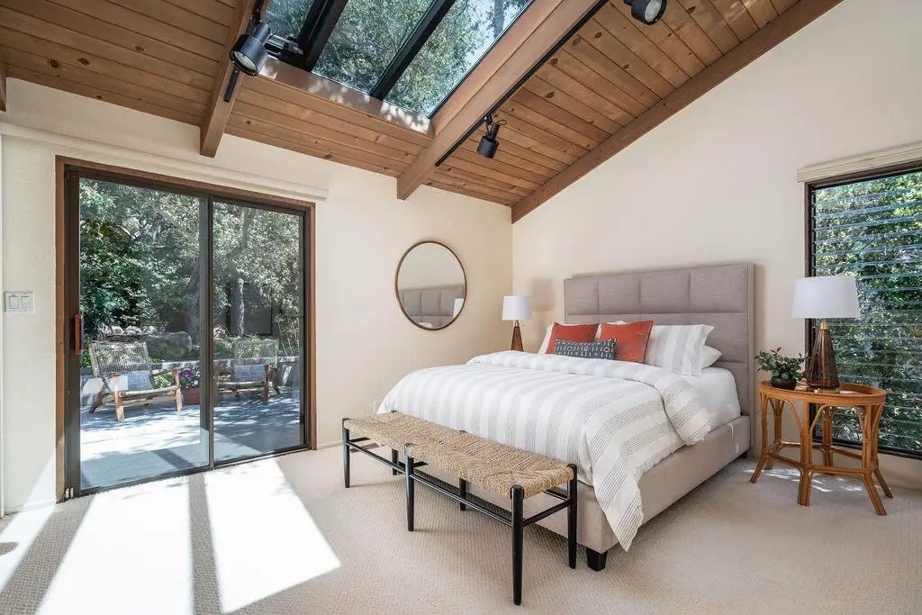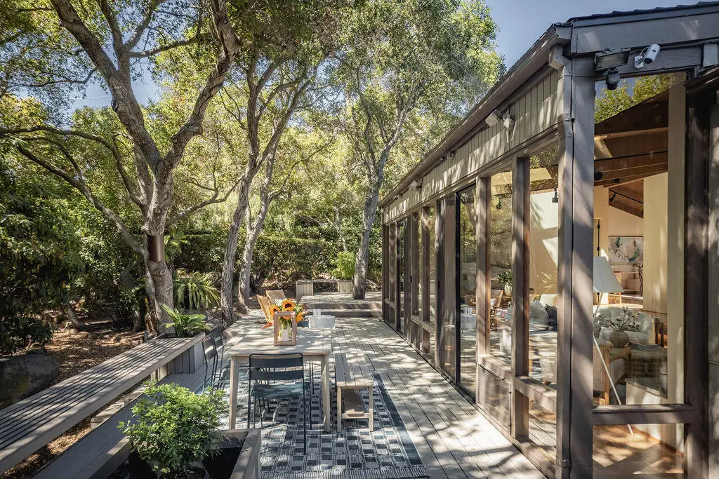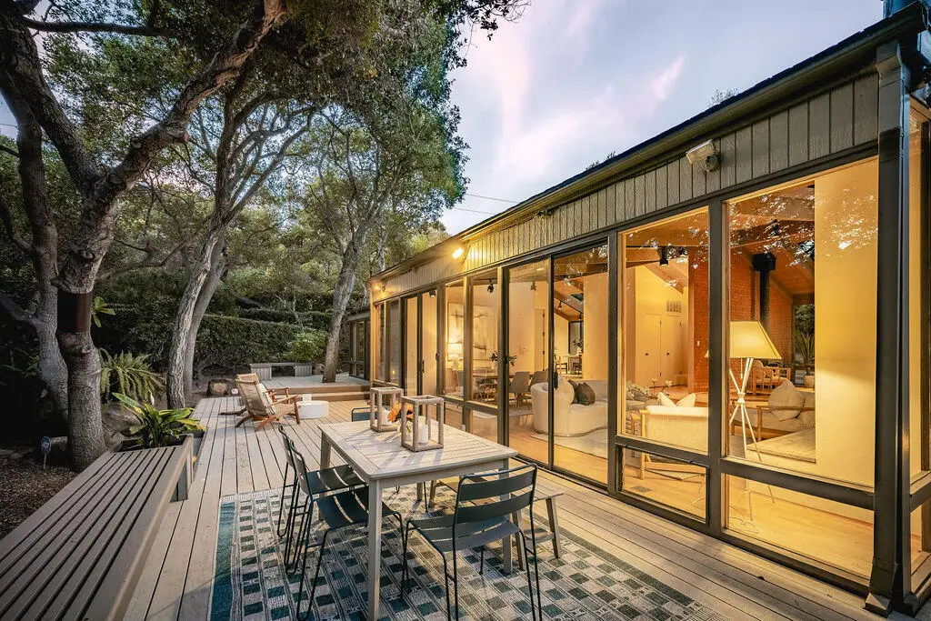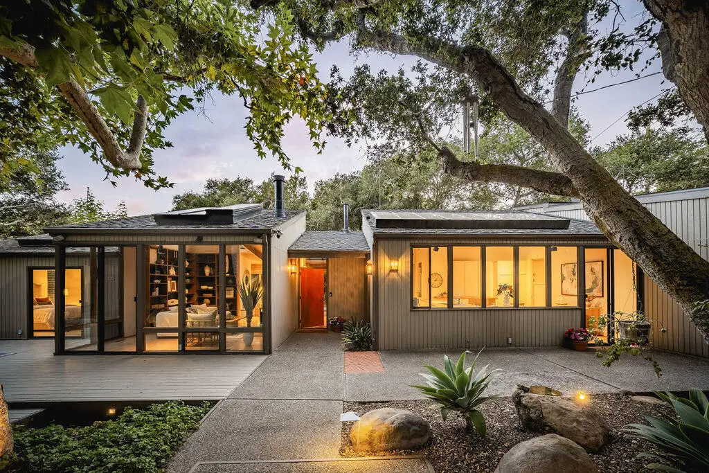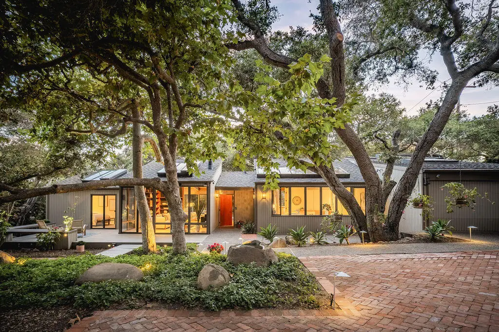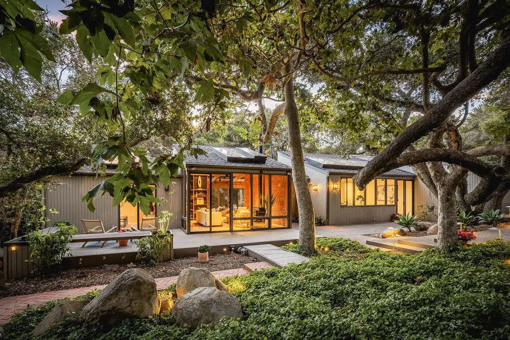 Nestled on exclusive Glendessary Lane in Mission Canyon, this stunning contemporary home offers a rare opportunity to own in one of Santa Barbara's most sought-after neighborhoods. With properties seldom available on this idyllic street, this 3-bedroom, 2.5-bath residence is a true gem. Spanning +/-2,489 SF on nearly half an acre, the home is designed to embrace its serene natural surroundings. Walls of glass, soaring wood-beamed ceilings with tongue-and-groove detail, skylights, and an open layout provide an abundance of natural light, while hardwood floors add warmth and elegance. The living room fireplace and wood-burning stove in the library offer cozy spaces to relax. Step outside to a peaceful, enchanting yard, where majestic oak trees provide a magical backdrop for outdoor living. Additional highlights include a 2-car garage with interior access and an unbeatable location just moments from the historic Santa Barbara Old Mission, Rose Garden, Rocky Nook Park, and Natural History Museum. Set on a storybook lane known for its warm sense of community and beloved annual gatherings, this home is a rare find in an ideal setting, the perfect blend of contemporary style and timeless tranquility. Don't miss this extraordinary opportunity.