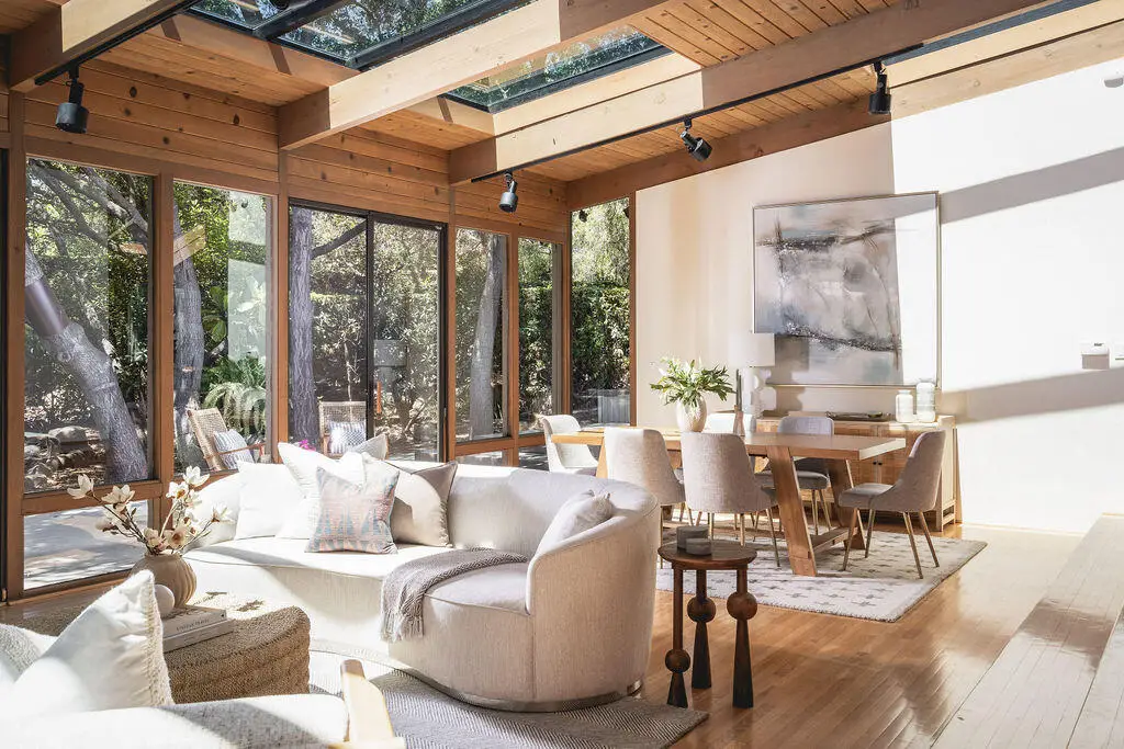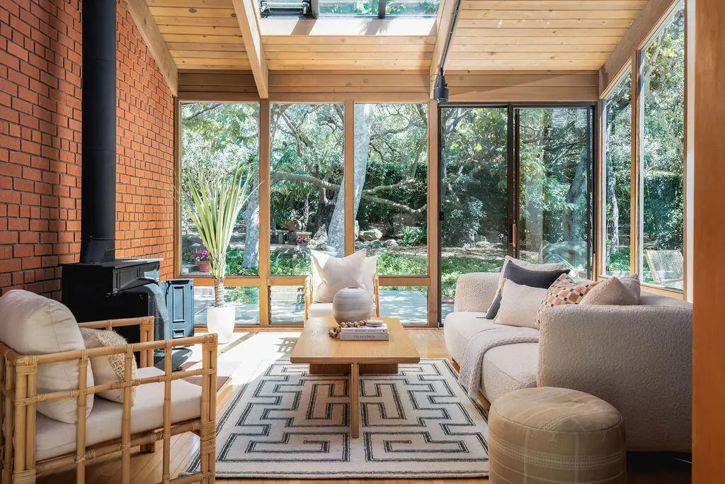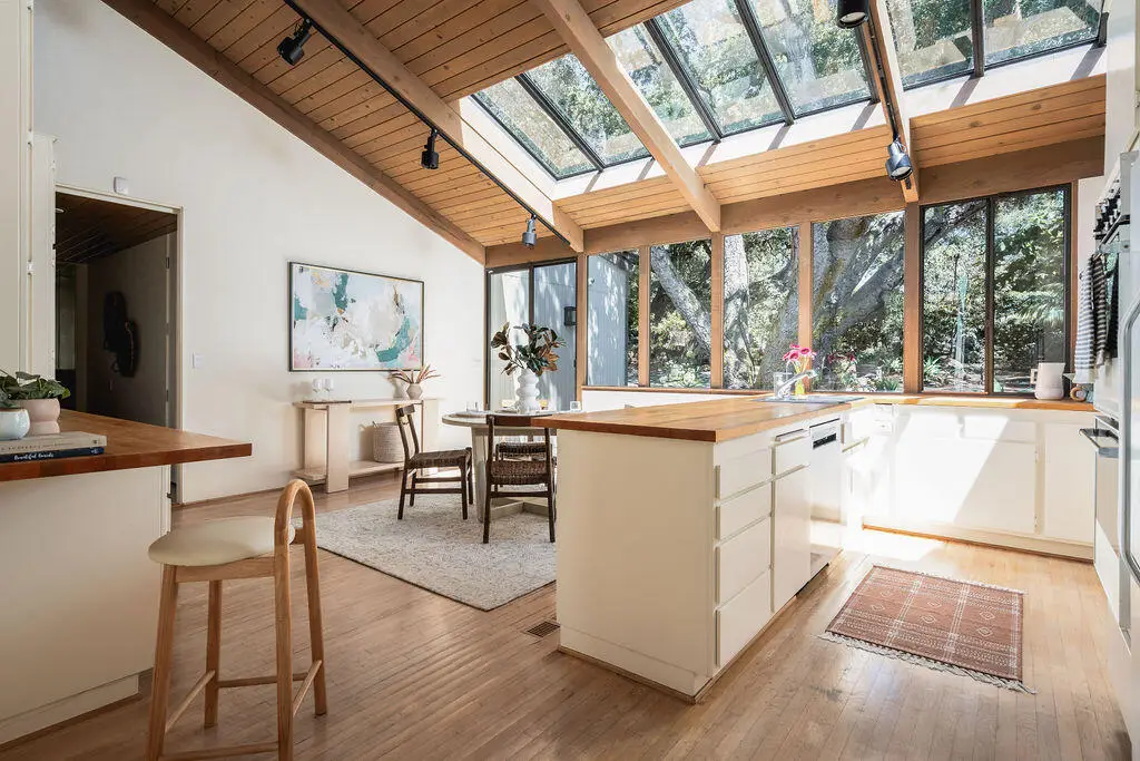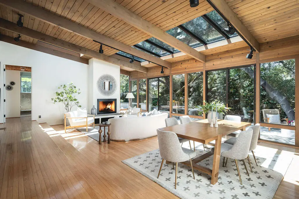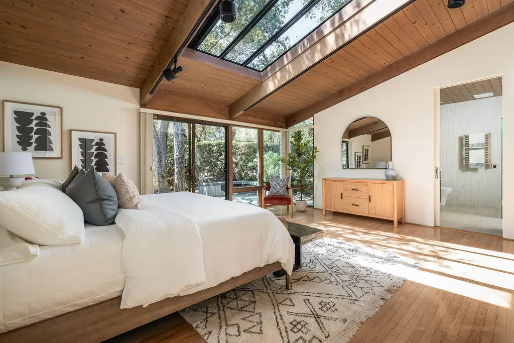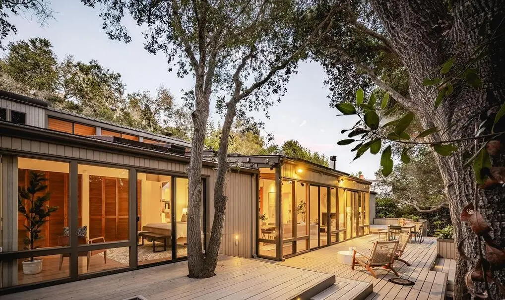 Nestled on exclusive Glendessary Lane in Mission Canyon, this stunning contemporary home offers a rare opportunity to own in one of Santa Barbara's most sought-after neighborhoods. With properties seldom available on this idyllic street, this 3-bedroom, 2.5-bath residence is a true gem. Spanning +/-2,489 SF on nearly half an acre, the home is designed to embrace its serene natural surroundings. Walls of glass, soaring wood-beamed ceilings with tongue-and-groove detail, skylights, and an open layout provide an abundance of natural light, while hardwood floors add warmth and elegance. The living room fireplace and wood-burning stove in the library offer cozy spaces to relax. Step outside to a peaceful, enchanting yard, where majestic oak trees provide a magical backdrop for outdoor living. Additional highlights include a 2-car garage with interior access and an unbeatable location just moments from the historic Santa Barbara Old Mission, Rose Garden, Rocky Nook Park, and Natural History Museum. Set on a storybook lane known for its warm sense of community and beloved annual gatherings, this home is a rare find in an ideal setting, the perfect blend of contemporary style and timeless tranquility. Don't miss this extraordinary opportunity.