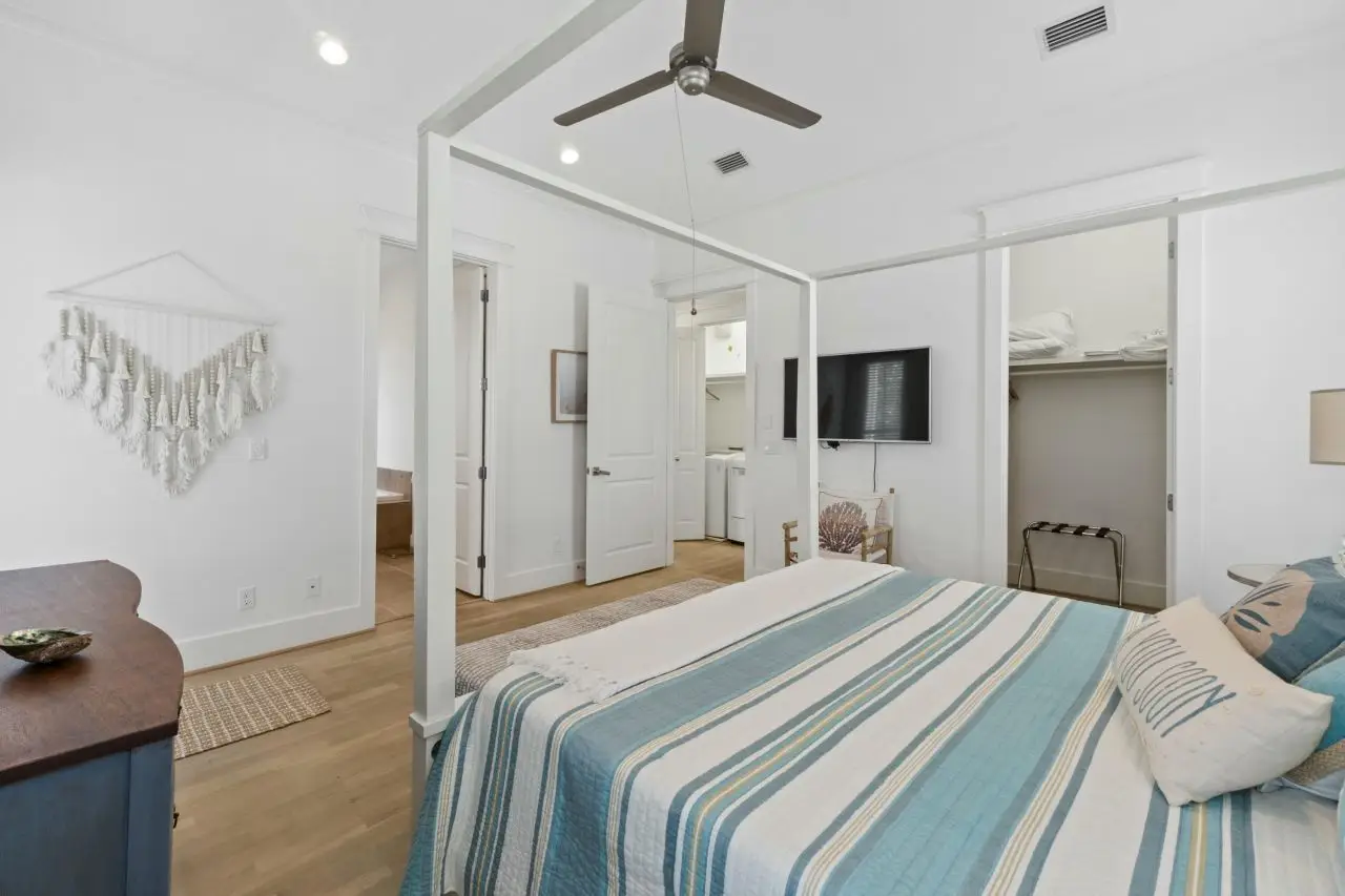 Gorgeous custom home in Blue Mountain Beach with luxury finishes and attention to detail around every corner. Built by Ben Giles, this home stands set apart in the coastal community of Highland Parks. Situated towards the front of the community this home allows quick access to the resort style community pool and easy access to all that 30A has to offer. This home has been meticulously maintained and it shows! As you enter the spacious open living area, you will immediately fall in love with this coastal retreat! Equipped with smart home technology, a new hot water heater, HVAC's from 2021 and stainless steel appliances, your days will be spent relaxing in the comfort of this beach oasis. With 10 ft ceilings and c custom finishes, this home boasts wide open spaces to rest and play.